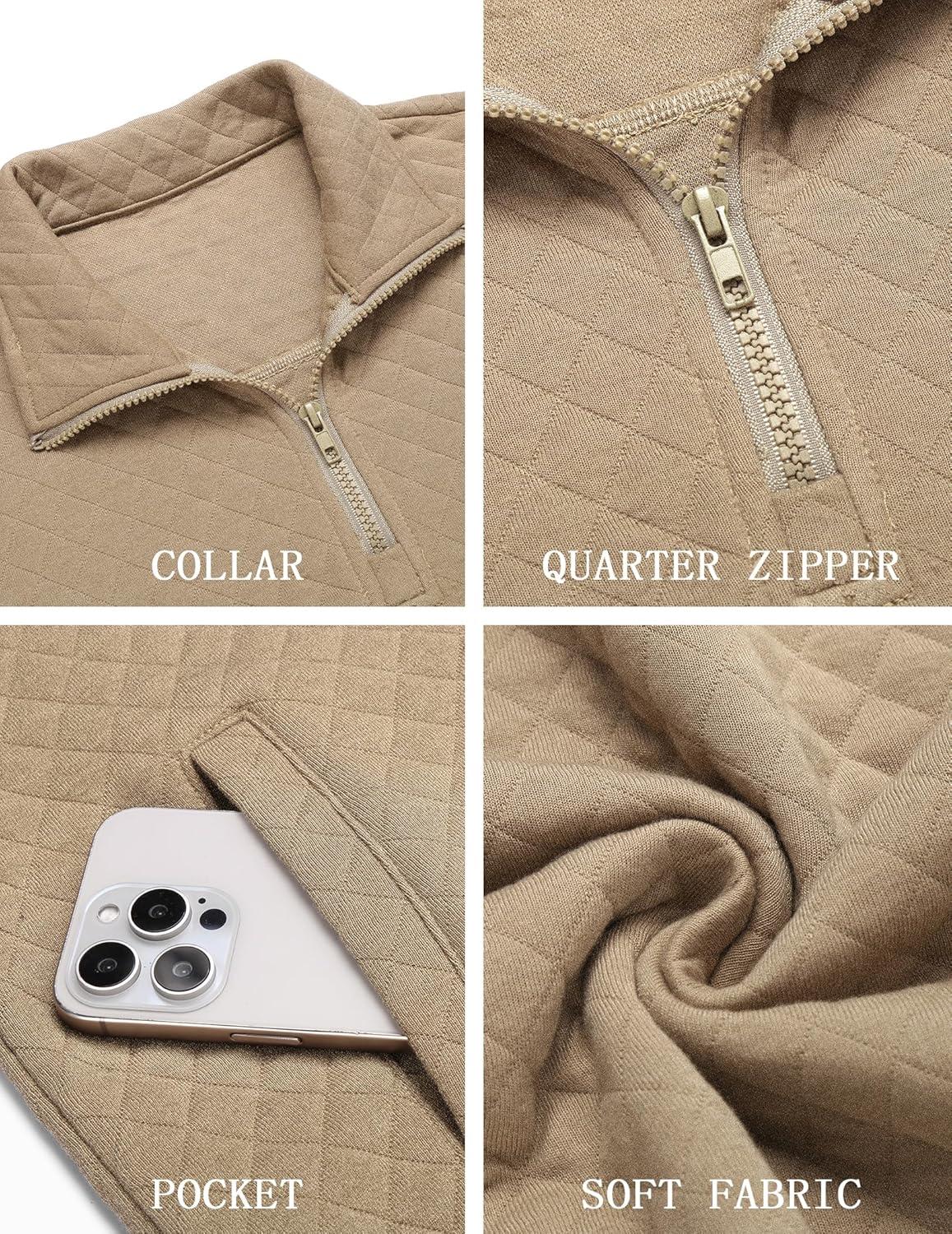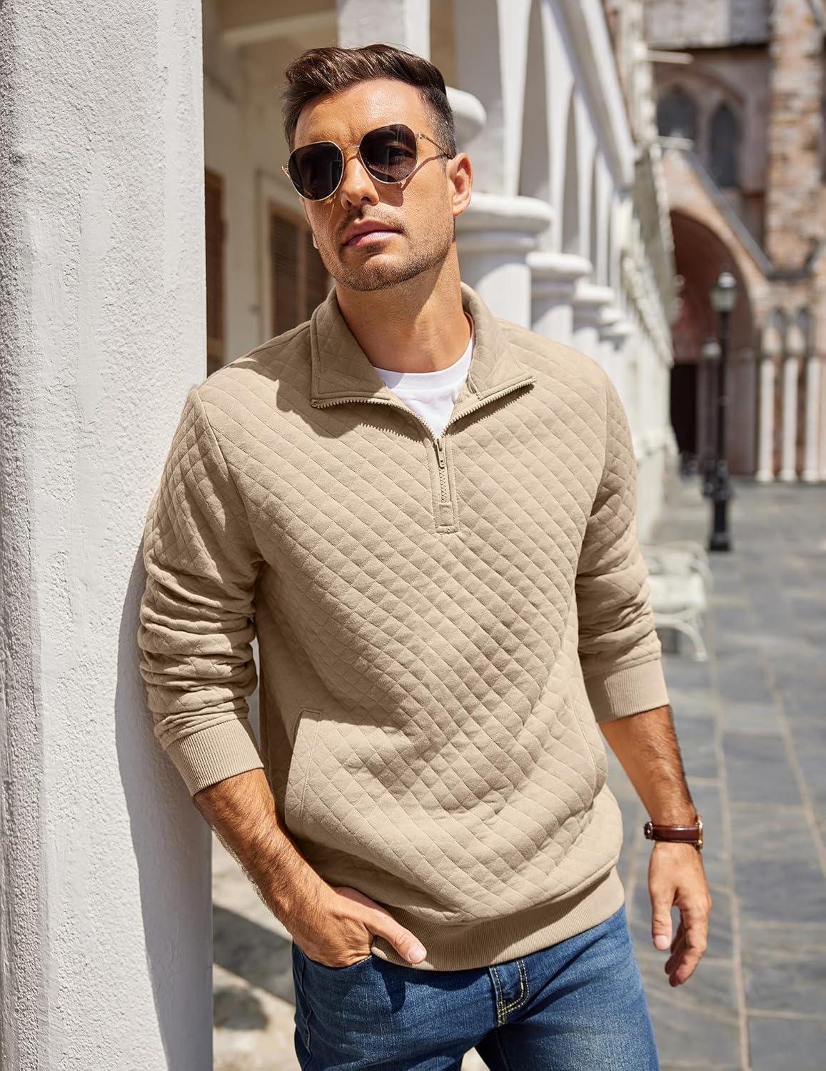 Don’t miss out on our limited-time offer: buy COOFANDY Mens Quarter Zip Pullover Quilted Sweatshirt Knit Long Sleeve Mock Neck Sweater Polo with Pocket(Khaki), get {accessory} 50% off!