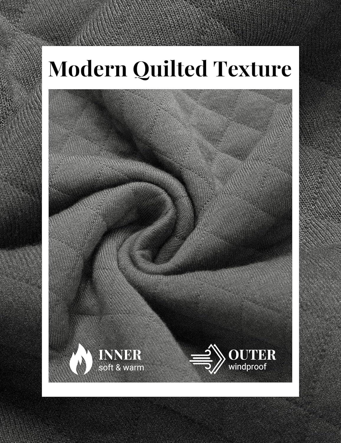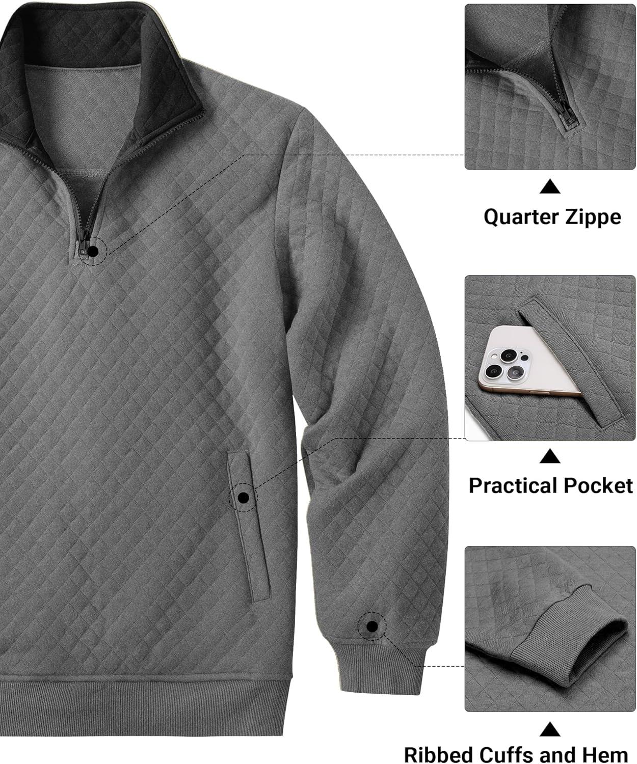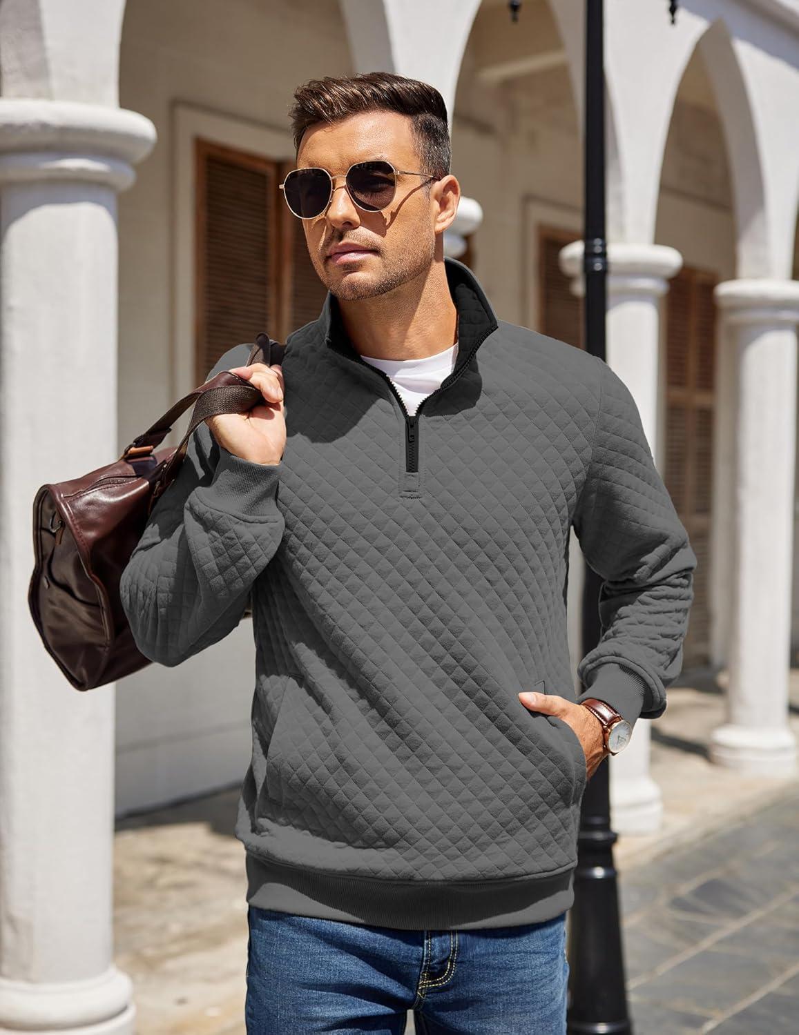 COOFANDY Mens Quarter Zip Pullover Quilted Sweatshirt Knit Long Sleeve Mock Neck Sweater Polo with Pocket(Z-contrast Gray/Black)