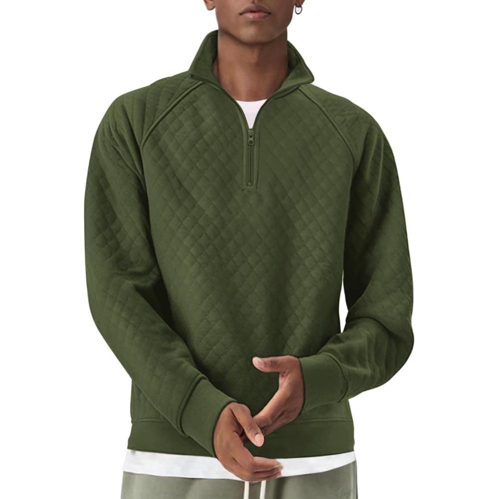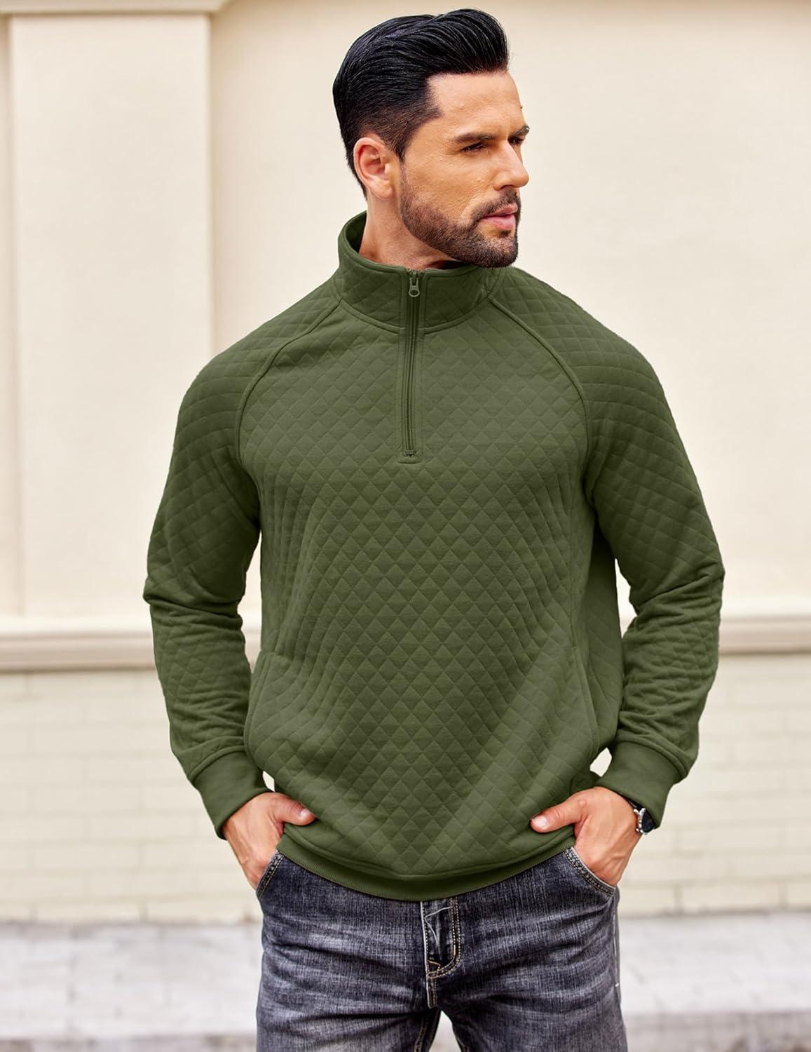 COOFANDY Mens Quarter Zip Pullover Quilted Sweatshirt Knit Long Sleeve Sweater Half Zip Polo Sweatshirts with Pocket(Army Green)