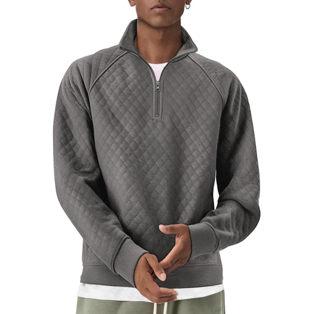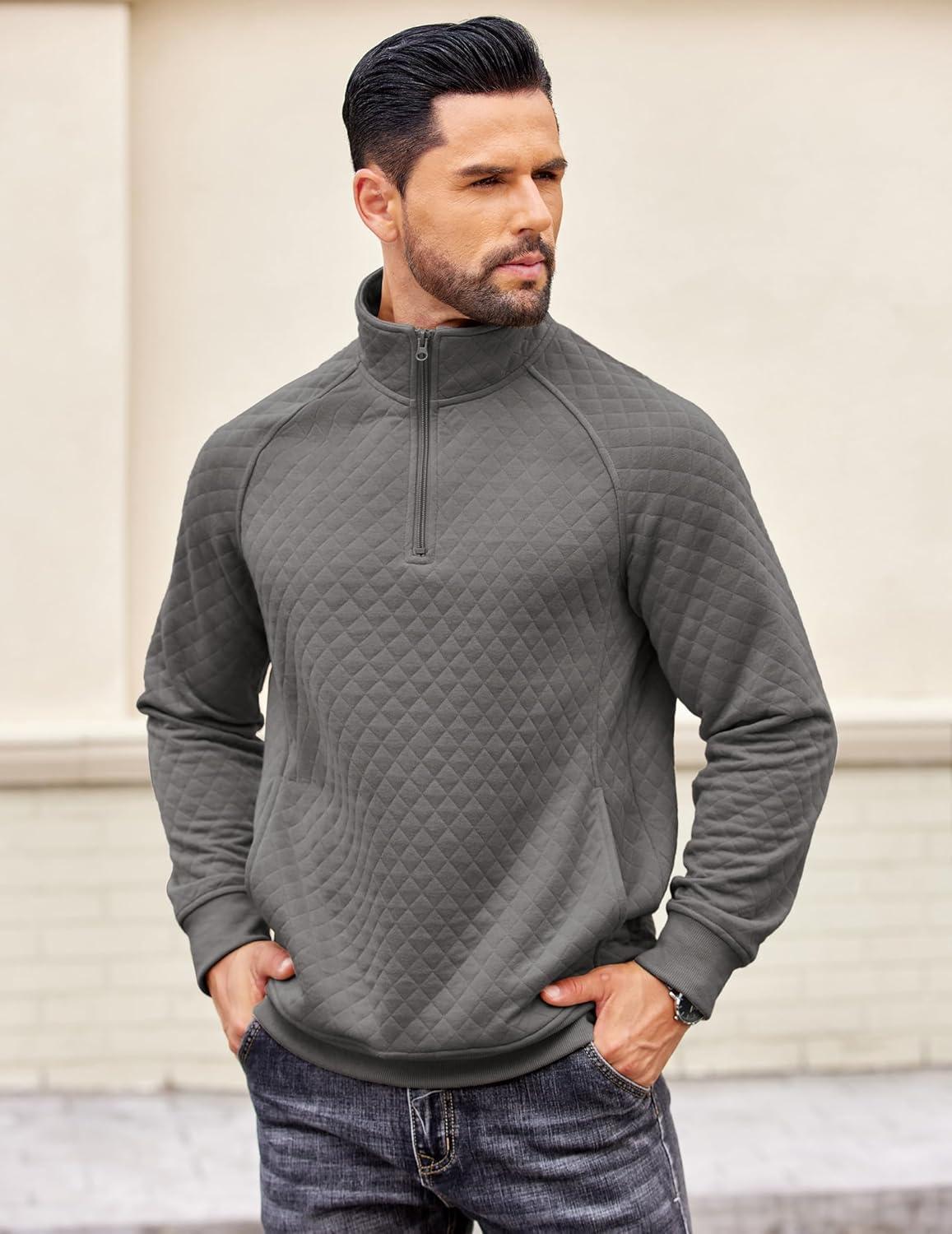 COOFANDY Mens Quarter Zip Pullover Quilted Sweatshirt Knit Long Sleeve Sweater Half Zip Polo Sweatshirts with Pocket(Dark Gray)