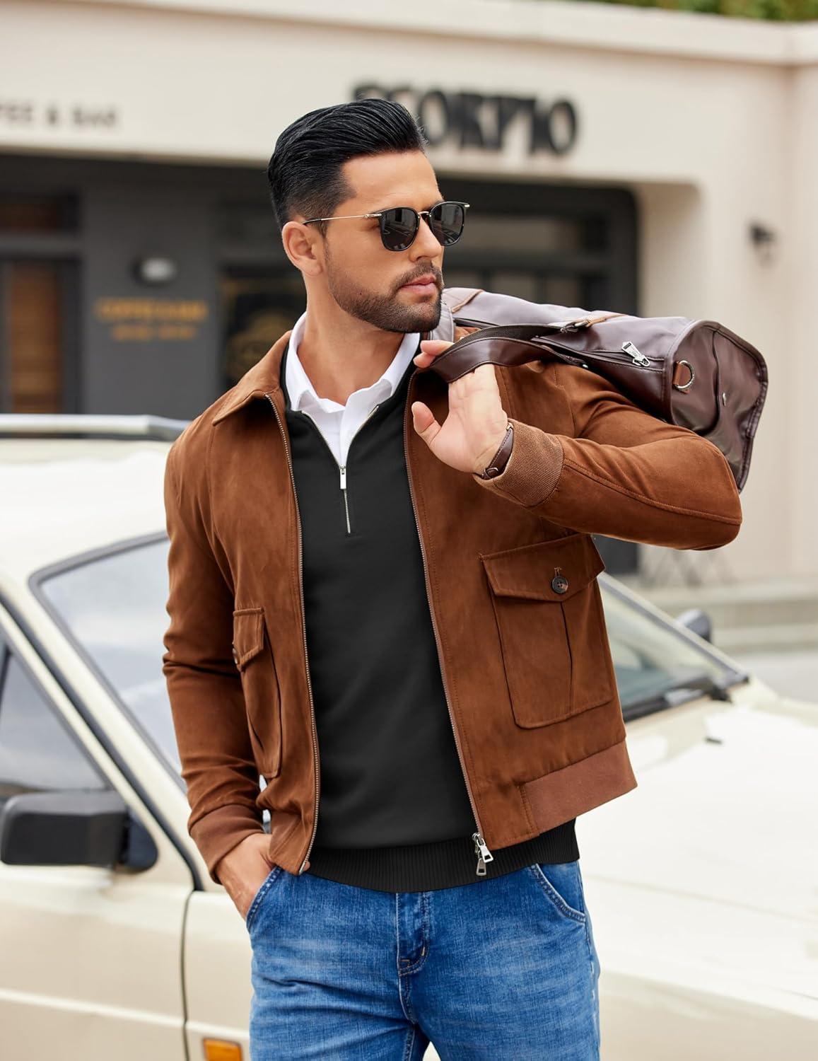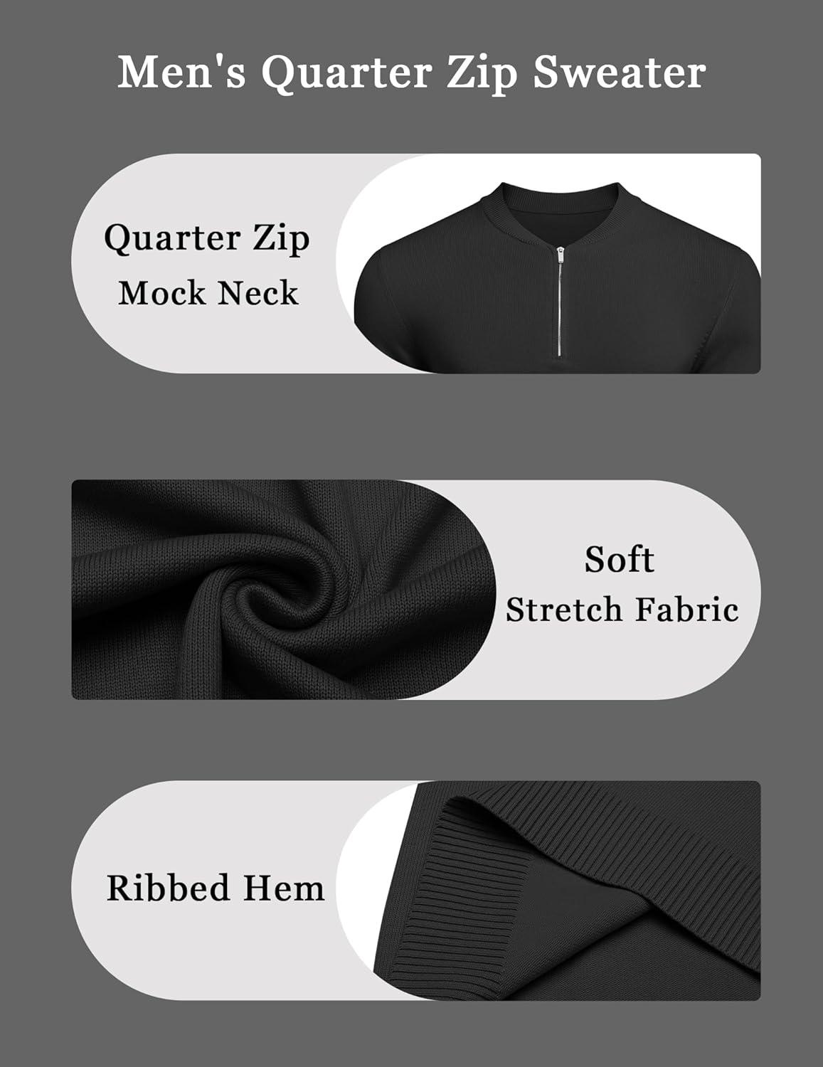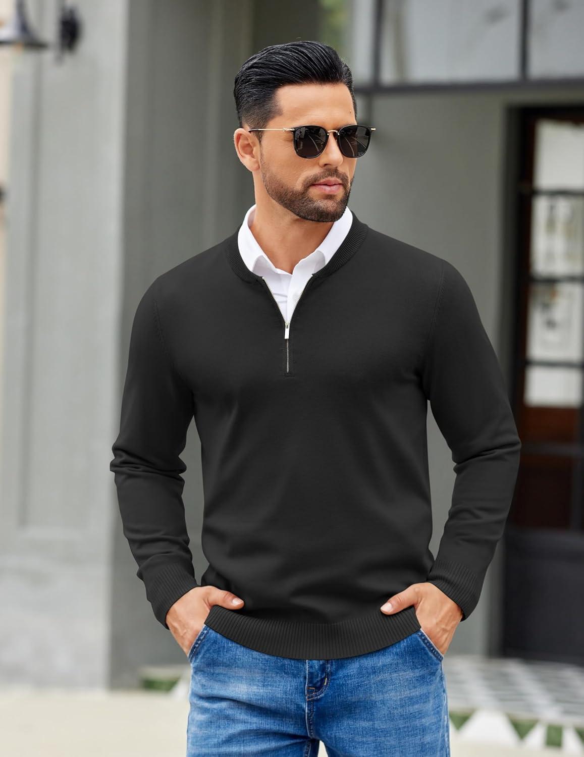 COOFANDY Men's Quarter Zip Pullover Slim Fit Dress Sweaters Lightweight Mock Neck Knit Sweater(Black)