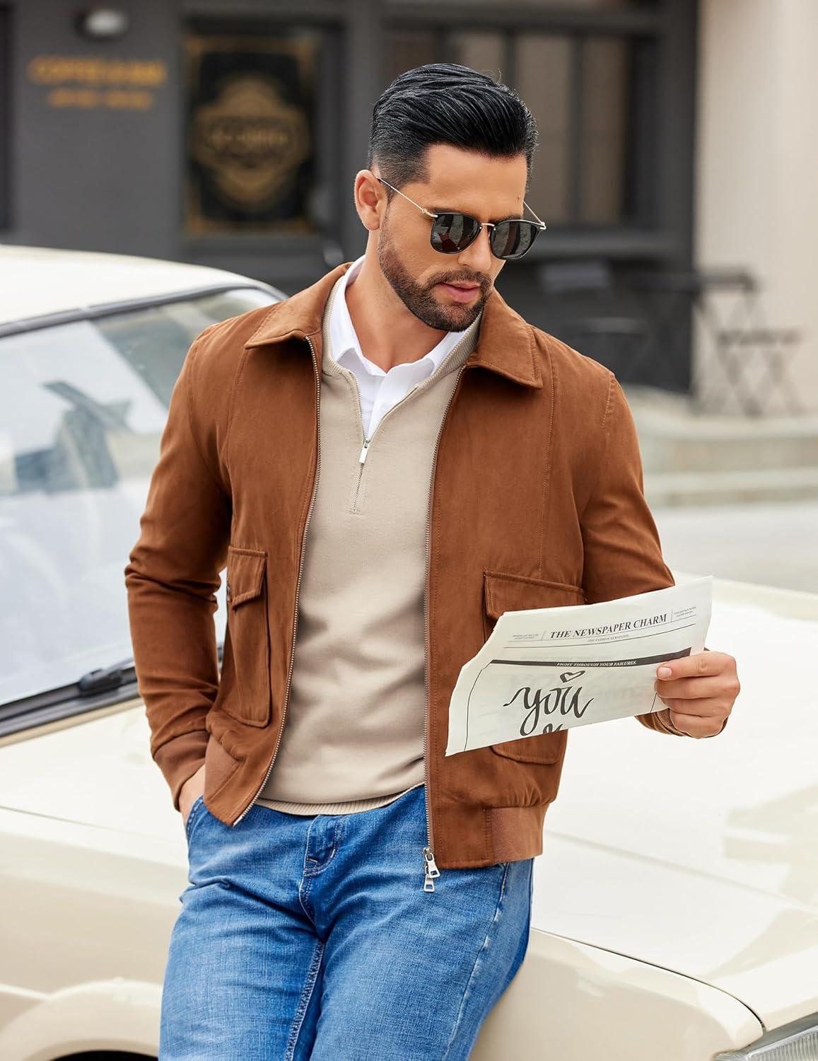 COOFANDY Men's Quarter Zip Pullover Slim Fit Dress Sweaters Lightweight Mock Neck Knit Sweater(Khaki)