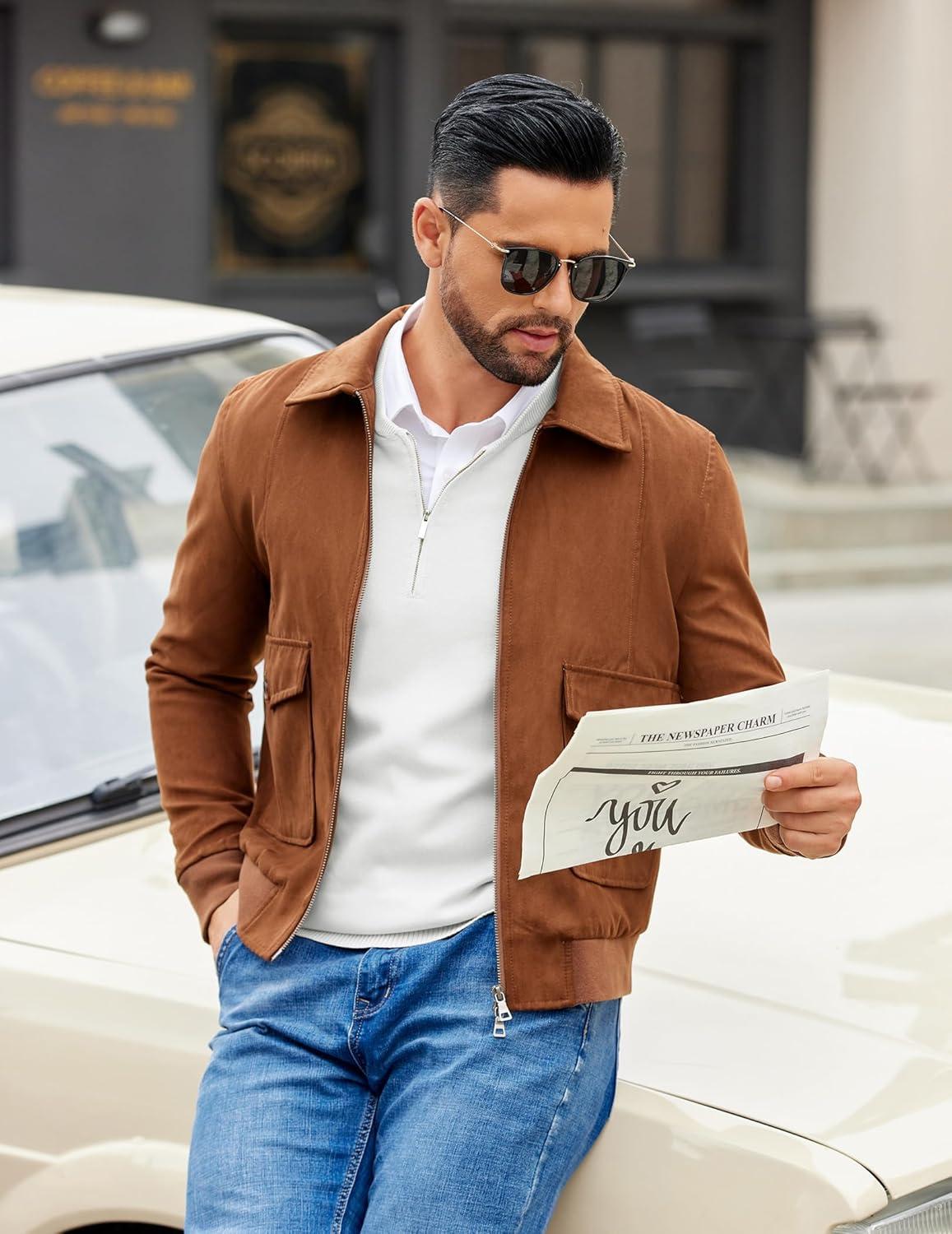 COOFANDY Men’s Quarter Zip Pullover Slim Fit Dress Sweaters Lightweight Mock Neck Knit Sweater(Light Khaki)