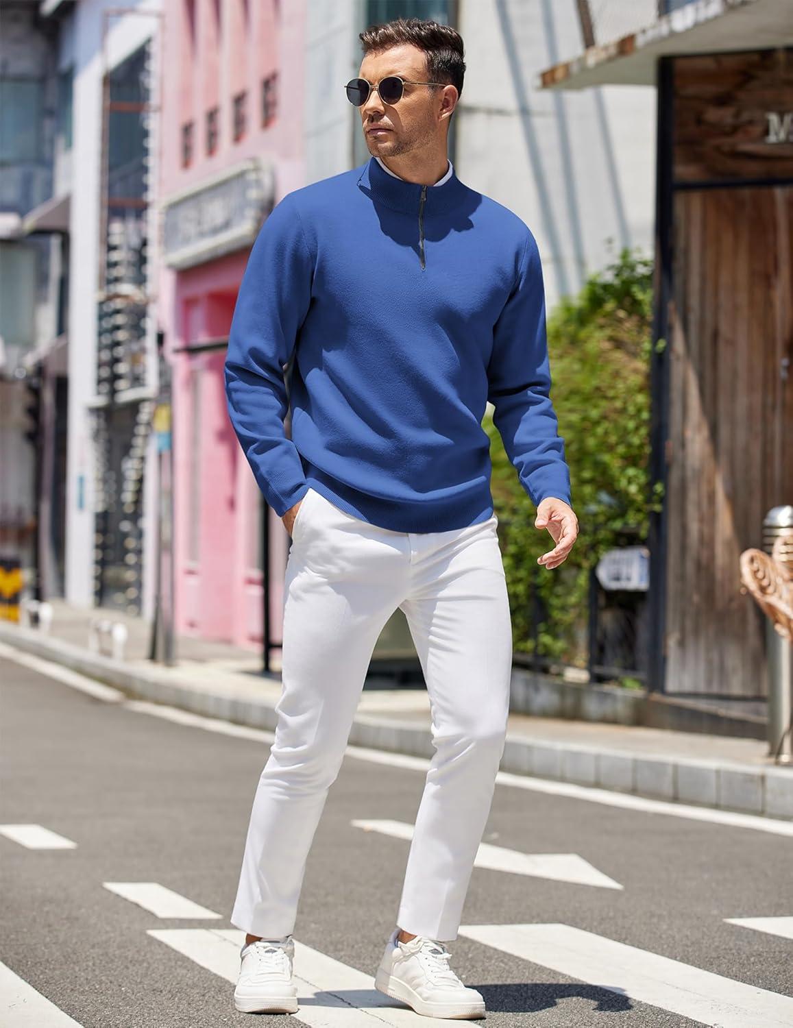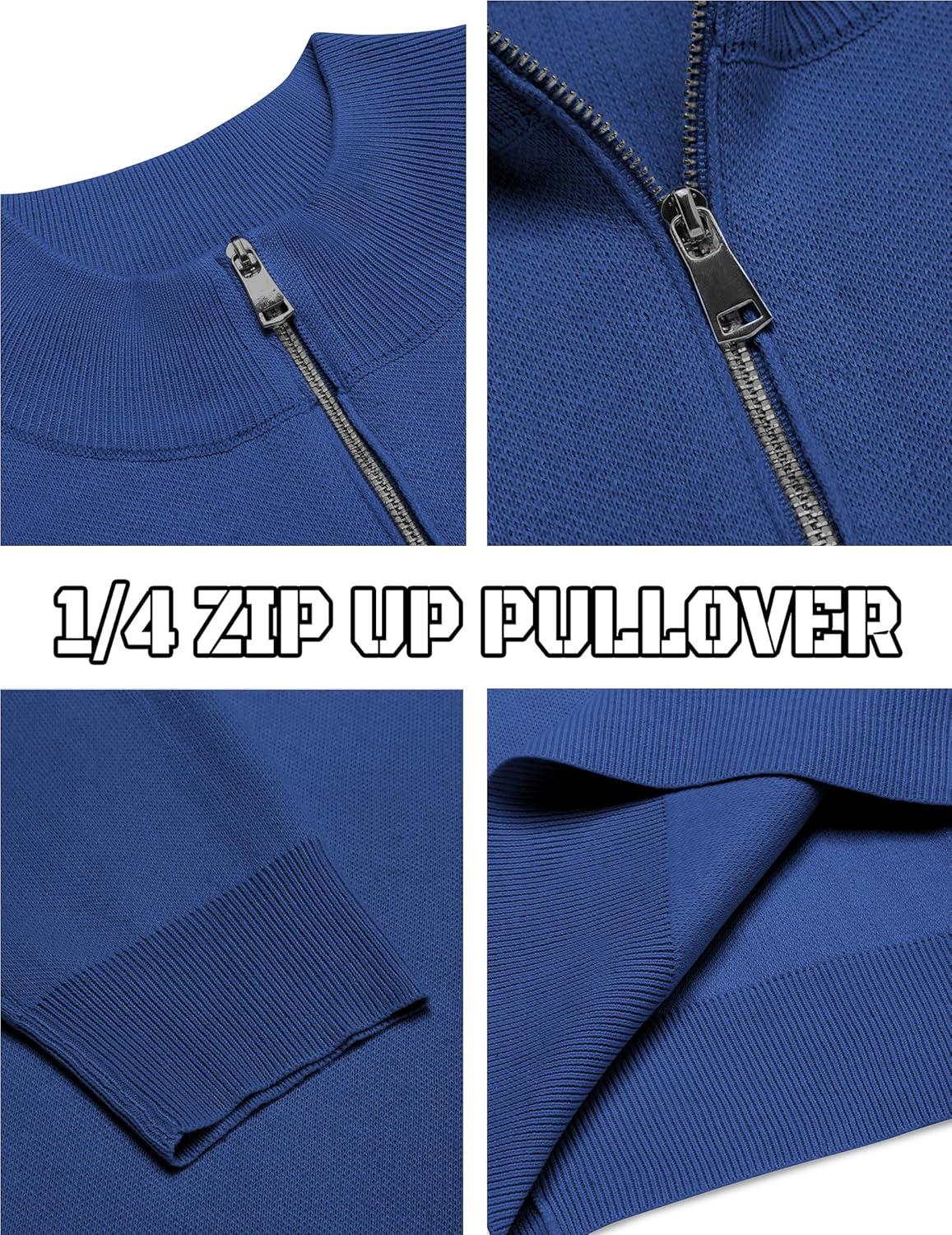 COOFANDY Mens Quarter Zip Pullover Slim Fit Lightweight Knit Pullover Sweaters Casual Polo Sweater(Blue)
