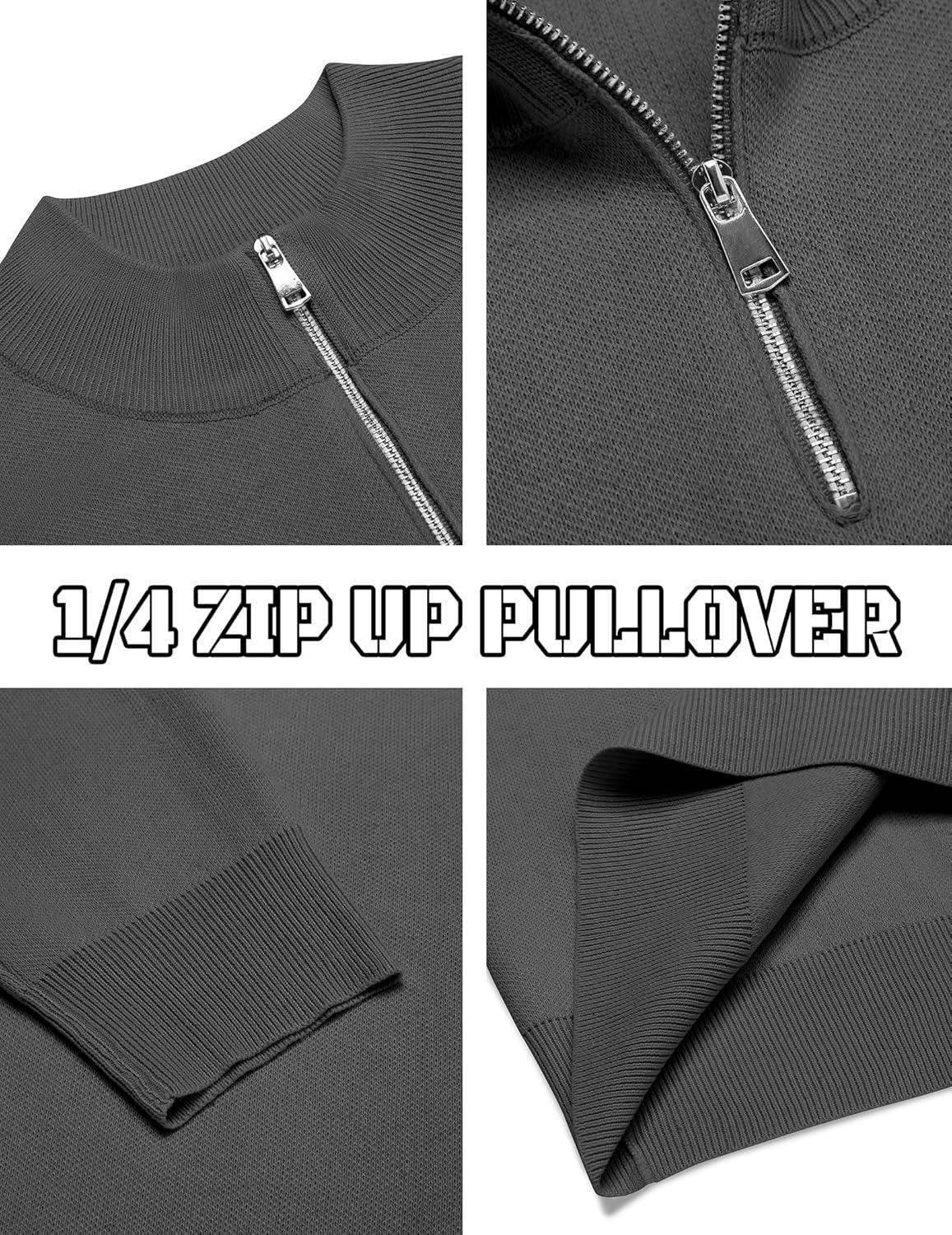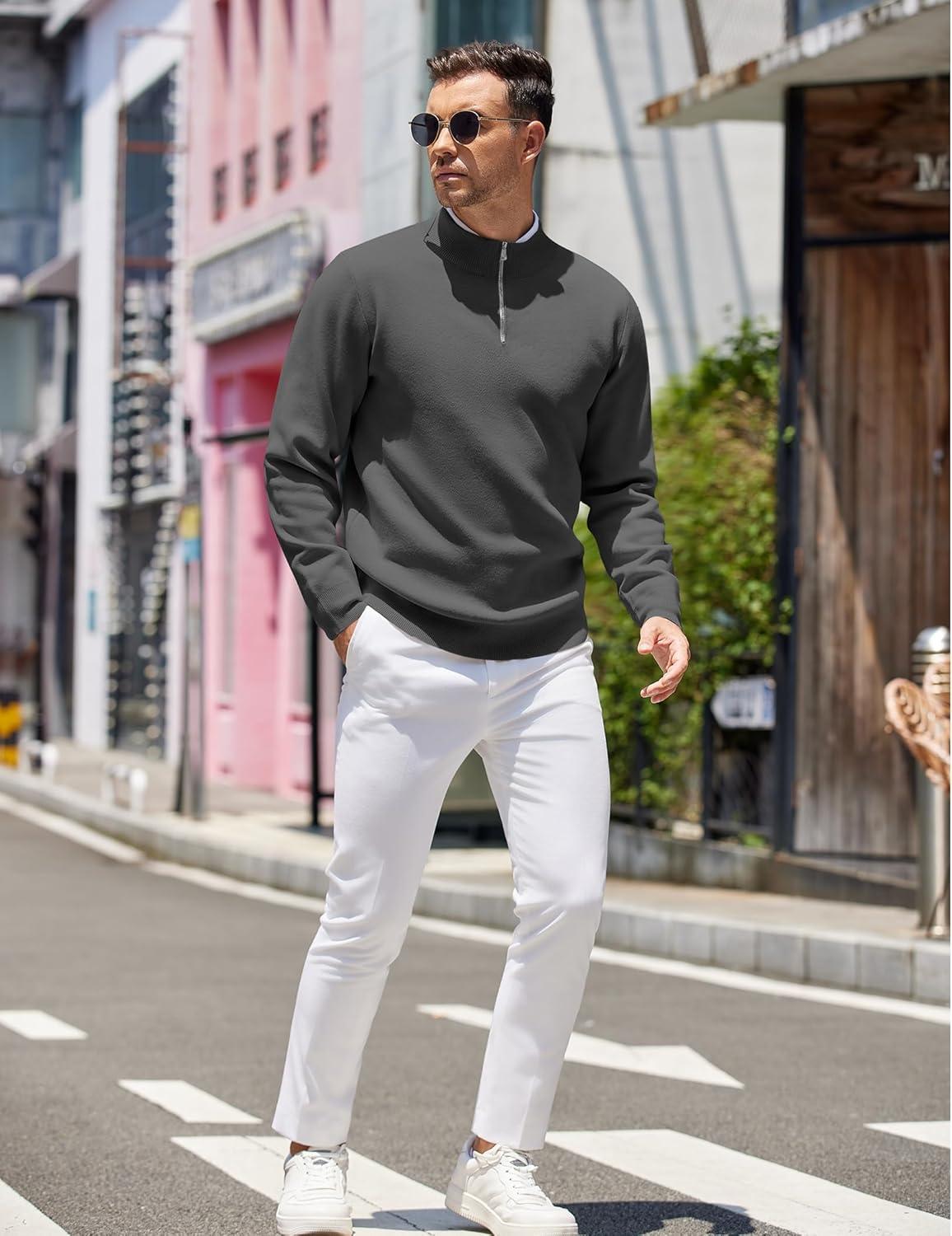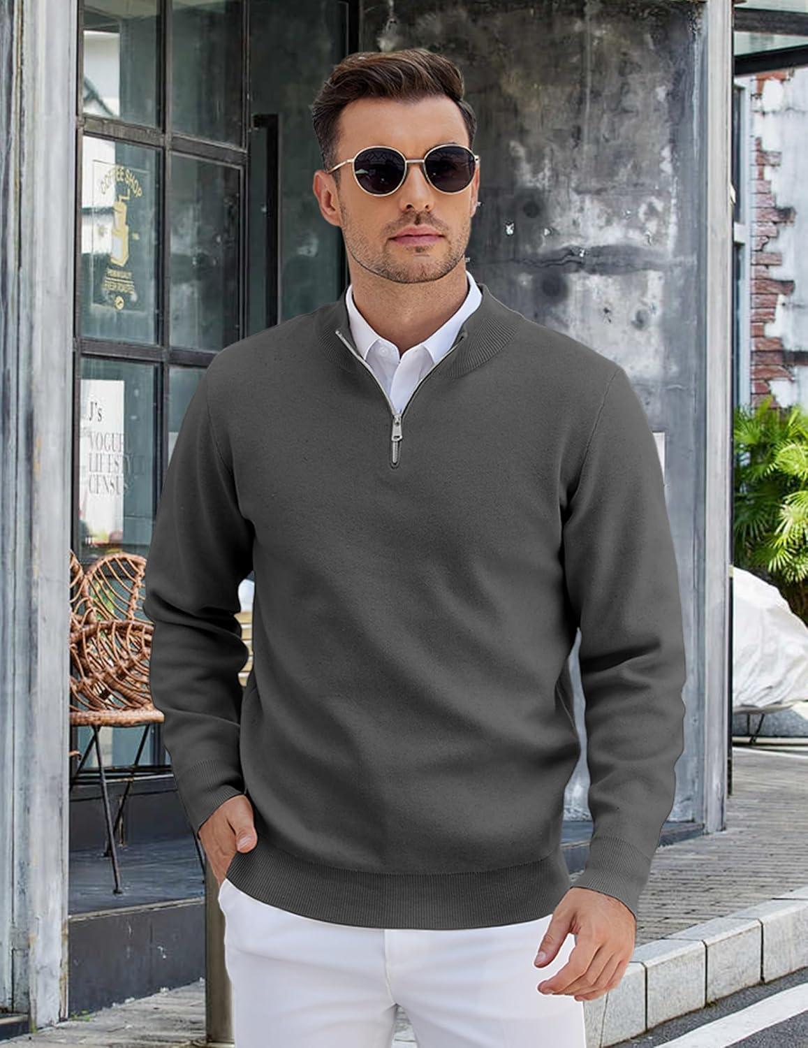 COOFANDY Mens Quarter Zip Pullover Slim Fit Lightweight Knit Pullover Sweaters Casual Polo Sweater(Charcoal)