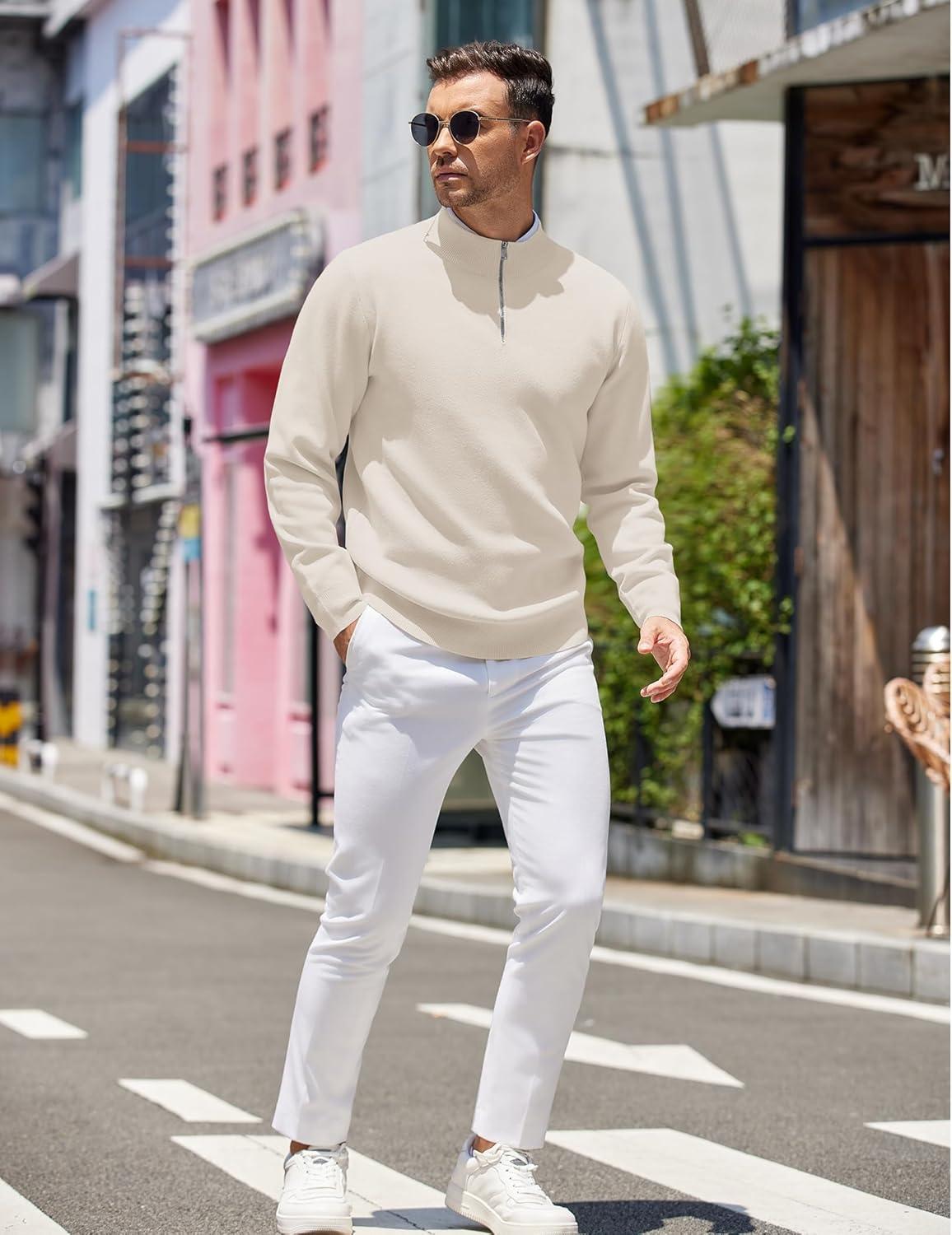 Don’t miss out on our limited-time offer: buy COOFANDY Mens Quarter Zip Pullover Slim Fit Lightweight Knit Pullover Sweaters Casual Polo Sweater(Cream), get {accessory} free!