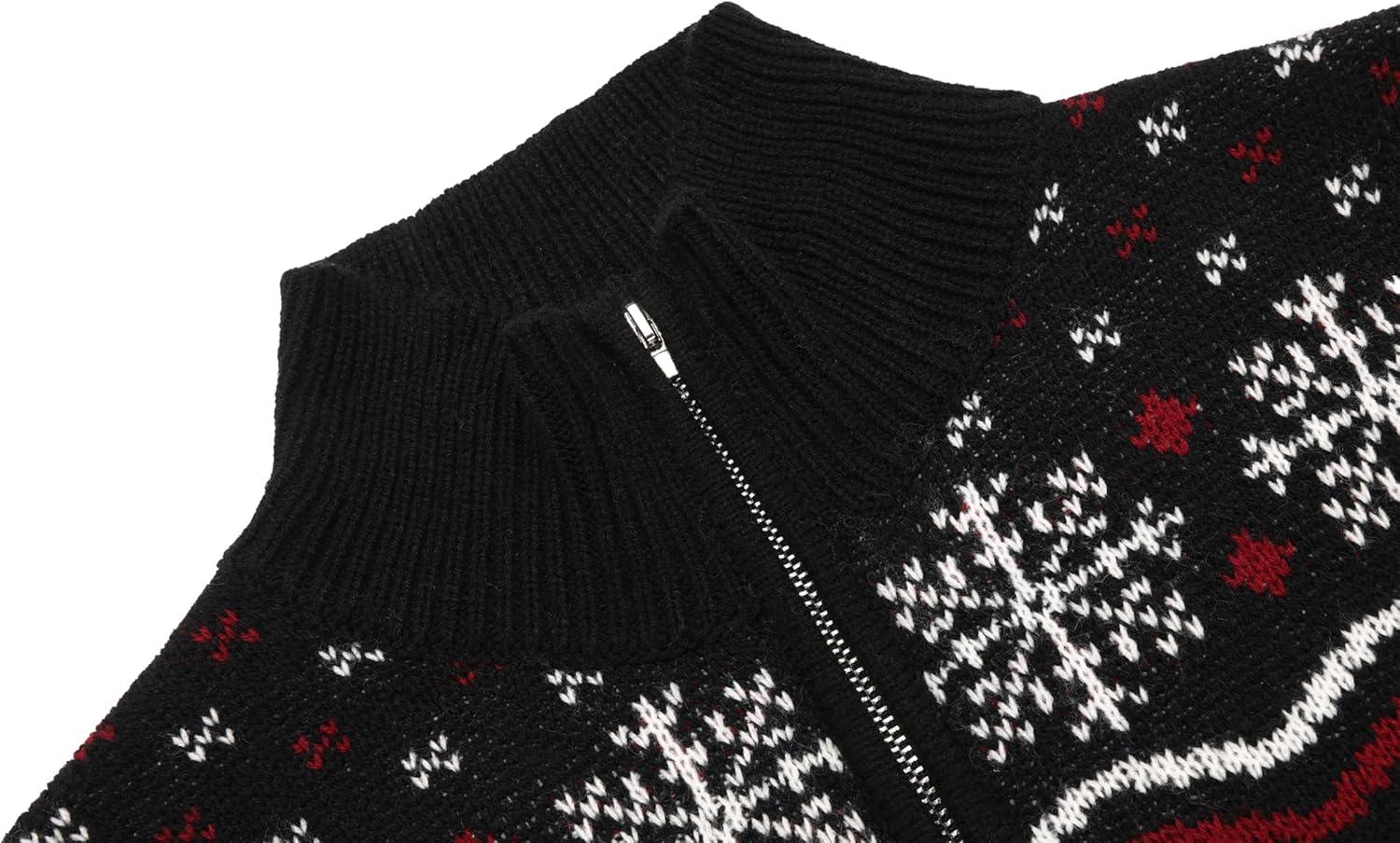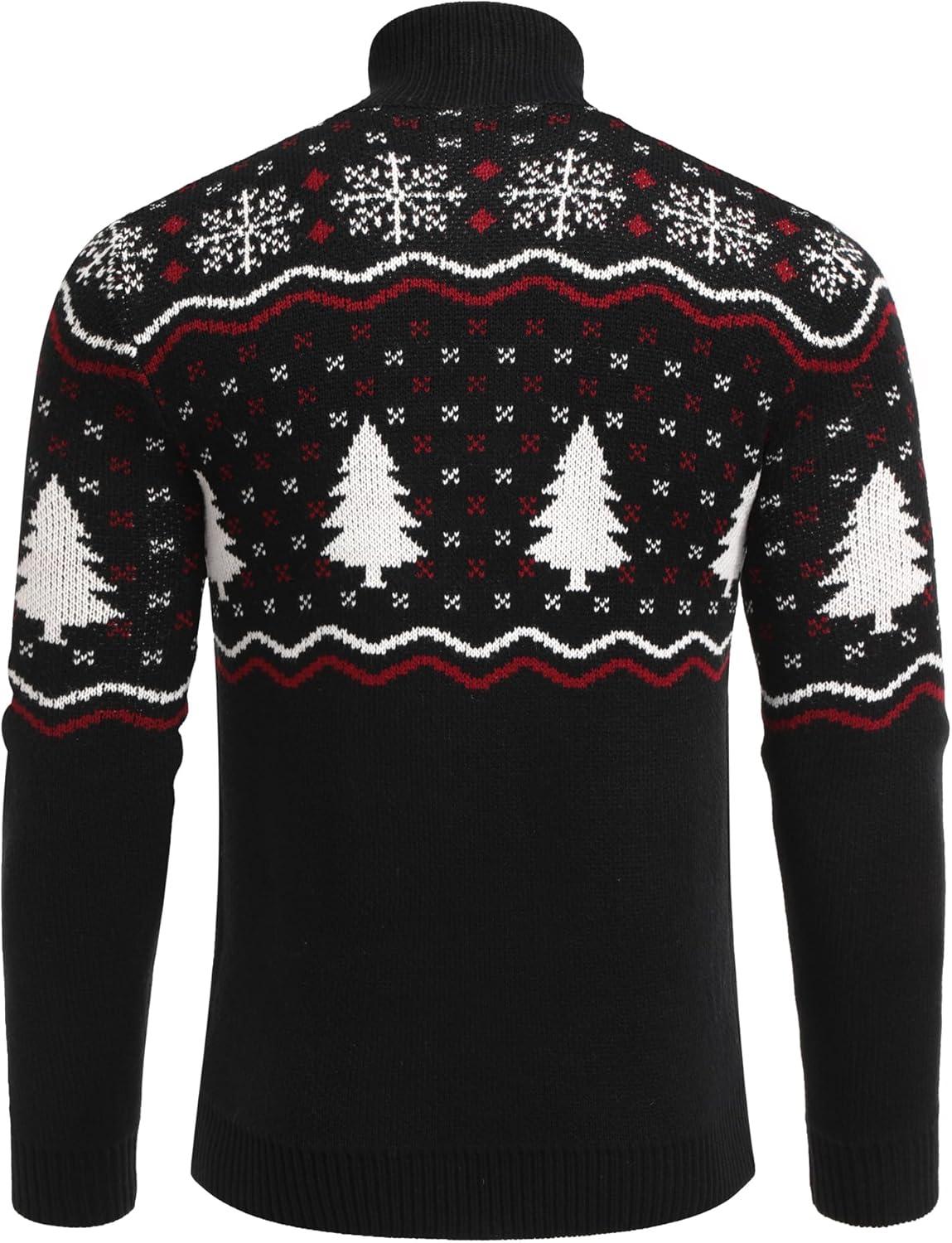 COOFANDY Men’s Quarter Zip Pullover Sweater Casual Zip Up Polo Sweater Knit(Black and White Snowflakes Christmas Tree)