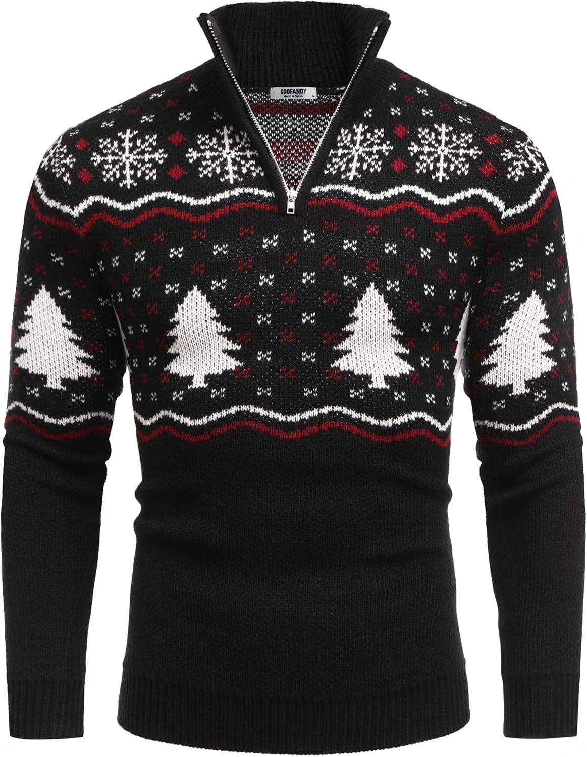 Save big on COOFANDY Men’s Quarter Zip Pullover Sweater Casual Zip Up Polo Sweater Knit(Black and White Snowflakes Christmas Tree) and accessories during our BOGO sale. Buy one, get one 50% off!