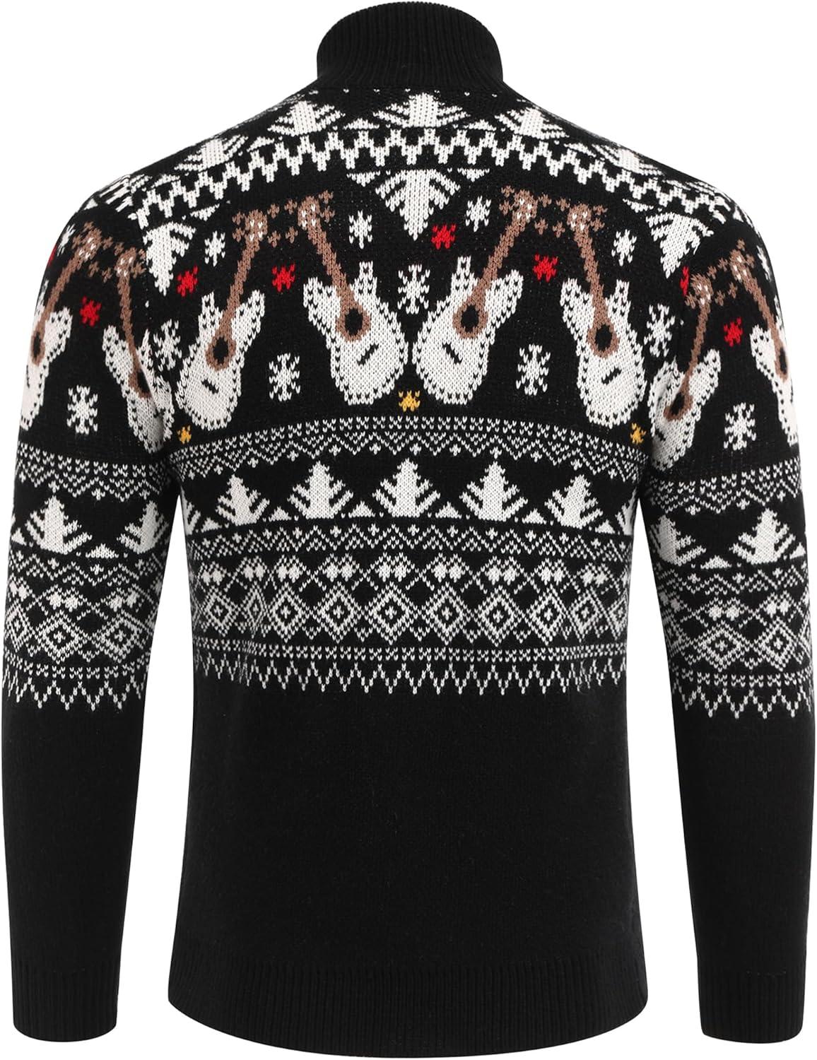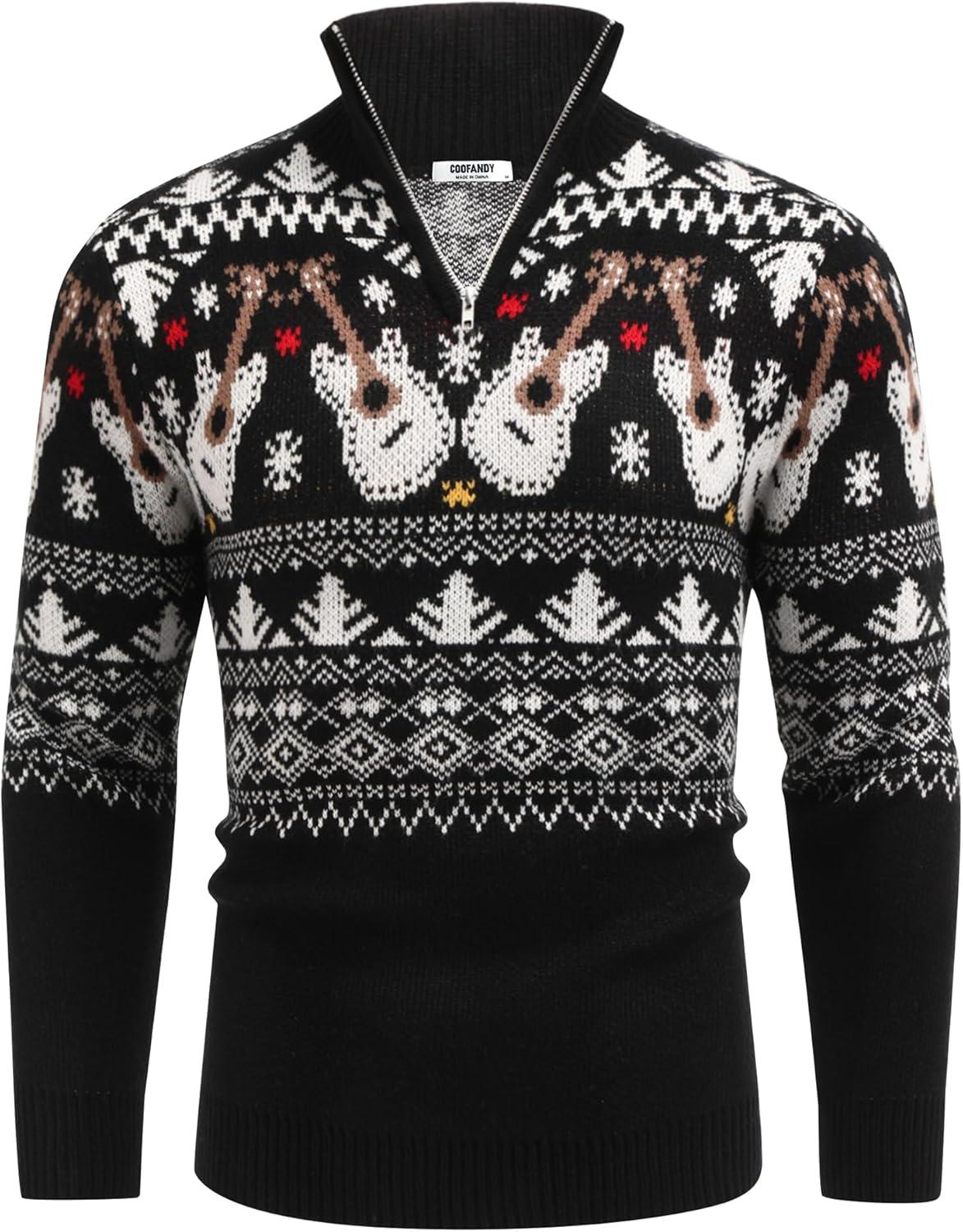COOFANDY Men's Quarter Zip Pullover Sweater Casual Zip Up Polo Sweater Knit(Christmas Guitar)