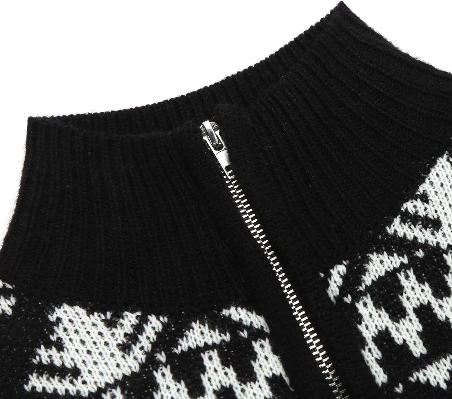 COOFANDY Men’s Quarter Zip Pullover Sweater Casual Zip Up Polo Sweater Knit(Black and Yellow Snowman)