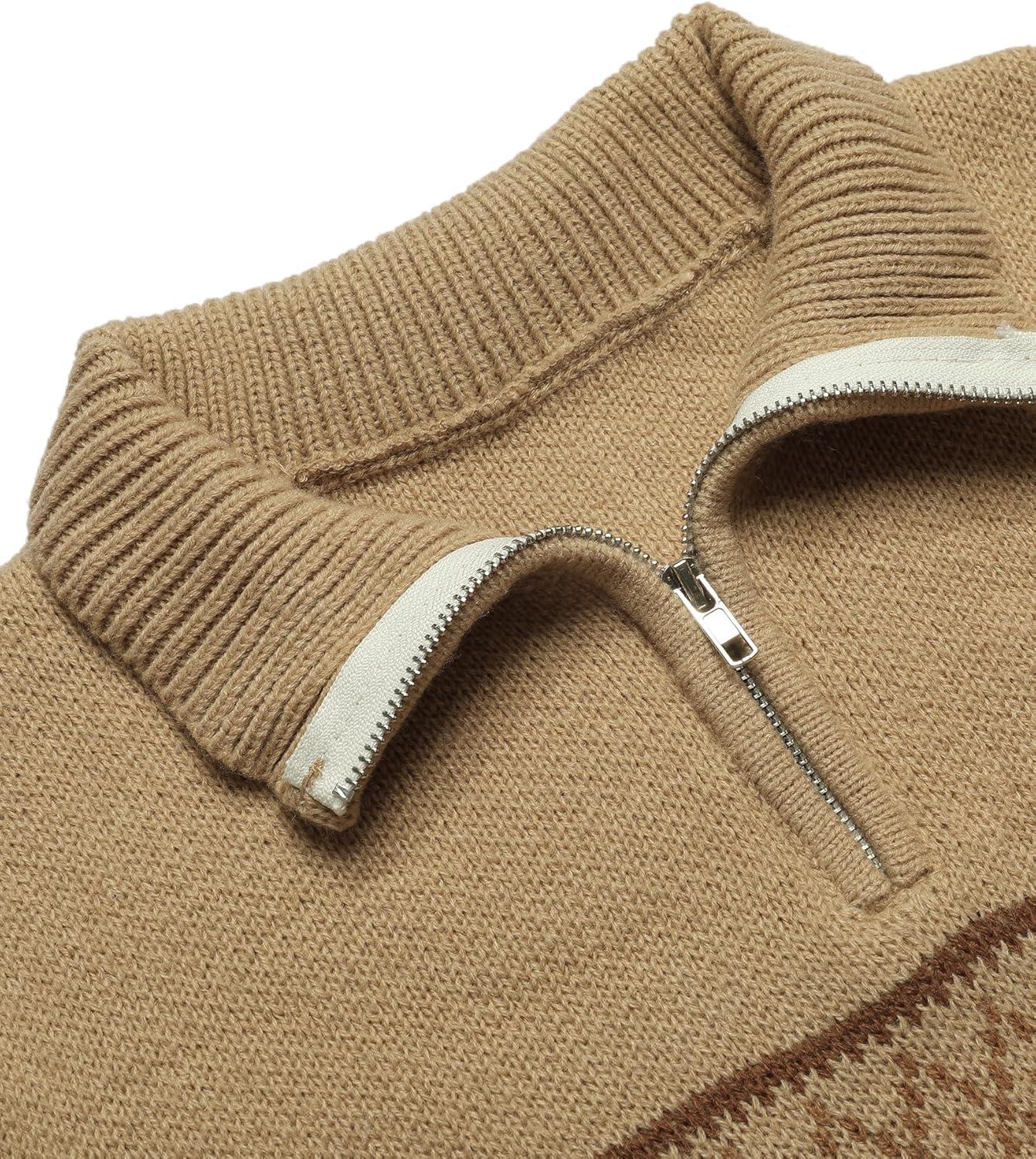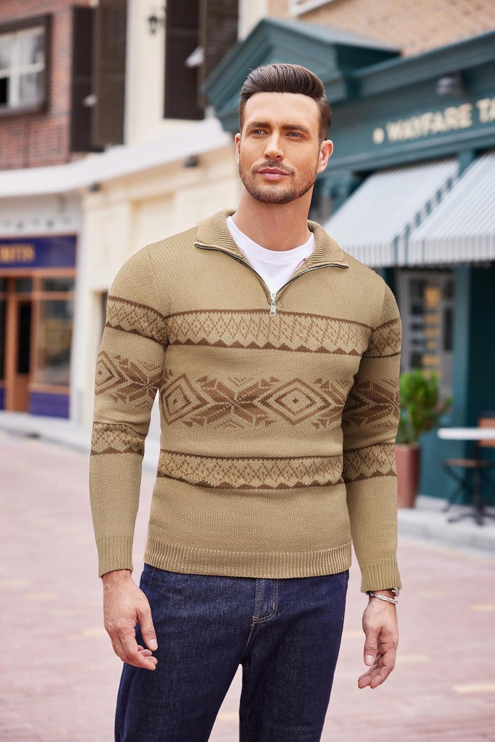 COOFANDY Men's Quarter Zip Pullover Sweater Casual Zip Up Polo Sweater Knit(Pat13 Khaki)