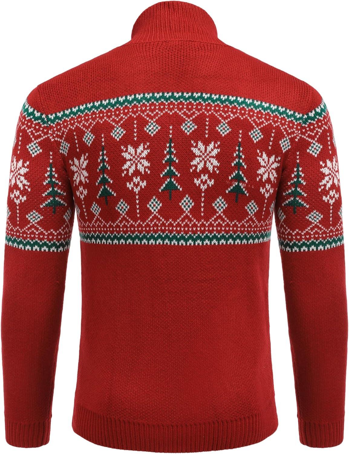 COOFANDY Men's Quarter Zip Pullover Sweater Casual Zip Up Polo Sweater Knit(Red and Christmas Tree)
