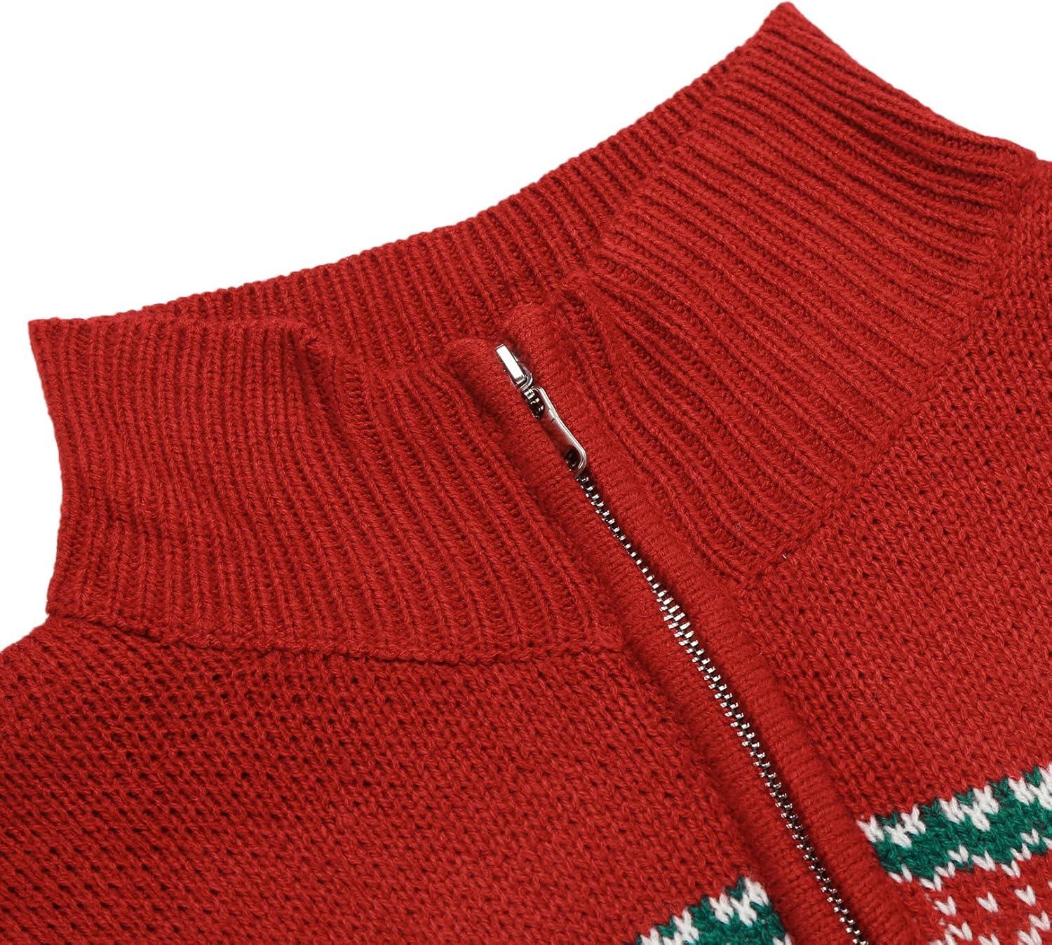 COOFANDY Men’s Quarter Zip Pullover Sweater Casual Zip Up Polo Sweater Knit(Red and White Deer)