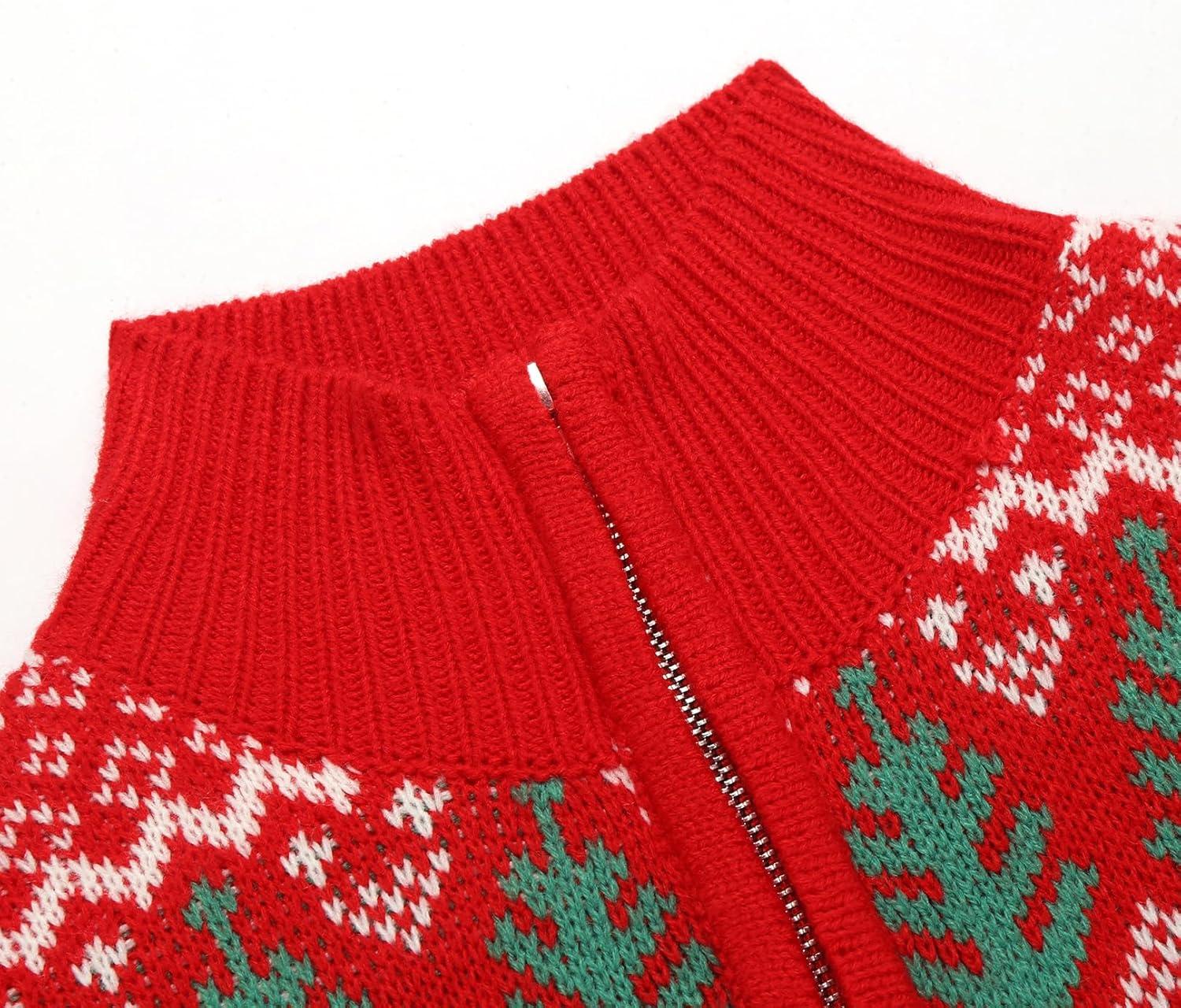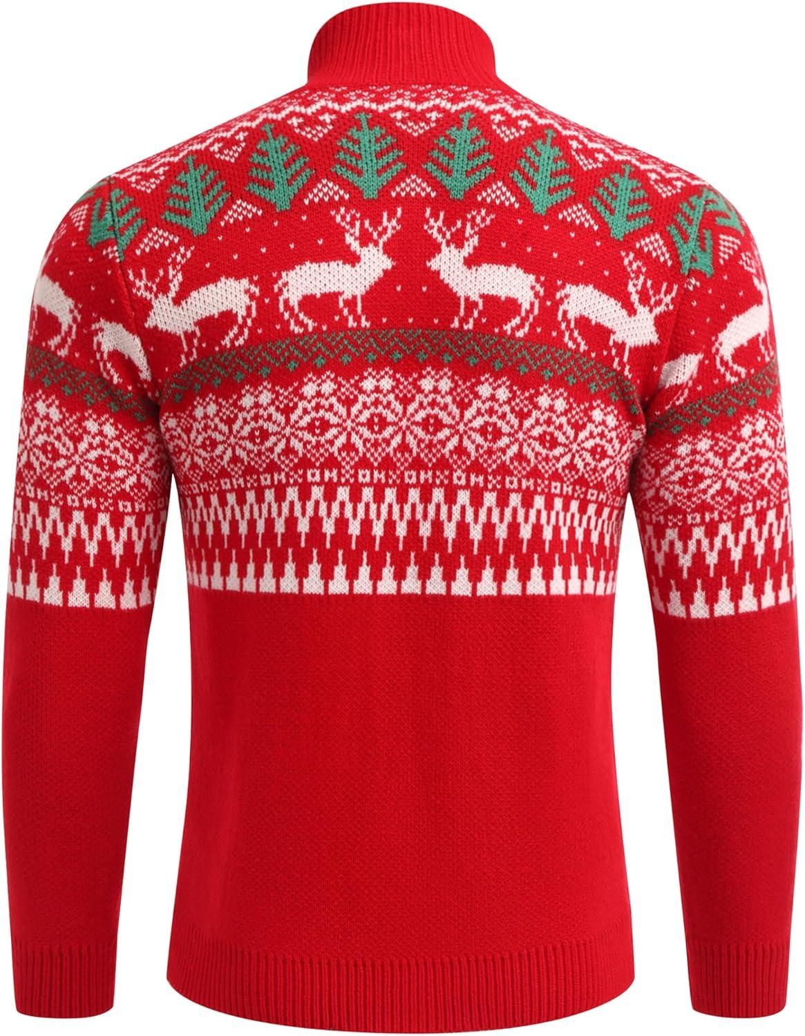 COOFANDY Men’s Quarter Zip Pullover Sweater Casual Zip Up Polo Sweater Knit(Red and Christmas Tree)