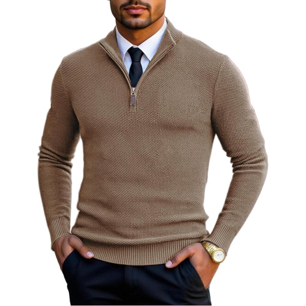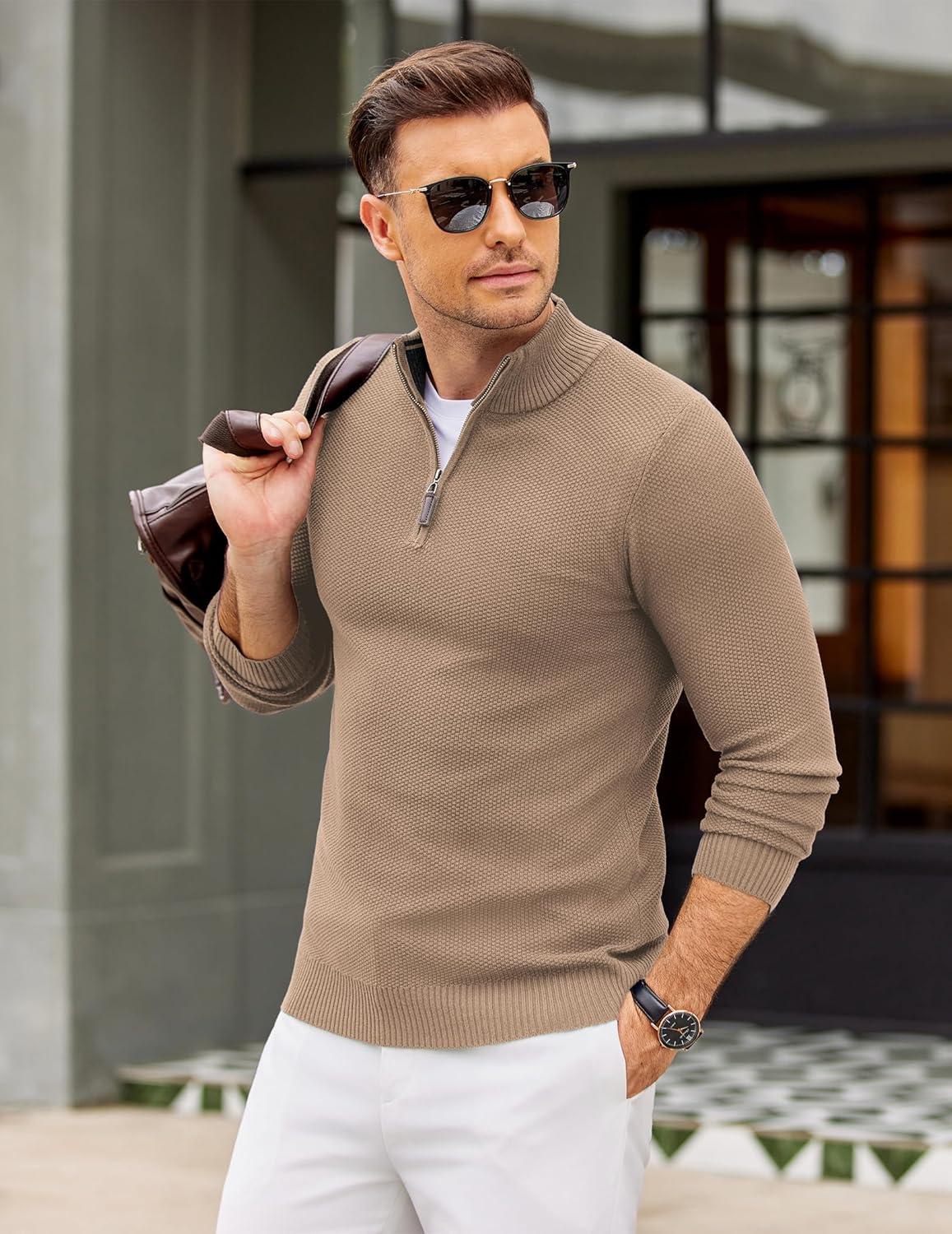 COOFANDY Men's Quarter Zip Pullover Sweater Slim Fit Knit Mock Neck Polo Sweaters(Khaki)