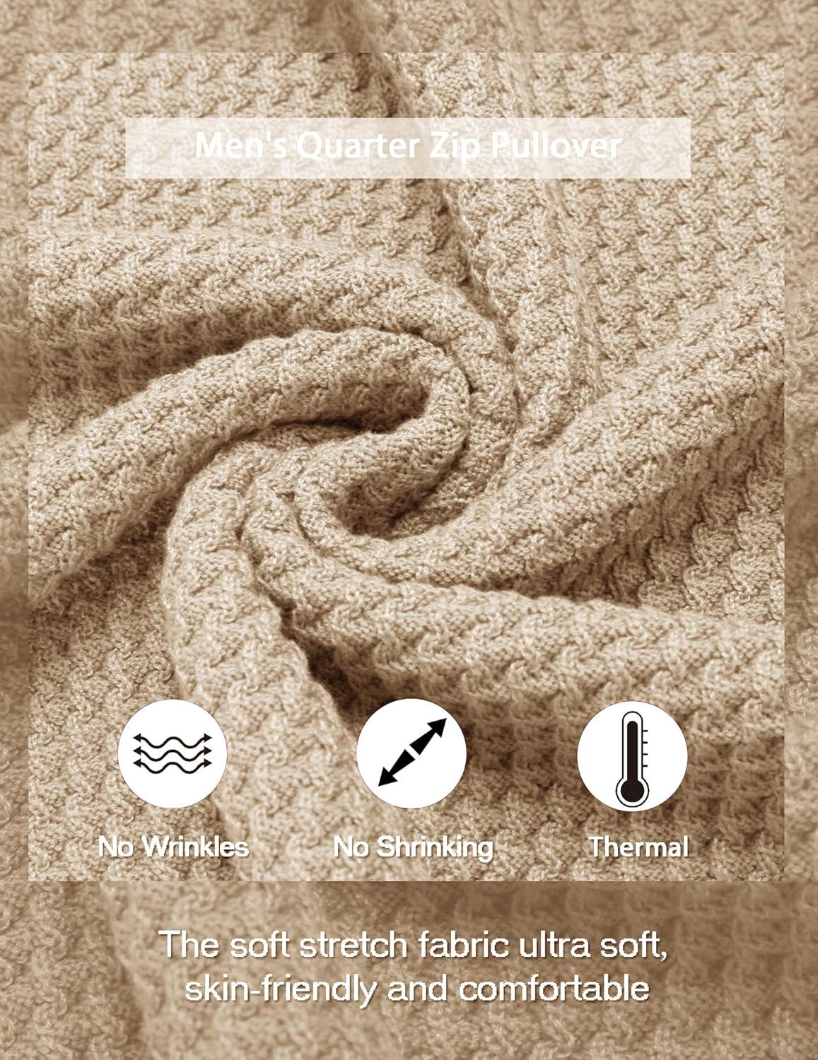 COOFANDY Mens Quarter Zip Pullover Sweater Slim Fit Waffle Mock Turtleneck Polo Sweater Casual Long Sleeve Sweatshirt(Khaki)