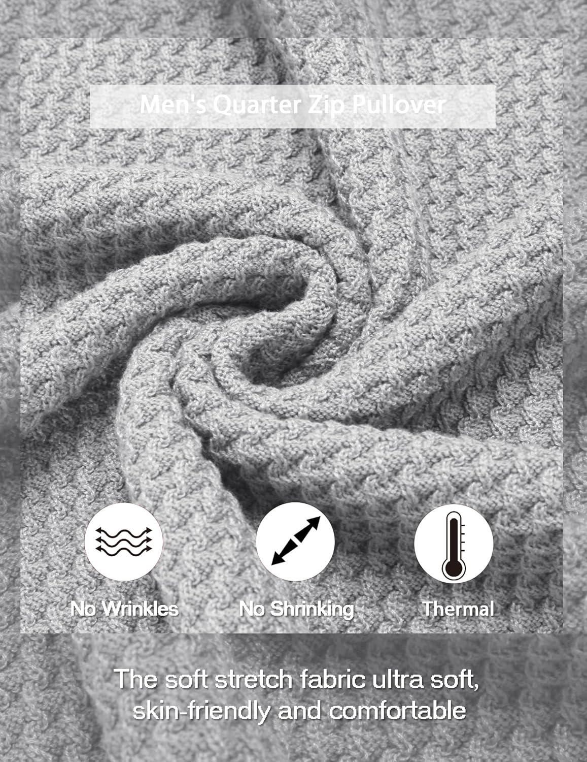 COOFANDY Mens Quarter Zip Pullover Sweater Slim Fit Waffle Mock Turtleneck Polo Sweater Casual Long Sleeve Sweatshirt(Light Grey)