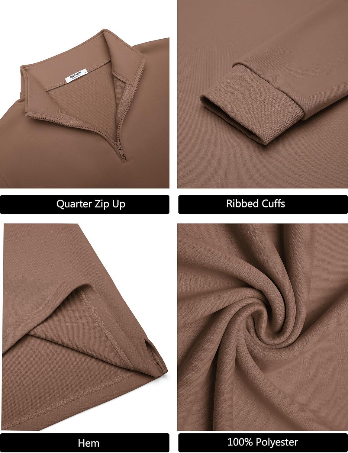 COOFANDY Men's Quarter-Zip Pullover Lightweight Mock Neck Sweatshirt Slim Fit Casual Long Sleeve Sweatshirt Engineered with premium polyester fleece fabric, men's quarter zip quilted sweatshirt withstands multi washes without pilling/deformation. The 1/4 zip closure and mock neck create 3 styling modes in 5 seconds: Full-zip pullover with dress shirts: Boardroom ready Half-zip sweatshirts with joggers: Gym performance unlocked Fahion side vents: Unrestricted golf swings COOFANDY Men's Quarter Pullover Lightweight 1/4 Zip Long Sleeve Sweatshirt Half Zipper Fleece Sweater Men's lightweight 1/4 zip pullover featuring 11 colors, its soft and thermal design ensures all-day comfort while the half-zip neckline allows adjustable ventilation. Features quarter zip pullover men, mens quarter zip pullover, 1/4 fleece pullover mens, mens 1/4 zip pullover, 3/4 zip pullover mensr mens quarter zip sweatshirt, sweatshirts for men, mens sweatshirt, mens 1/4 zip sweatshirt, men's quarter zip sweatshirts, quarter zip sweatshirt men Mock neck, long sleeves, slim fit Soft, lightweight, skin-friendly, comfortable, stretchy Office, business, casual daily, date, streetwear, travel Men's Quarter Zip Pullover Sweatshirt Size Chart: S M L XL 2XL 3XL S Size: Chest: 42.9″/ Shoulder: 18.4″/ Sleeve: 25.2″/ Center Back Length: 27.0″ M Size: Chest: 44.9″ Shoulder: 18.9″/ Sleeve: 25.6″/ Center Back Length: 27.6″ L Size: Chest:47.9″/ Shoulder: 19.6″/ Sleeve: 26.0″/ Center Back Length: 28.1″ XL Size: Chest: 50.9″/ Shoulder: 20.3″/ Sleeve: 26.4″/ Center Back Length: 28.7″ XXL Size: Chest: 53.9″/ Shoulder: 21″/ Sleeve: 26.8″/ Center Back Length: 29.3″ 3XL Size: Chest: 56.9″/ Shoulder: 21.7″/ Sleeve: 26.8″/ Center Back Length: 29.3″ Tell Us If you have any questions with coofandy mens quarter zip up pullover, please contact us to ensure you have a wonderful shopping experience!