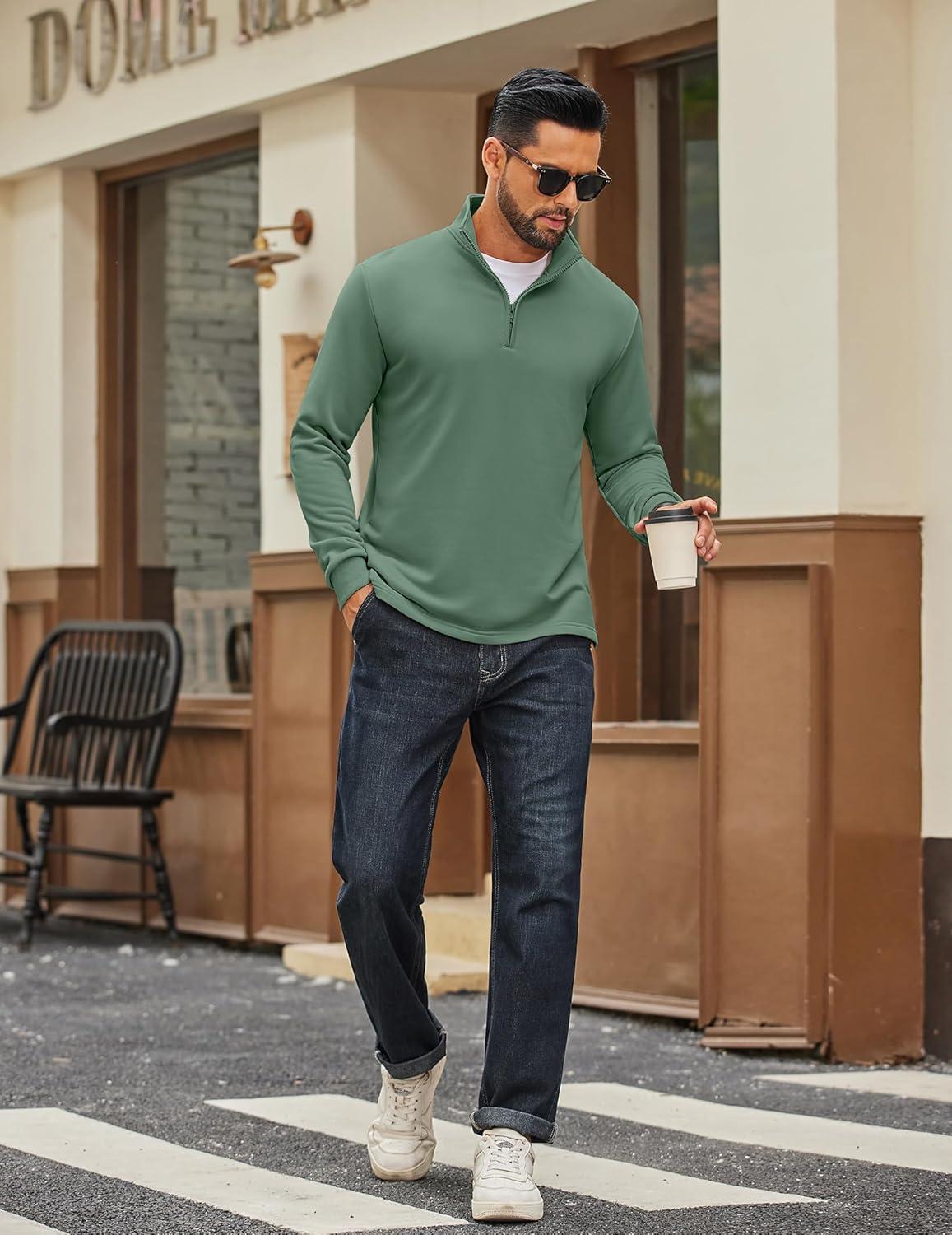 COOFANDY Men's Quarter-Zip Pullover Lightweight Mock Neck Sweatshirt Slim Fit Casual Long Sleeve Sweatshirt Engineered with premium polyester fleece fabric, men's quarter zip quilted sweatshirt withstands multi washes without pilling/deformation. The 1/4 zip closure and mock neck create 3 styling modes in 5 seconds: Full-zip pullover with dress shirts: Boardroom ready Half-zip sweatshirts with joggers: Gym performance unlocked Fahion side vents: Unrestricted golf swings COOFANDY Men's Quarter Pullover Lightweight 1/4 Zip Long Sleeve Sweatshirt Half Zipper Fleece Sweater Men's lightweight 1/4 zip pullover featuring 11 colors, its soft and thermal design ensures all-day comfort while the half-zip neckline allows adjustable ventilation. Features quarter zip pullover men, mens quarter zip pullover, 1/4 fleece pullover mens, mens 1/4 zip pullover, 3/4 zip pullover mensr mens quarter zip sweatshirt, sweatshirts for men, mens sweatshirt, mens 1/4 zip sweatshirt, men's quarter zip sweatshirts, quarter zip sweatshirt men Mock neck, long sleeves, slim fit Soft, lightweight, skin-friendly, comfortable, stretchy Office, business, casual daily, date, streetwear, travel Men's Quarter Zip Pullover Sweatshirt Size Chart: S M L XL 2XL 3XL S Size: Chest: 42.9″/ Shoulder: 18.4″/ Sleeve: 25.2″/ Center Back Length: 27.0″ M Size: Chest: 44.9″ Shoulder: 18.9″/ Sleeve: 25.6″/ Center Back Length: 27.6″ L Size: Chest:47.9″/ Shoulder: 19.6″/ Sleeve: 26.0″/ Center Back Length: 28.1″ XL Size: Chest: 50.9″/ Shoulder: 20.3″/ Sleeve: 26.4″/ Center Back Length: 28.7″ XXL Size: Chest: 53.9″/ Shoulder: 21″/ Sleeve: 26.8″/ Center Back Length: 29.3″ 3XL Size: Chest: 56.9″/ Shoulder: 21.7″/ Sleeve: 26.8″/ Center Back Length: 29.3″ Tell Us If you have any questions with coofandy mens quarter zip up pullover, please contact us to ensure you have a wonderful shopping experience!