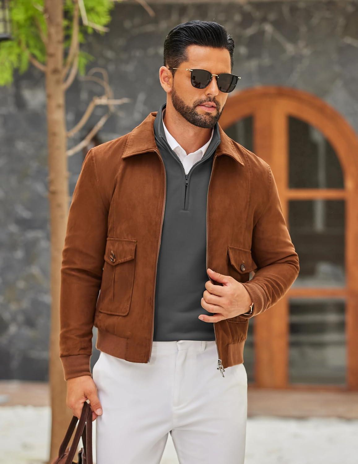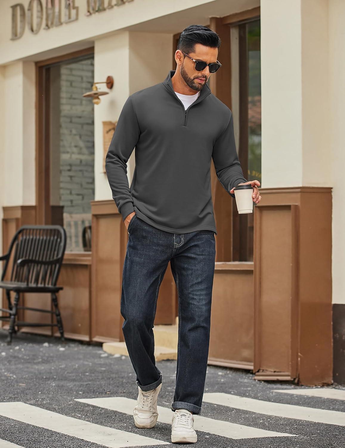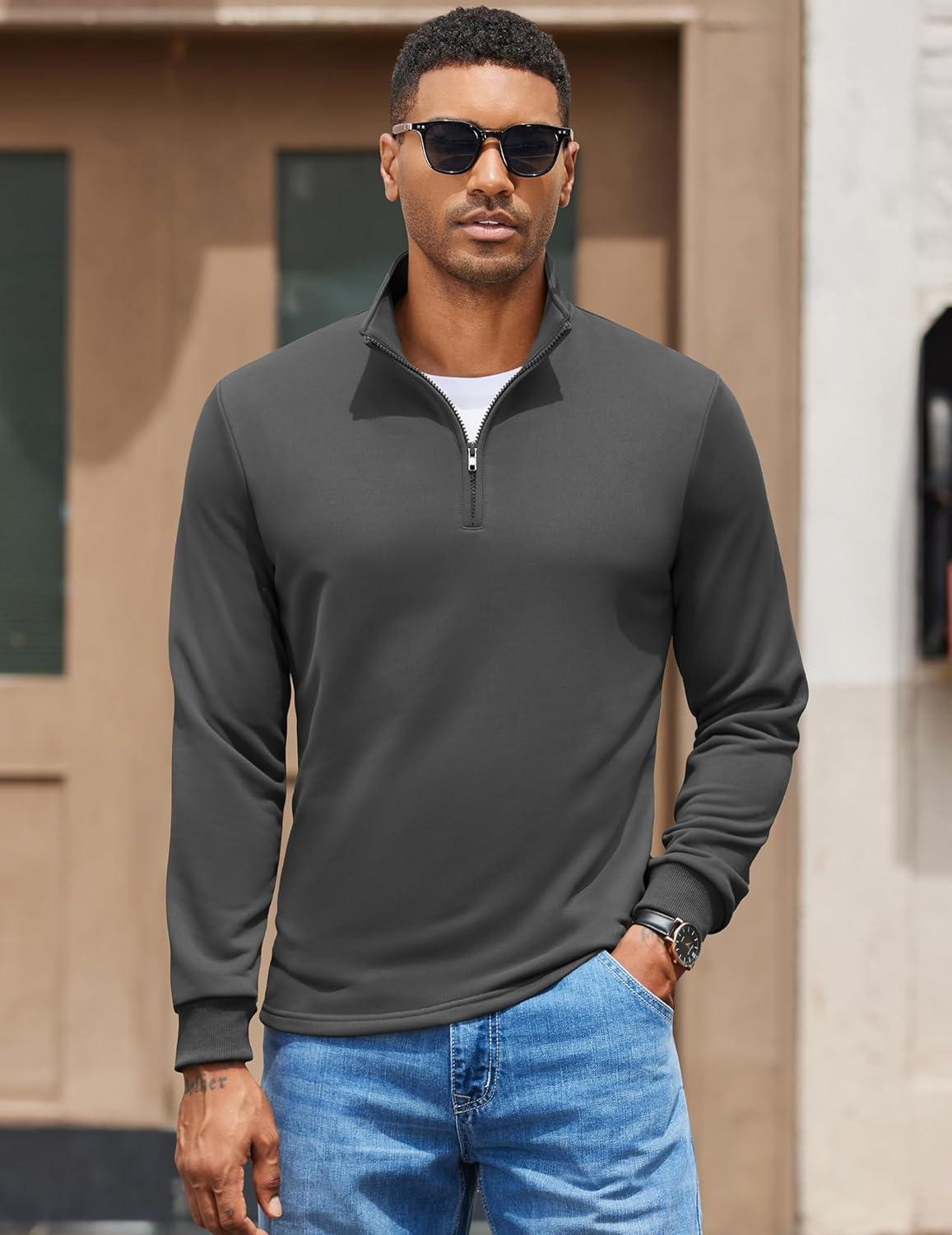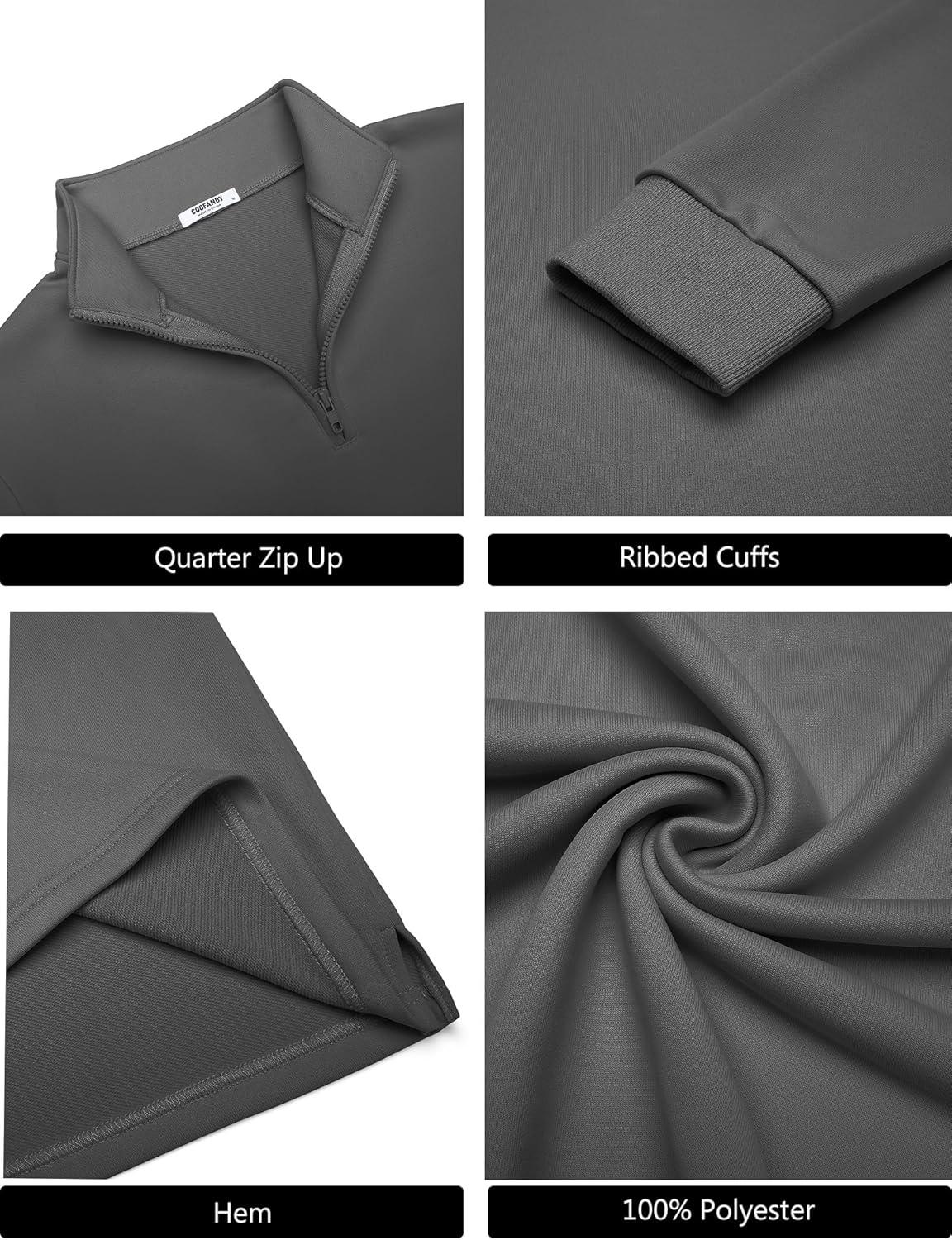COOFANDY Men's Quarter-Zip Pullover Lightweight Mock Neck Sweatshirt Slim Fit Casual Long Sleeve Sweatshirt Engineered with premium polyester fleece fabric, men's quarter zip quilted sweatshirt withstands multi washes without pilling/deformation. The 1/4 zip closure and mock neck create 3 styling modes in 5 seconds: Full-zip pullover with dress shirts: Boardroom ready Half-zip sweatshirts with joggers: Gym performance unlocked Fahion side vents: Unrestricted golf swings COOFANDY Men's Quarter Pullover Lightweight 1/4 Zip Long Sleeve Sweatshirt Half Zipper Fleece Sweater Men's lightweight 1/4 zip pullover featuring 11 colors, its soft and thermal design ensures all-day comfort while the half-zip neckline allows adjustable ventilation. Features quarter zip pullover men, mens quarter zip pullover, 1/4 fleece pullover mens, mens 1/4 zip pullover, 3/4 zip pullover mensr mens quarter zip sweatshirt, sweatshirts for men, mens sweatshirt, mens 1/4 zip sweatshirt, men's quarter zip sweatshirts, quarter zip sweatshirt men Mock neck, long sleeves, slim fit Soft, lightweight, skin-friendly, comfortable, stretchy Office, business, casual daily, date, streetwear, travel Men's Quarter Zip Pullover Sweatshirt Size Chart: S M L XL 2XL 3XL S Size: Chest: 42.9″/ Shoulder: 18.4″/ Sleeve: 25.2″/ Center Back Length: 27.0″ M Size: Chest: 44.9″ Shoulder: 18.9″/ Sleeve: 25.6″/ Center Back Length: 27.6″ L Size: Chest:47.9″/ Shoulder: 19.6″/ Sleeve: 26.0″/ Center Back Length: 28.1″ XL Size: Chest: 50.9″/ Shoulder: 20.3″/ Sleeve: 26.4″/ Center Back Length: 28.7″ XXL Size: Chest: 53.9″/ Shoulder: 21″/ Sleeve: 26.8″/ Center Back Length: 29.3″ 3XL Size: Chest: 56.9″/ Shoulder: 21.7″/ Sleeve: 26.8″/ Center Back Length: 29.3″ Tell Us If you have any questions with coofandy mens quarter zip up pullover, please contact us to ensure you have a wonderful shopping experience!