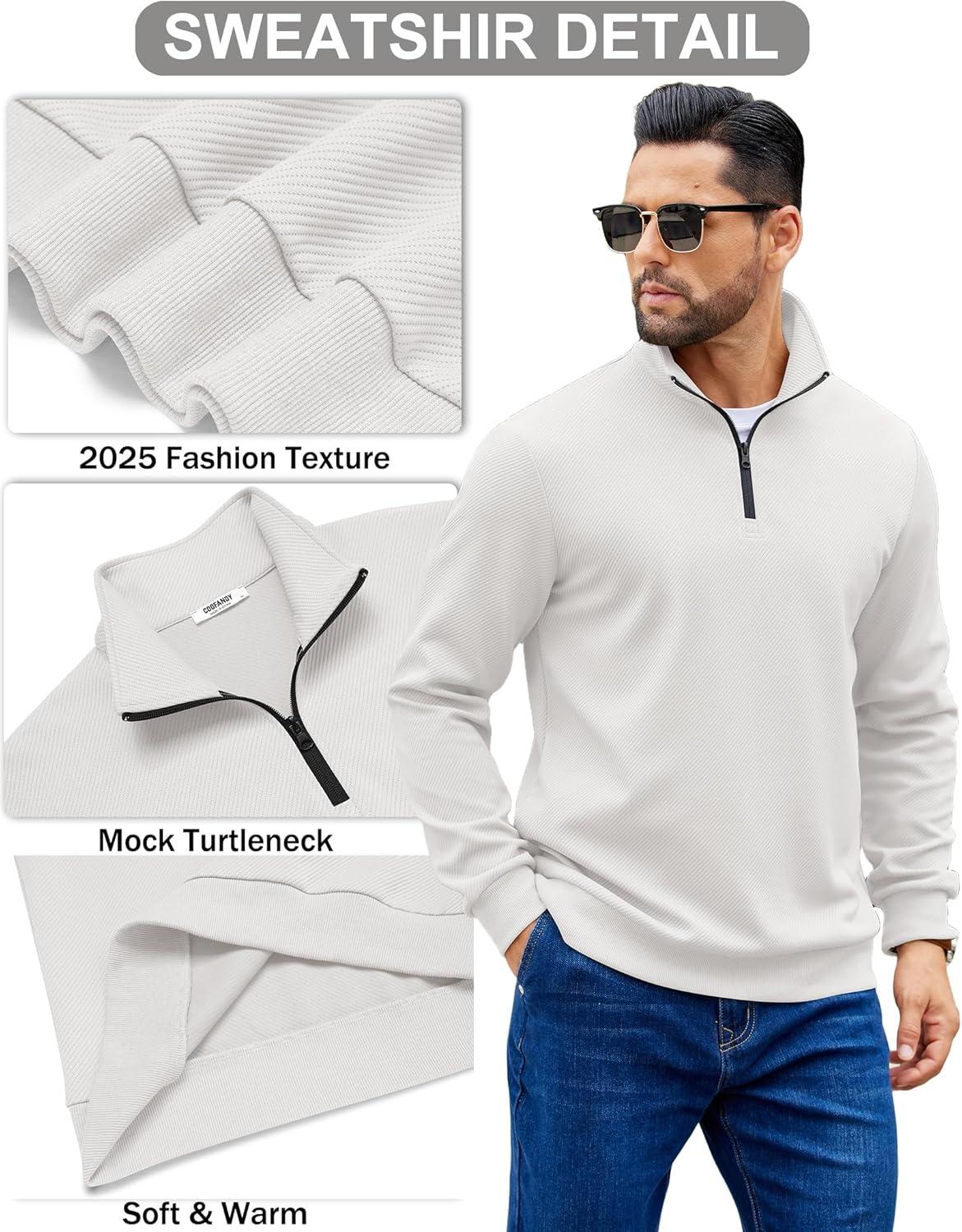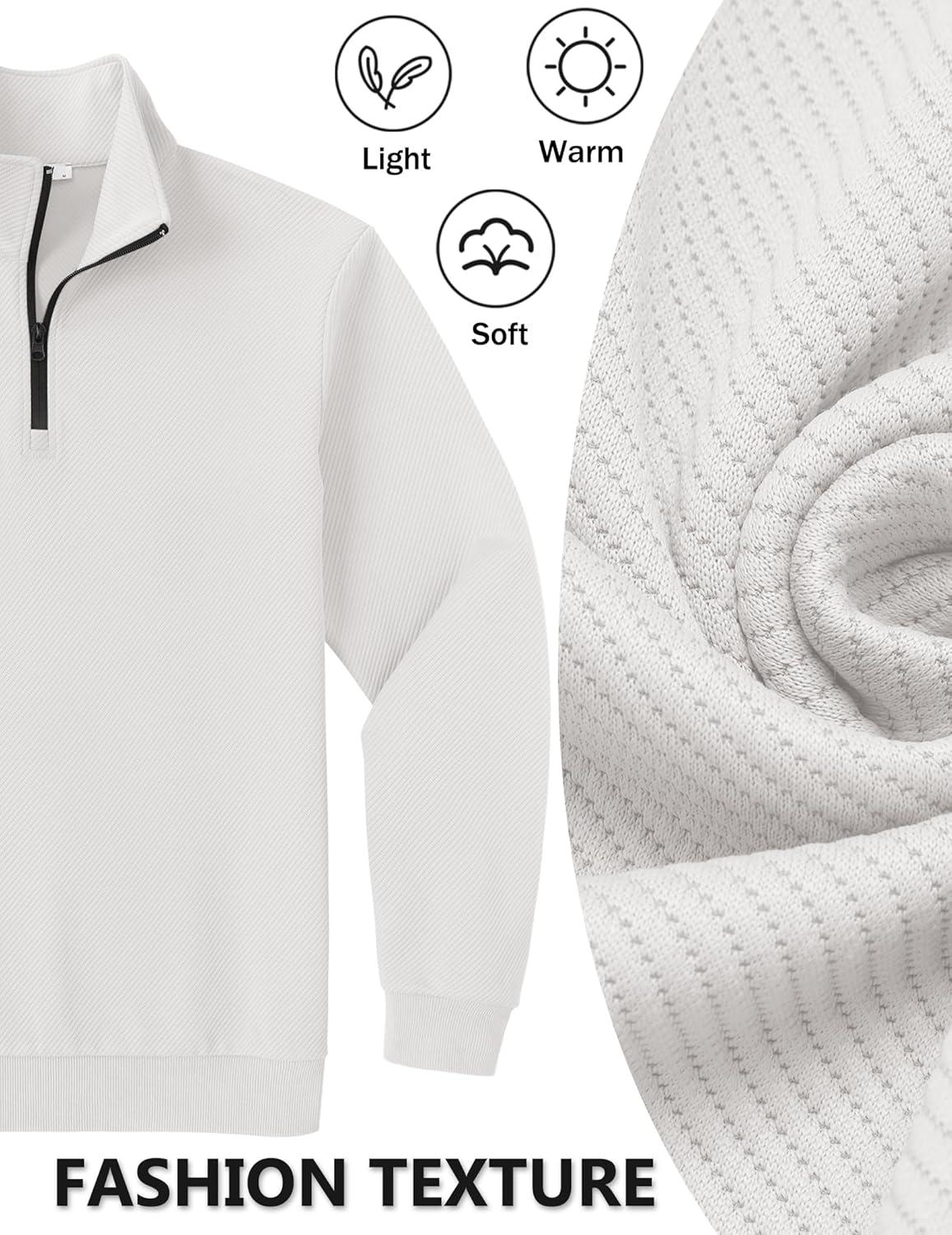 COOFANDY Mens Quarter Zip Pullover Sweatshirts Lightweight Long Sleeve Mock Neck Sweater Polo(White)