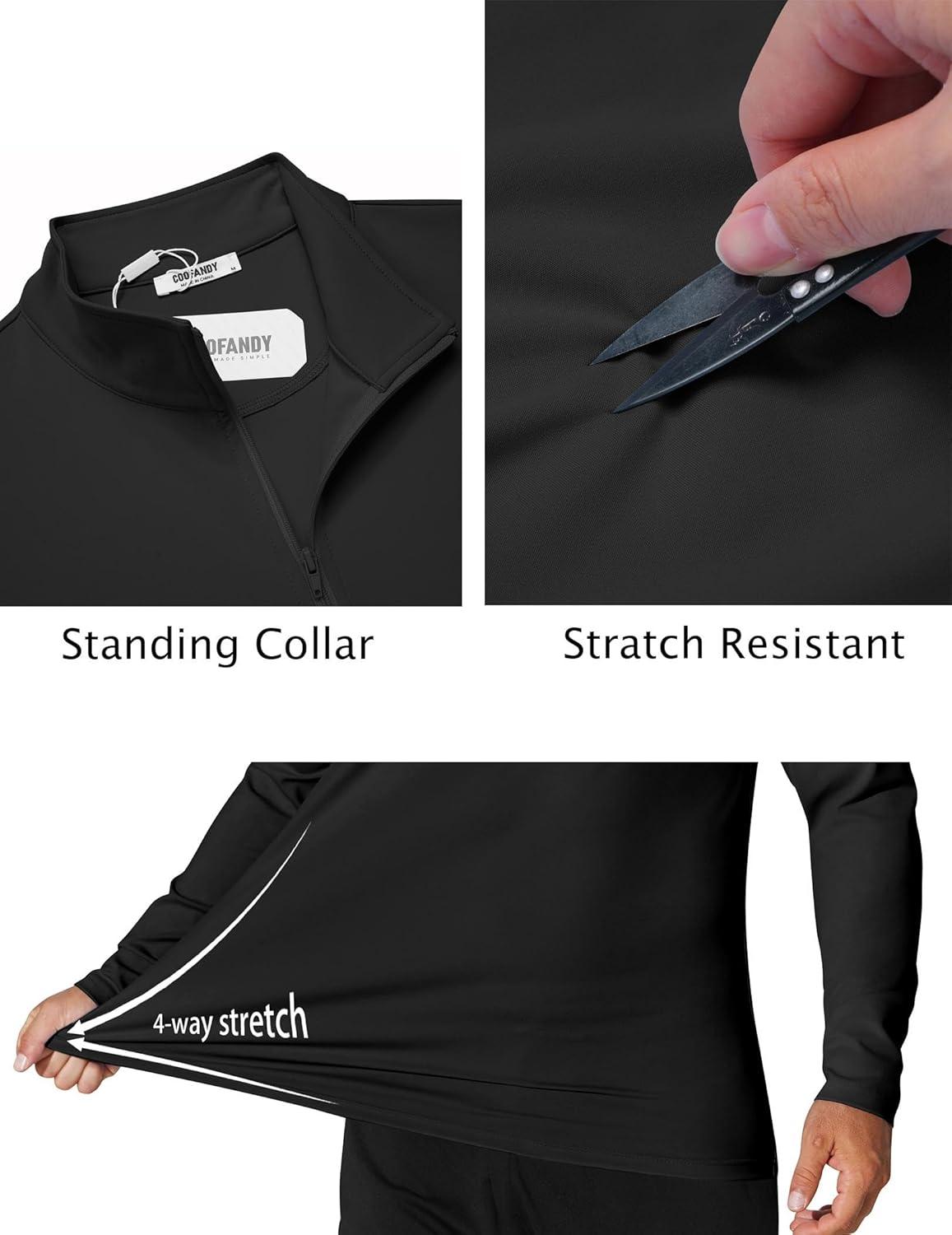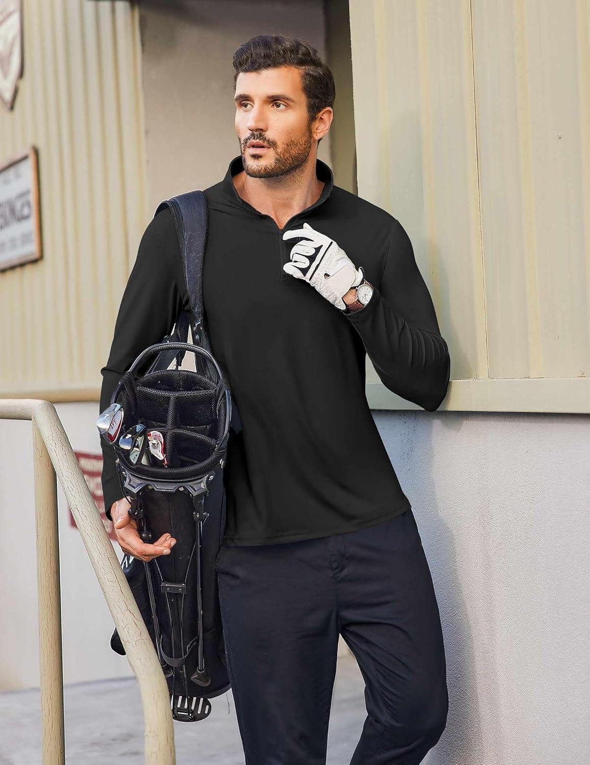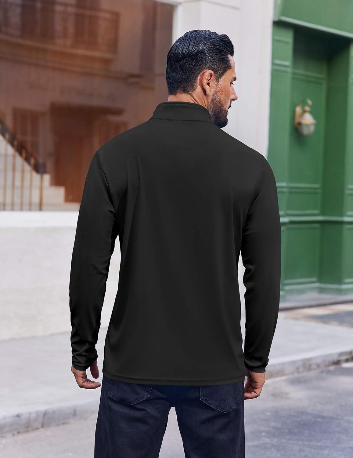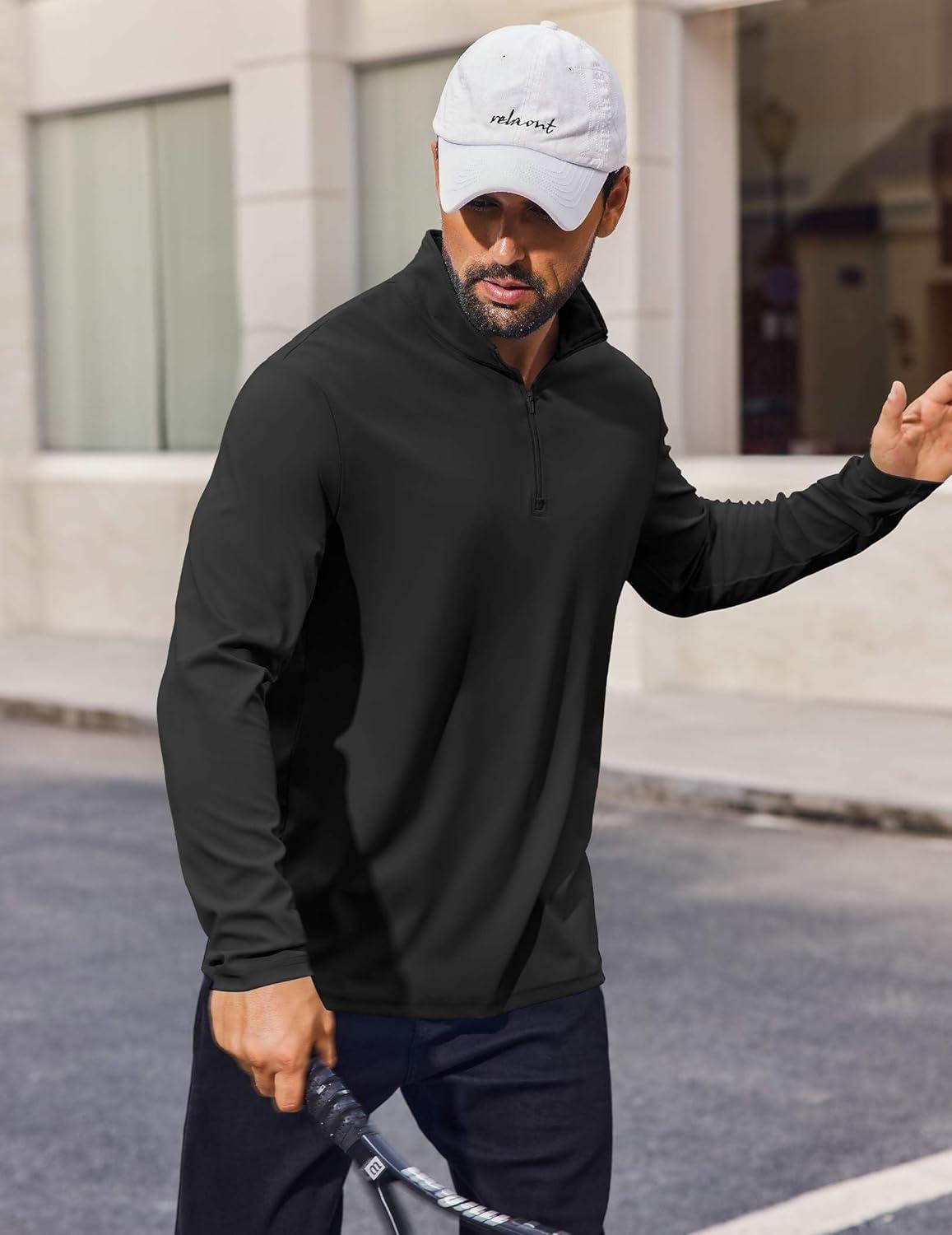 COOFANDY Mens Quarter Zip Pullover UPF 50+ Long Sleeve Sun Protection Shirts Golf Fishing Running Rash Guard T-Shirts(Black)
