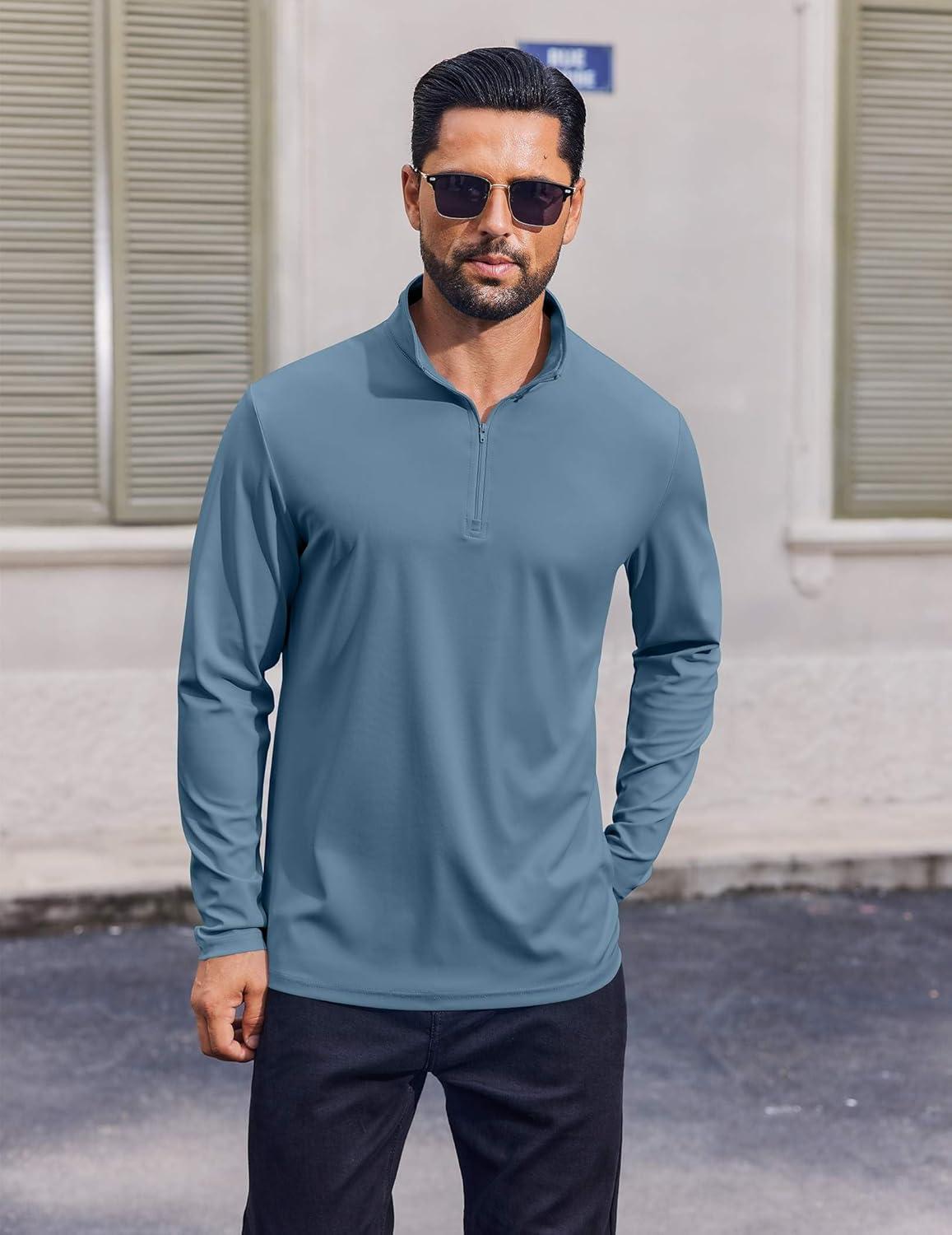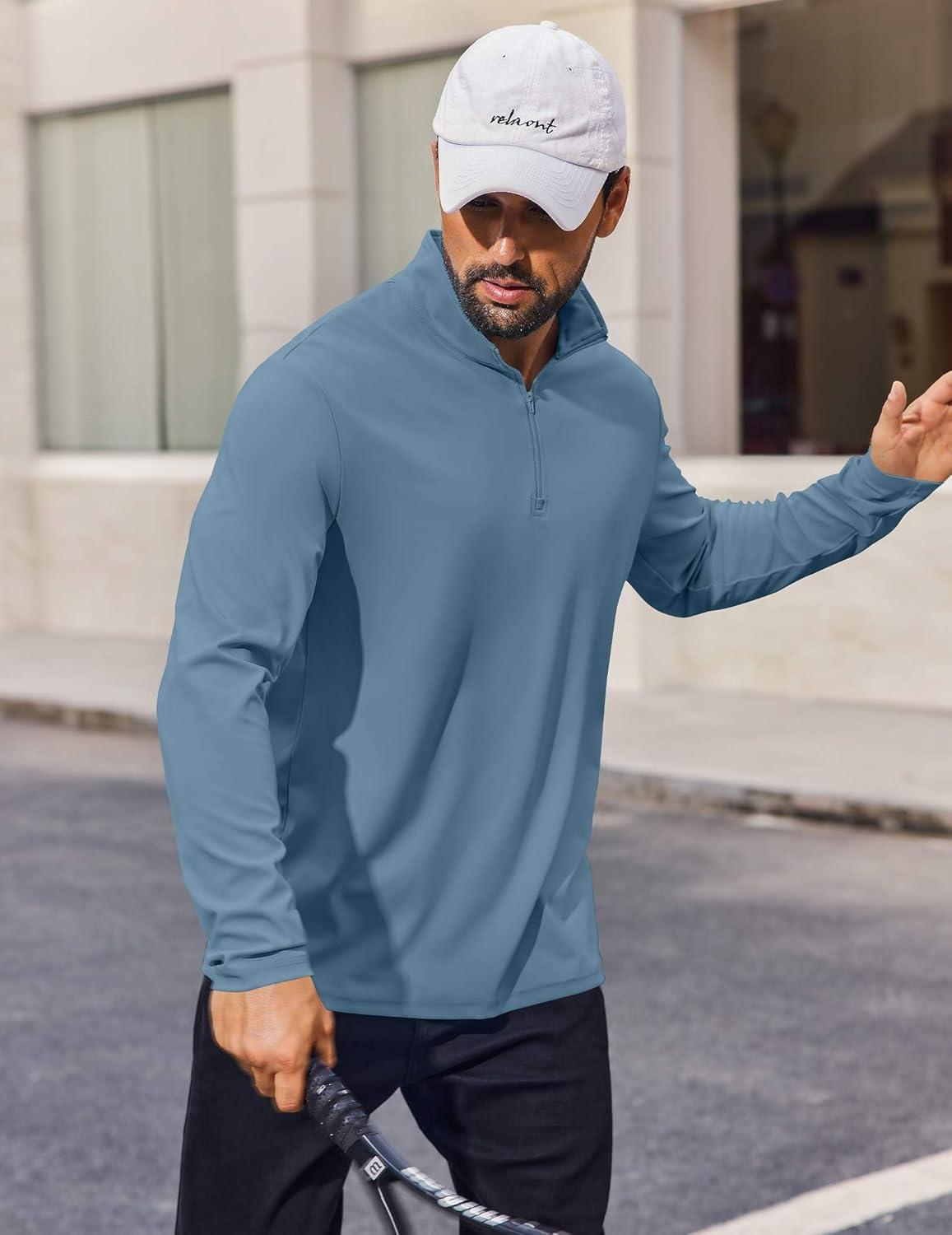 COOFANDY Mens Quarter Zip Pullover UPF 50+ Long Sleeve Sun Protection Shirts Golf Fishing Running Rash Guard T-Shirts(Deep Blue)
