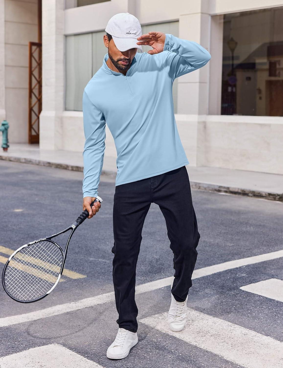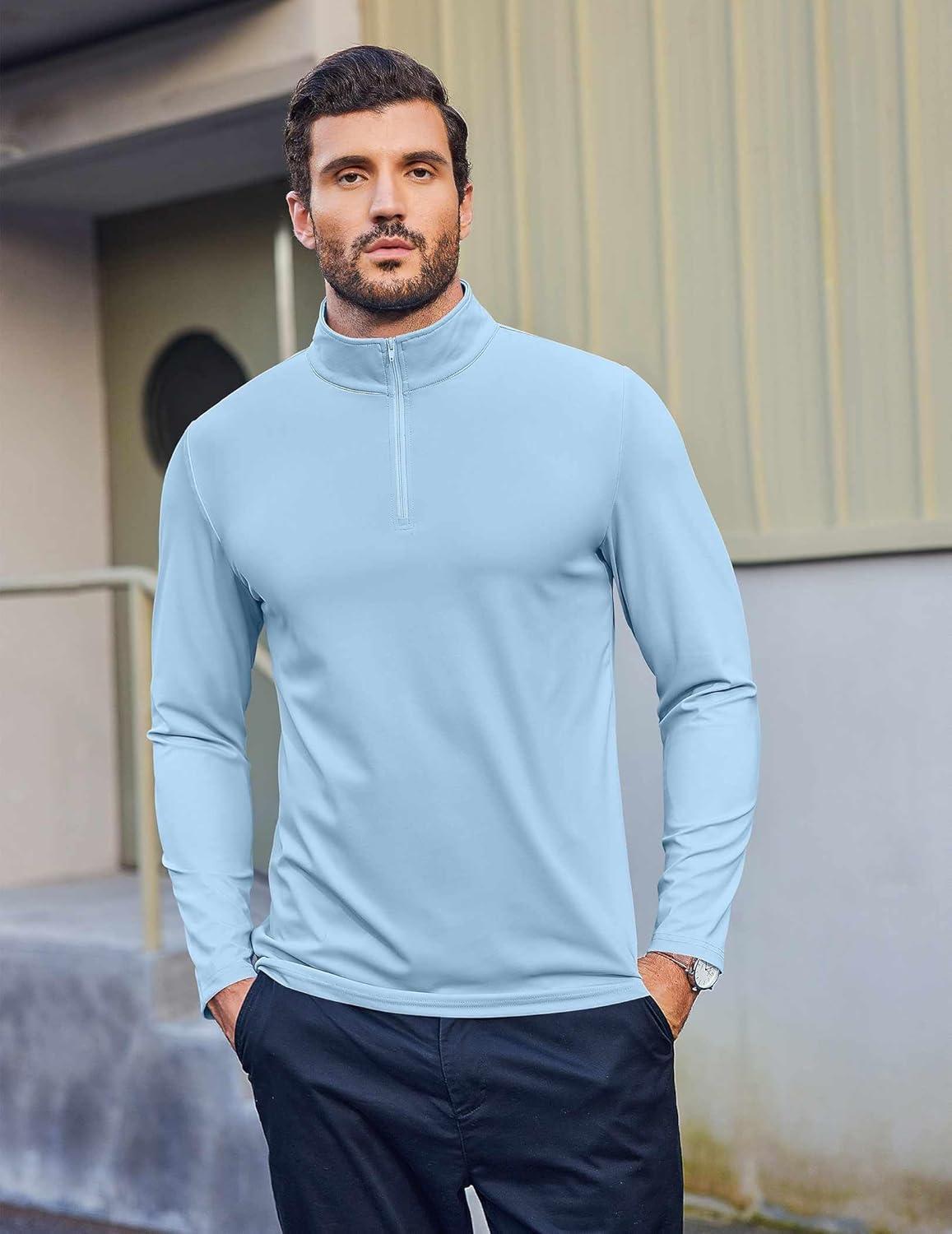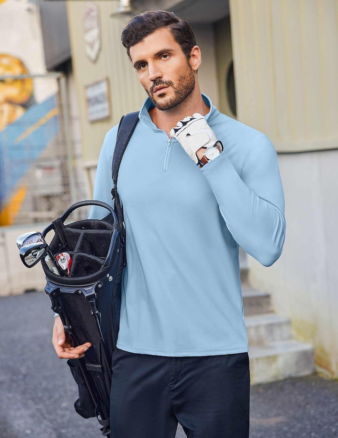 COOFANDY Mens Quarter Zip Pullover UPF 50+ Long Sleeve Sun Protection Shirts Golf Fishing Running Rash Guard T-Shirts(Light Blue)