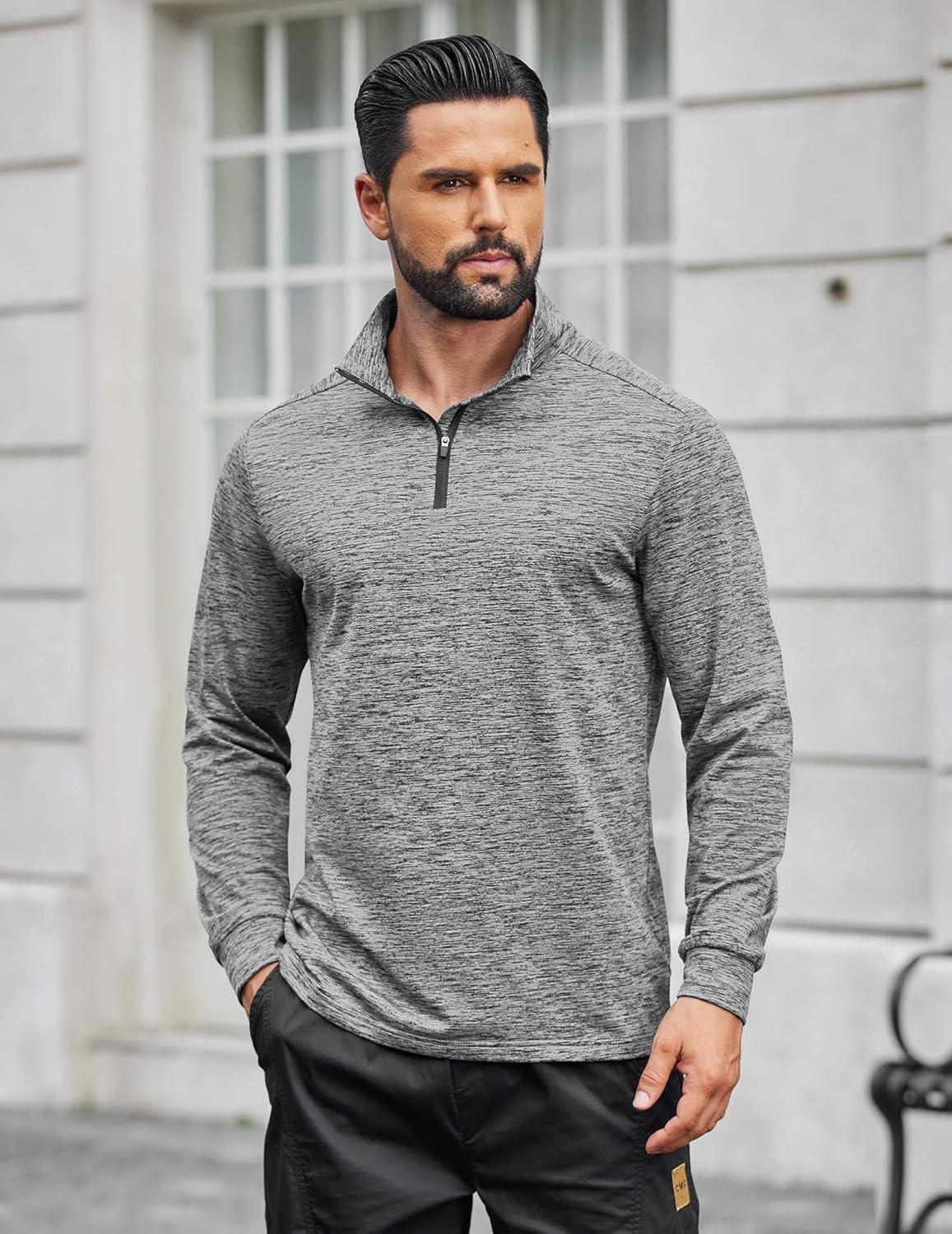 COOFANDY Men's Quarter Zip Shirts Workout Fleece Lined Lightweight Long Sleeve Pullover Sweatshirts(Dark Grey)