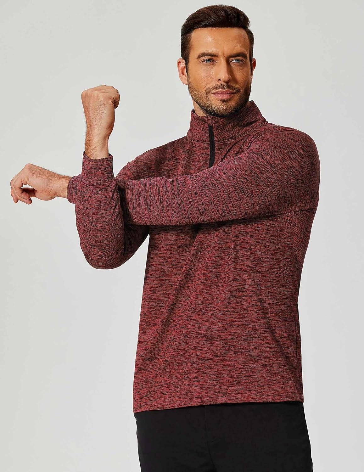 COOFANDY Men’s Quarter Zip Shirts Workout Fleece Lined Lightweight Long Sleeve Pullover Sweatshirts(Wine Red)