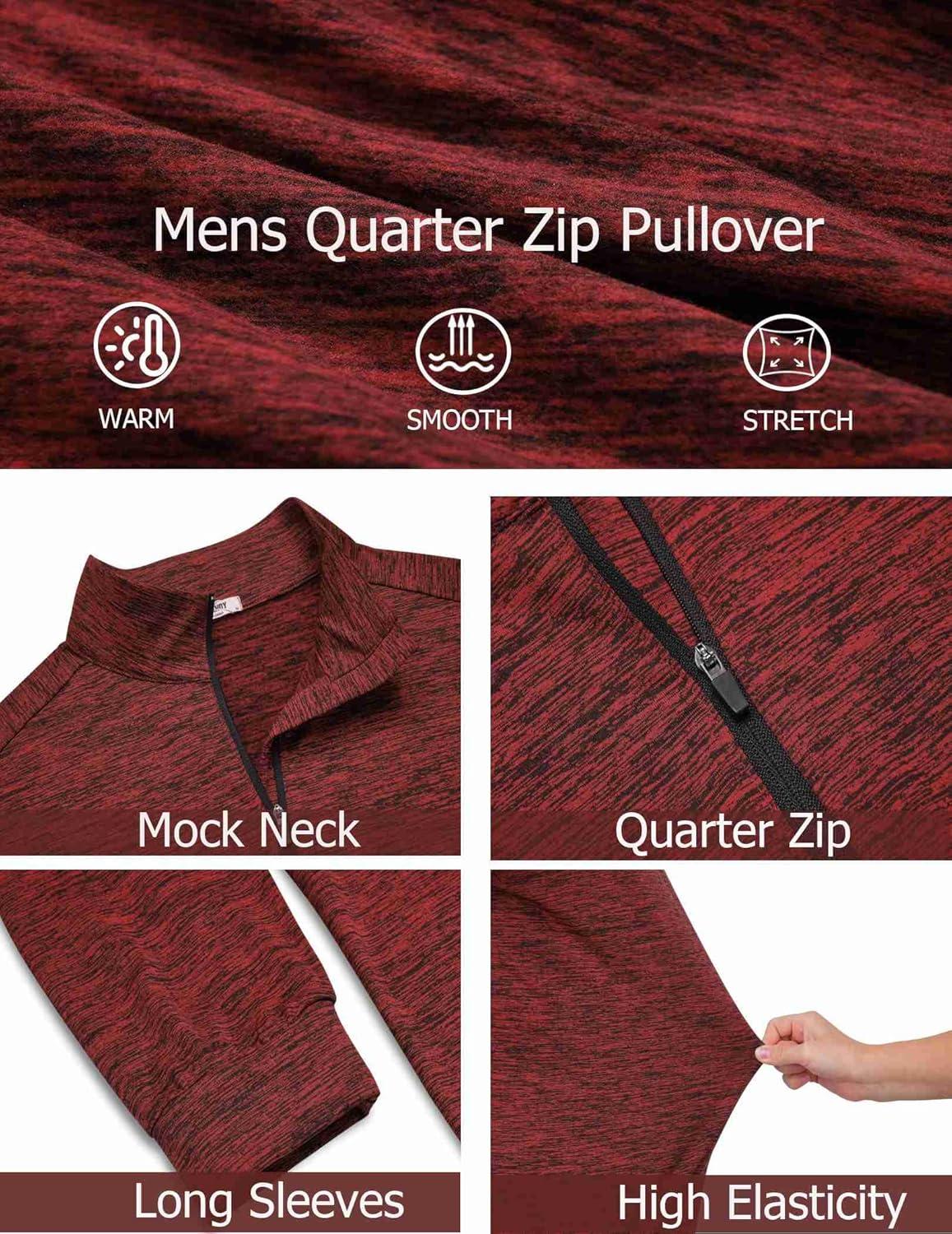 COOFANDY Men's Quarter Zip Shirts Workout Fleece Lined Lightweight Long Sleeve Pullover Sweatshirts(Wine Red)