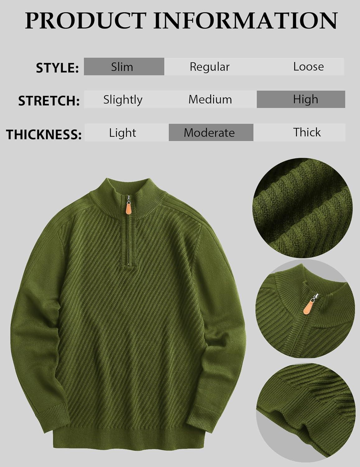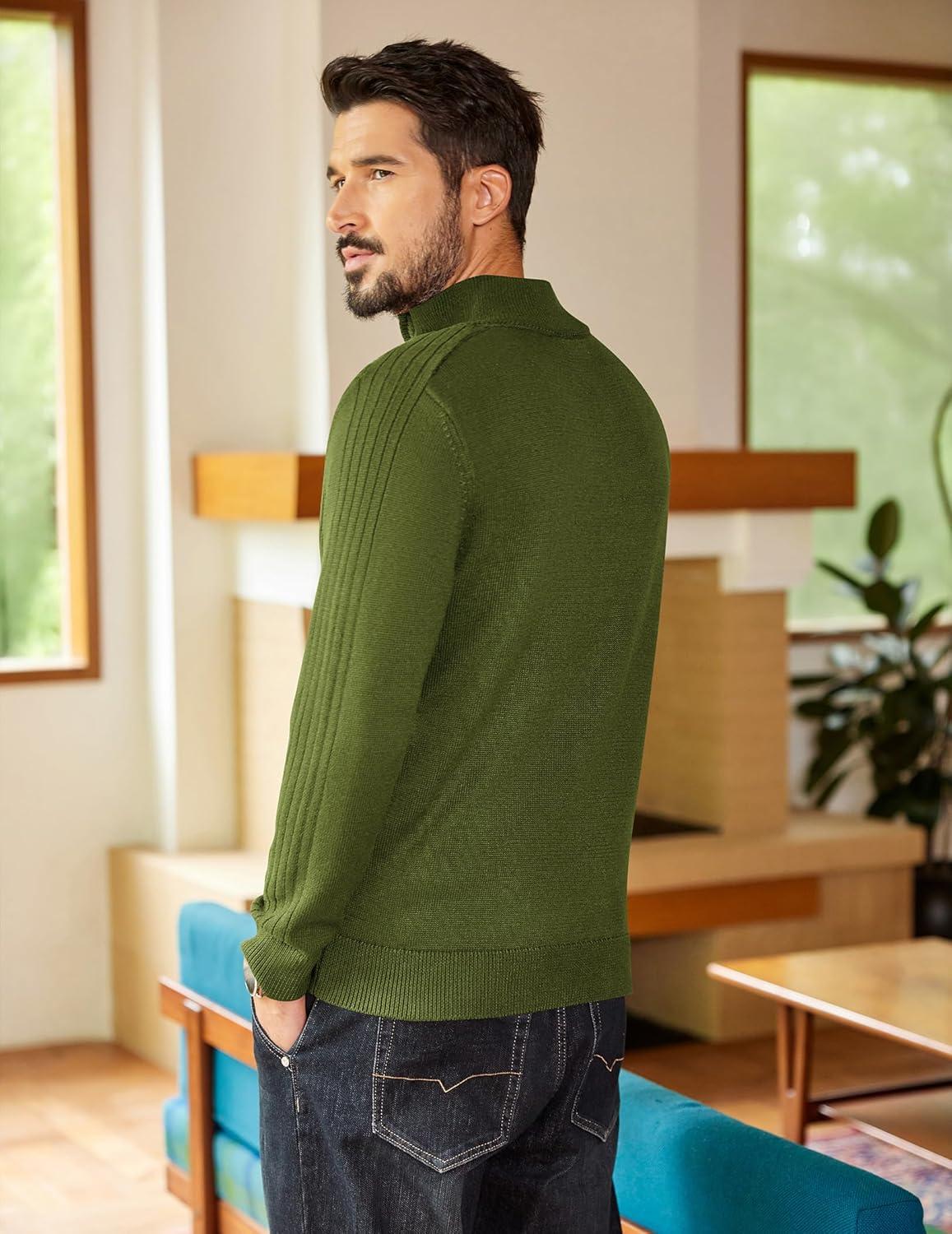 COOFANDY Mens Quarter Zip Sweater Casual Slim Fit Pullovers Sweaters Knit Twill Texture Pullover(Army Green)