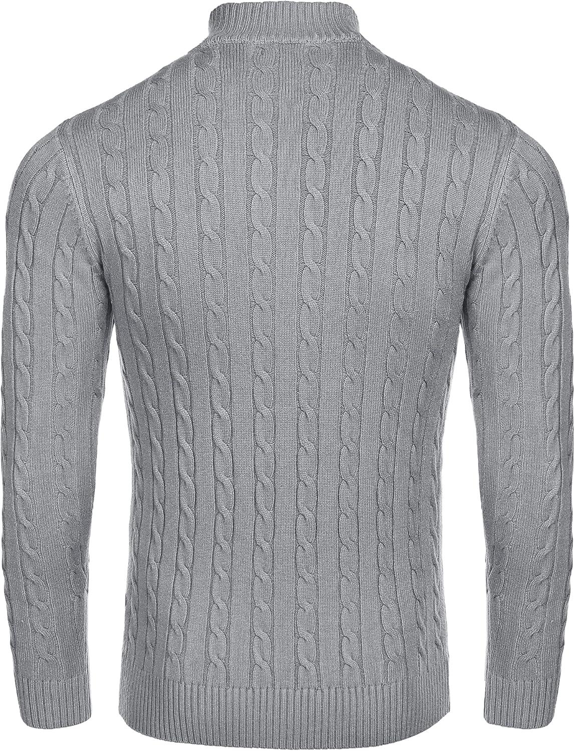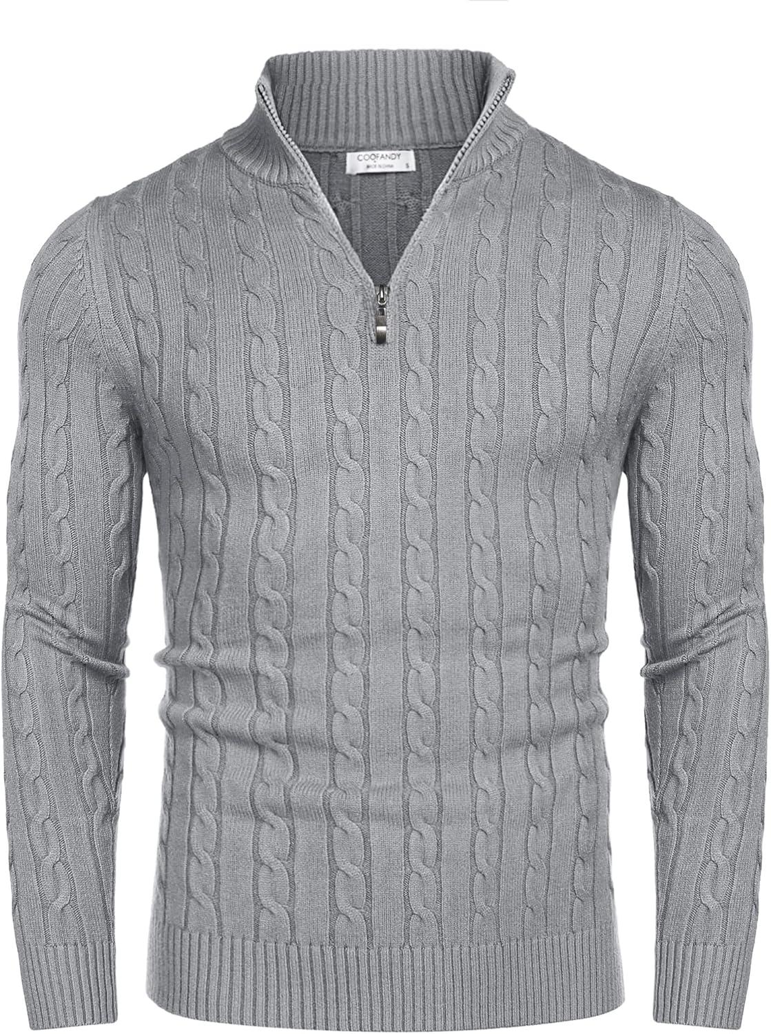 COOFANDY Men’s Quarter Zip Sweater Slim Fit Casual Knitted Turtleneck Pullover Mock Neck Polo Sweater(Grey)
