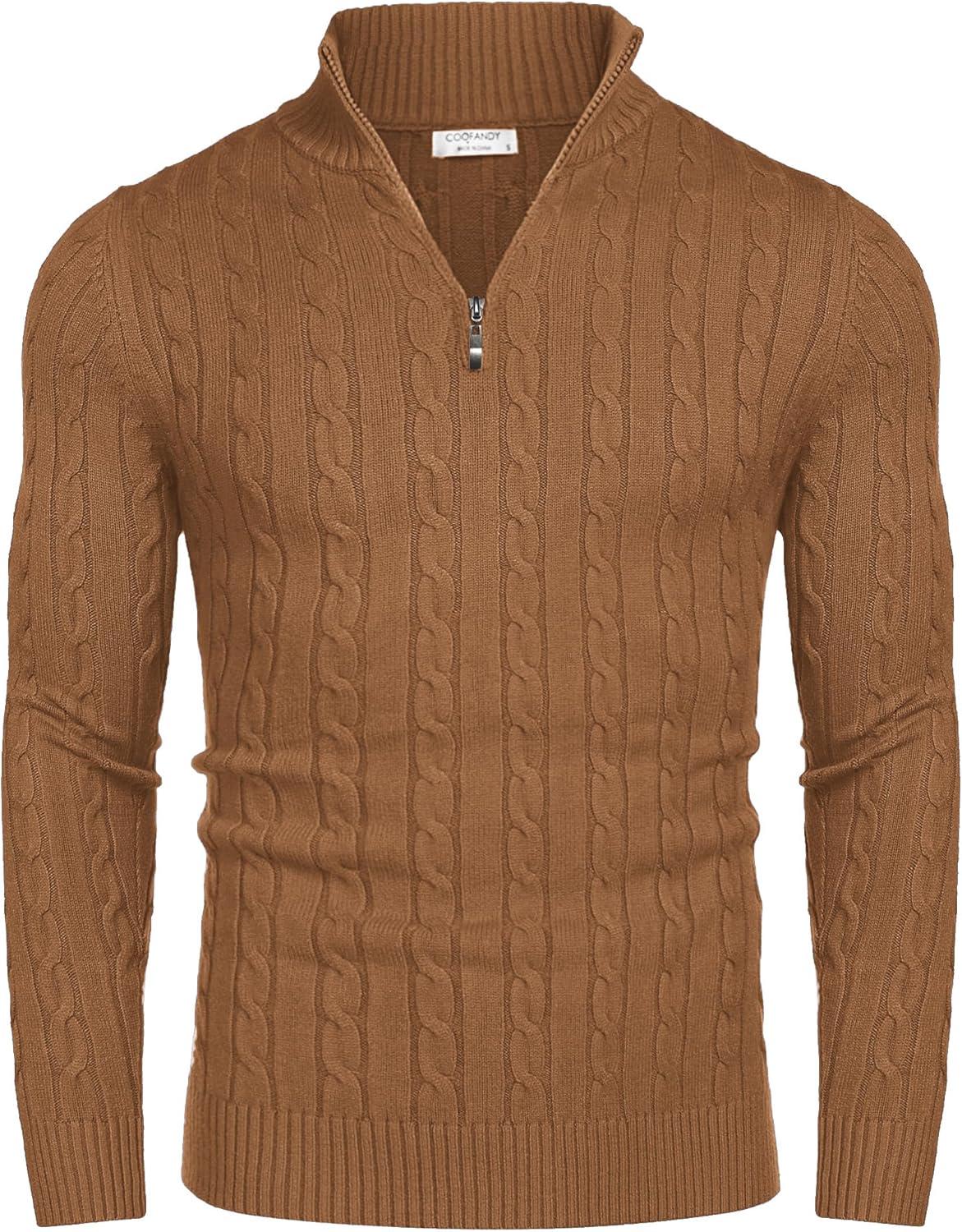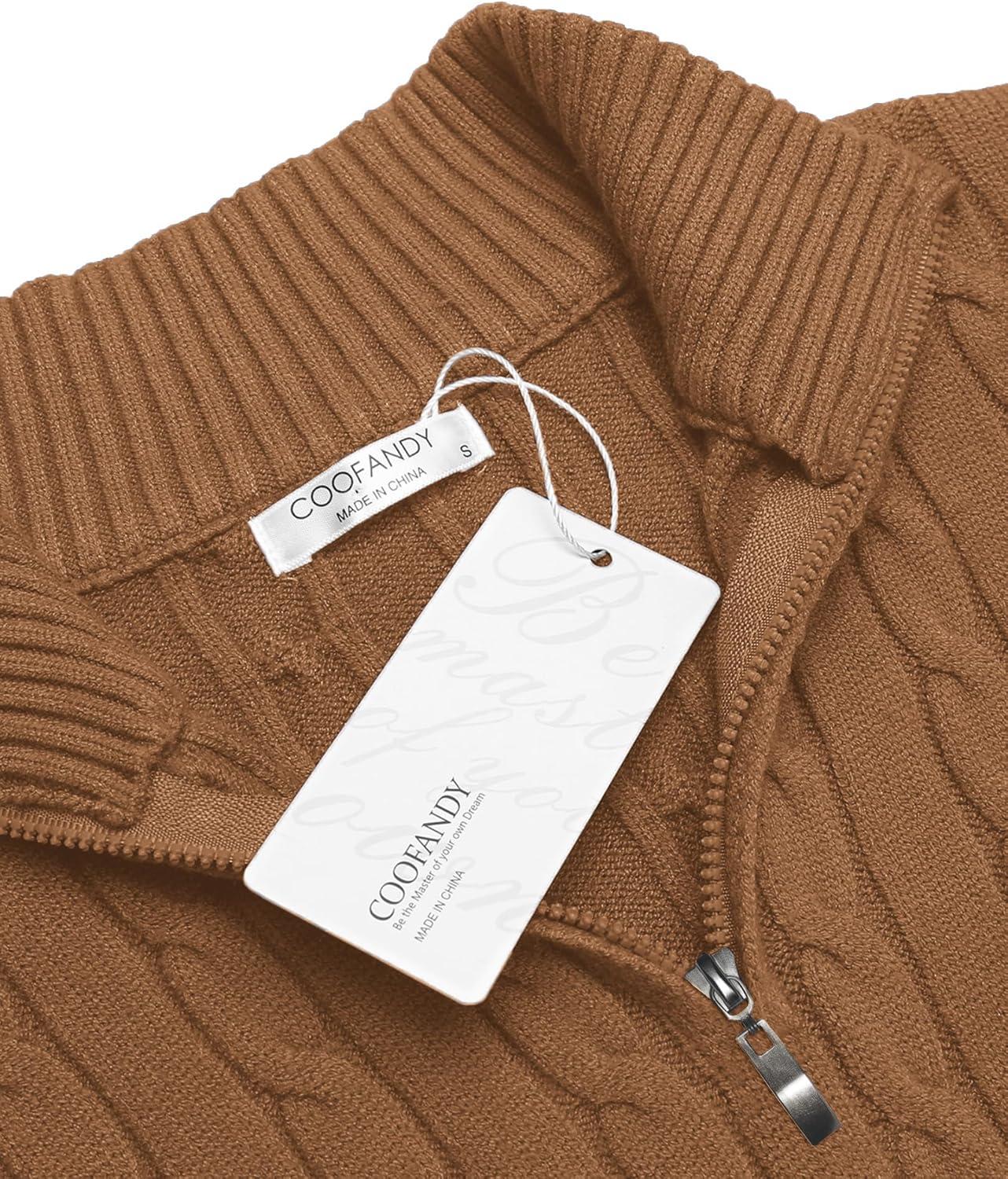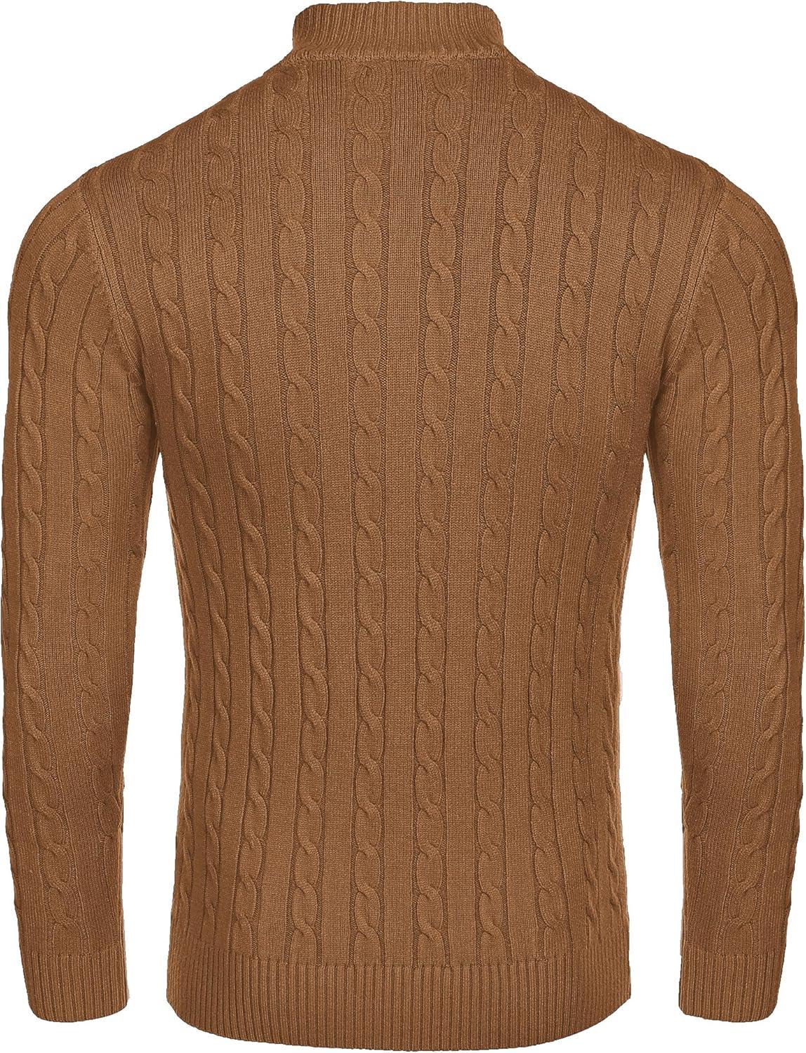 COOFANDY Men's Quarter Zip Sweater Slim Fit Casual Knitted Turtleneck Pullover Mock Neck Polo Sweater(Light Brown)