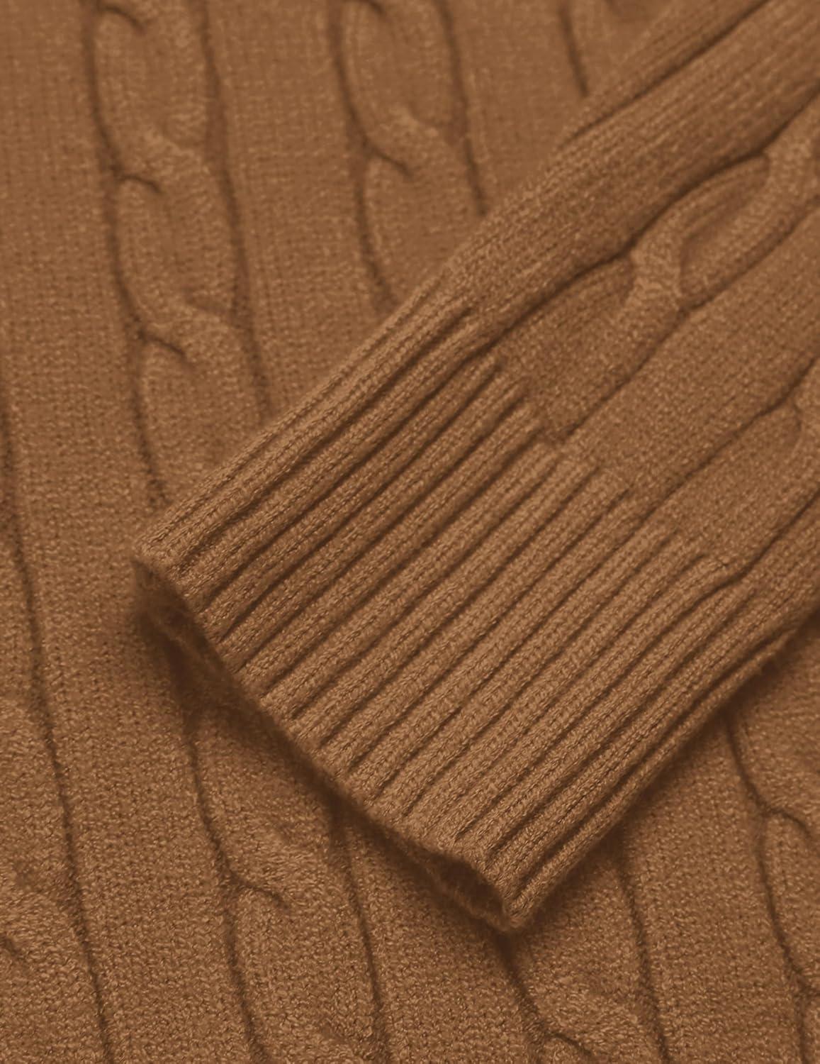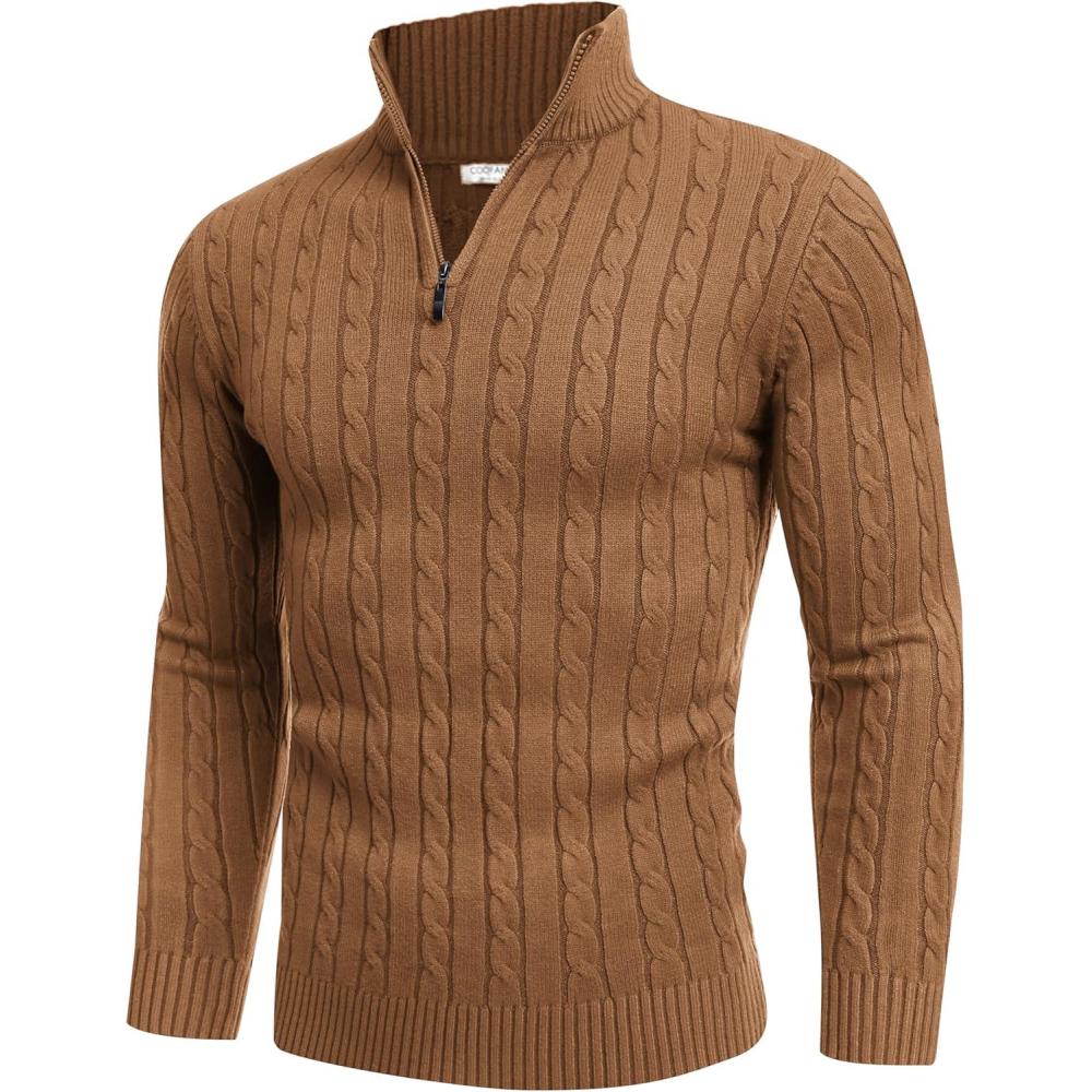 COOFANDY Men’s Quarter Zip Sweater Slim Fit Casual Knitted Turtleneck Pullover Mock Neck Polo Sweater(Light Brown)