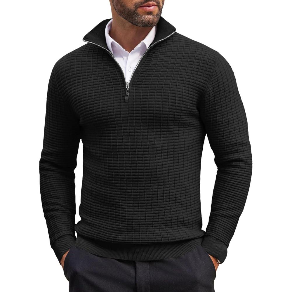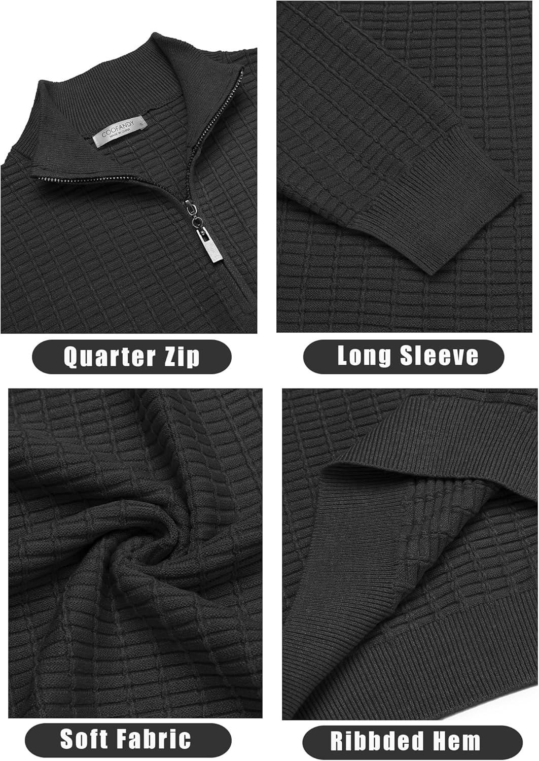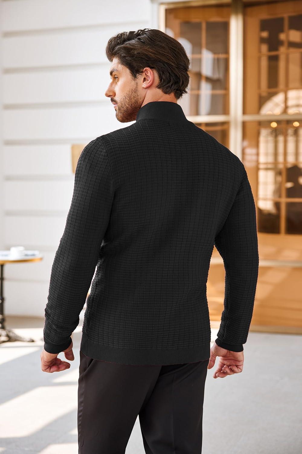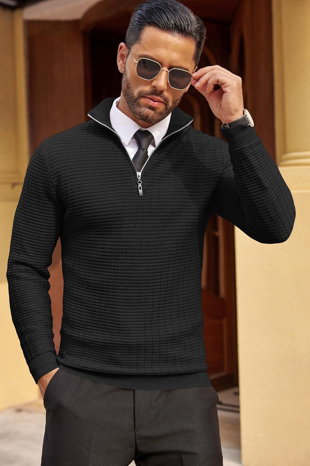 COOFANDY Men's Quarter Zip Sweaters Slim Fit Lightweight Cotton Knitted Casual Mock Neck Pullover Sweaters(Black)