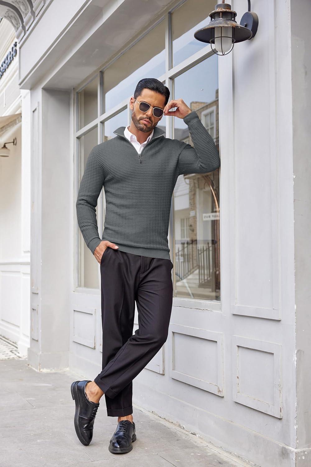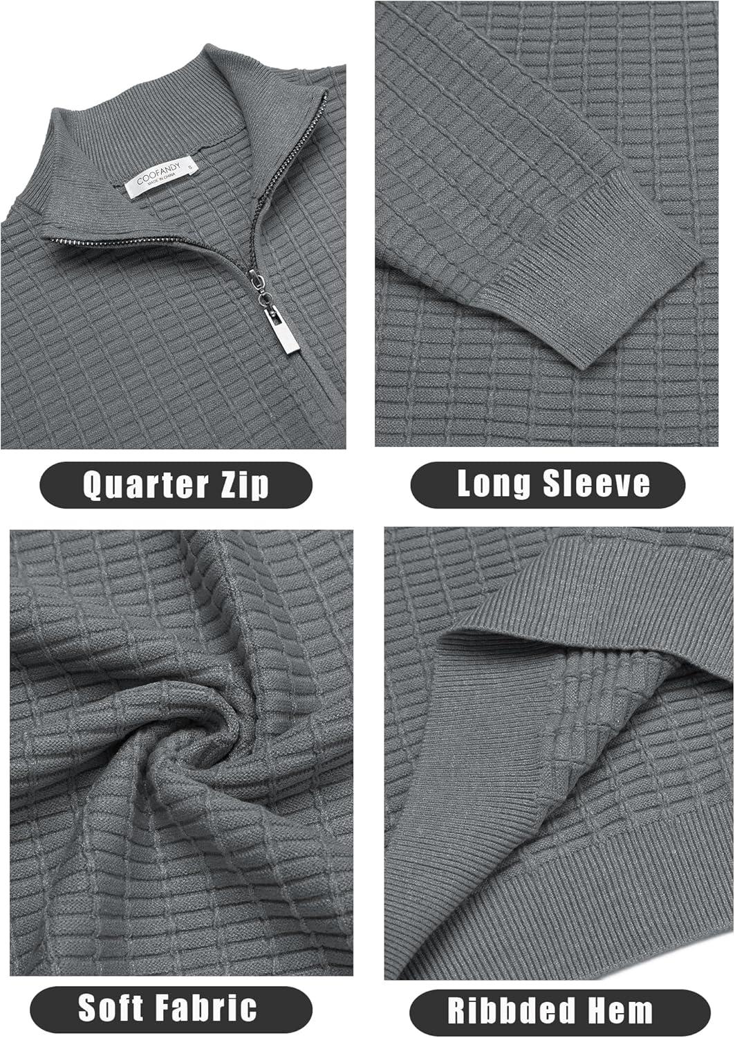 COOFANDY Men's Quarter Zip Sweaters Slim Fit Lightweight Cotton Knitted Casual Mock Neck Pullover Sweaters(Gray)