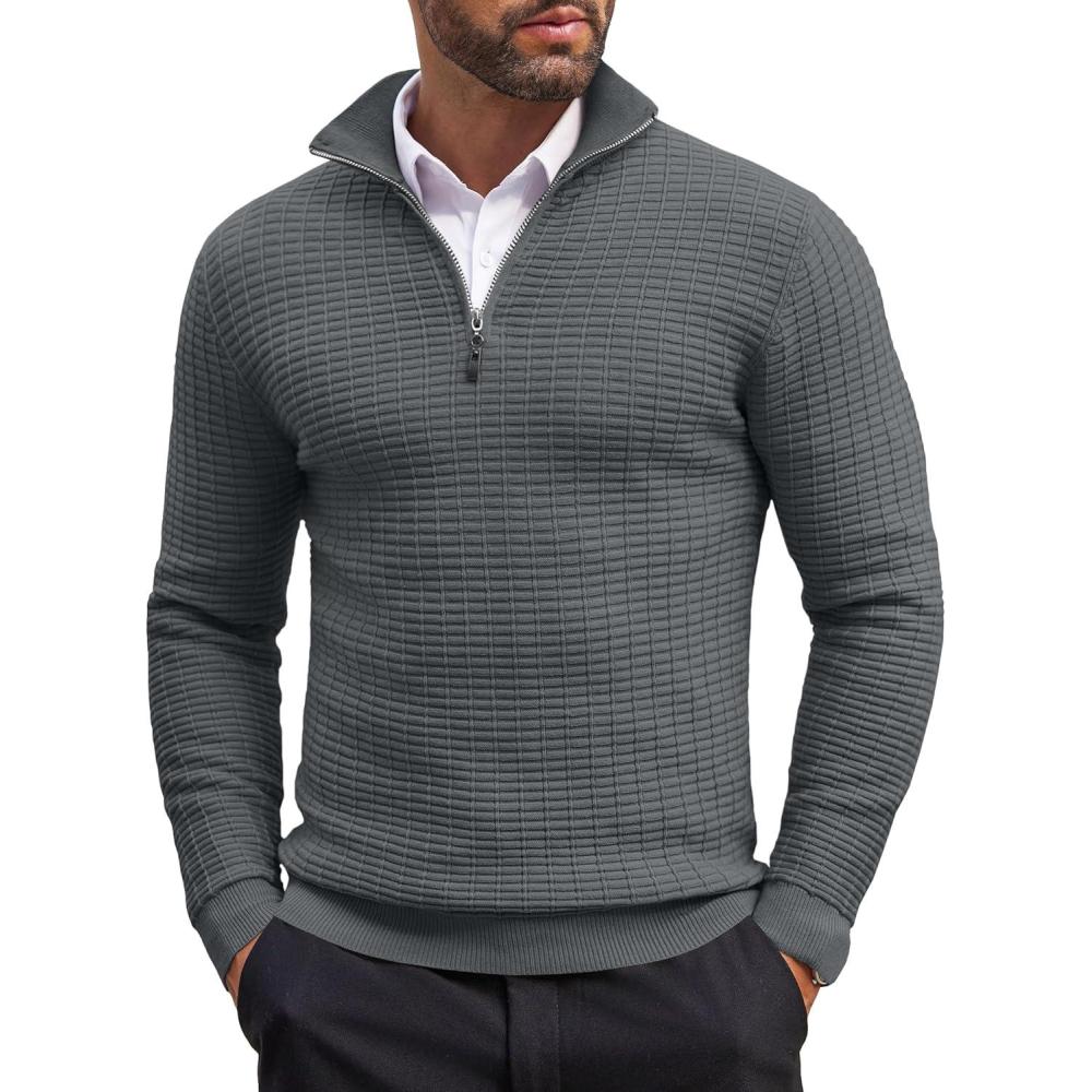 COOFANDY Men’s Quarter Zip Sweaters Slim Fit Lightweight Cotton Knitted Casual Mock Neck Pullover Sweaters(Gray)