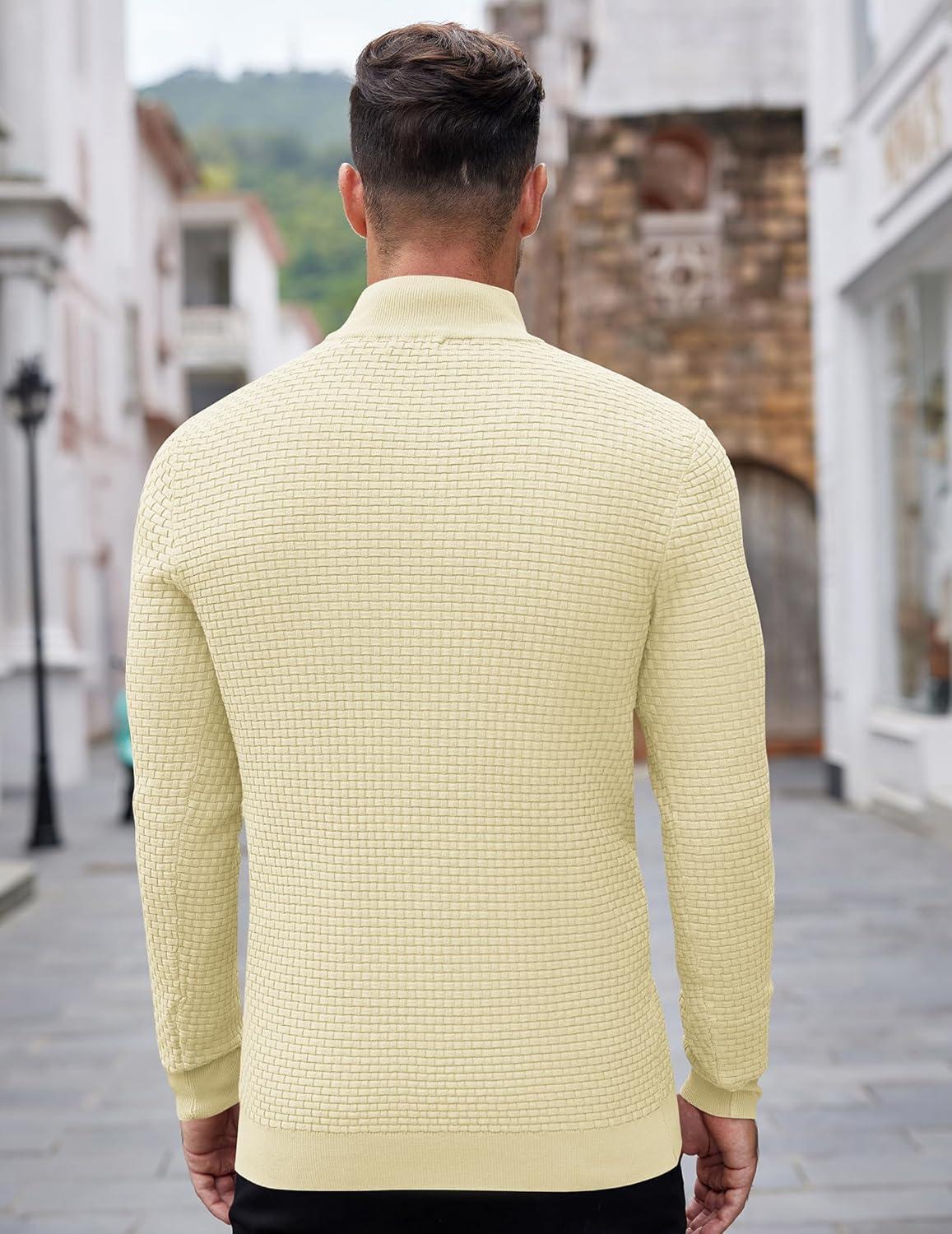 COOFANDY Men's Quarter Zip Sweaters Slim Fit Lightweight Knitted Mock Neck Pullover Casual Polo Sweaters(Beige)