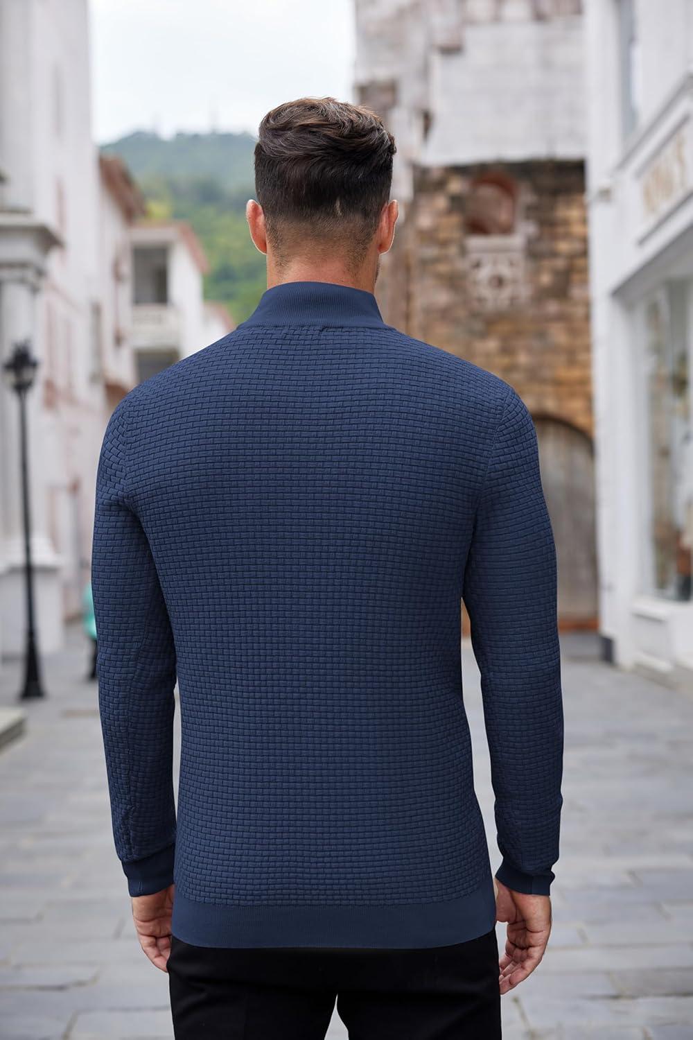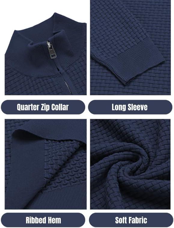 COOFANDY Men's Quarter Zip Sweaters Slim Fit Lightweight Knitted Mock Neck Pullover Casual Polo Sweaters(Navy Blue)