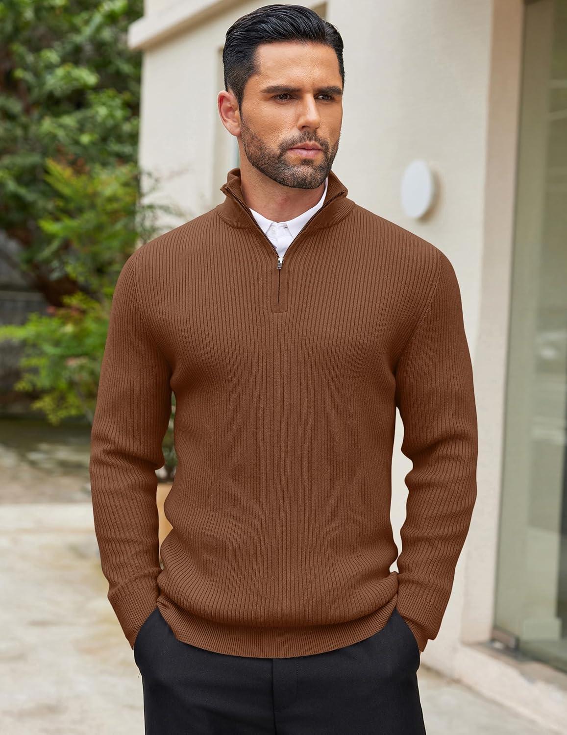 Our holiday sale features the best deals on COOFANDY Men’s Quarter Zip Sweaters Slim Fit Mock Neck Pullover Sweater Lightweight Knitted Polo Sweaters(Brown) and accessories. Shop now and save!