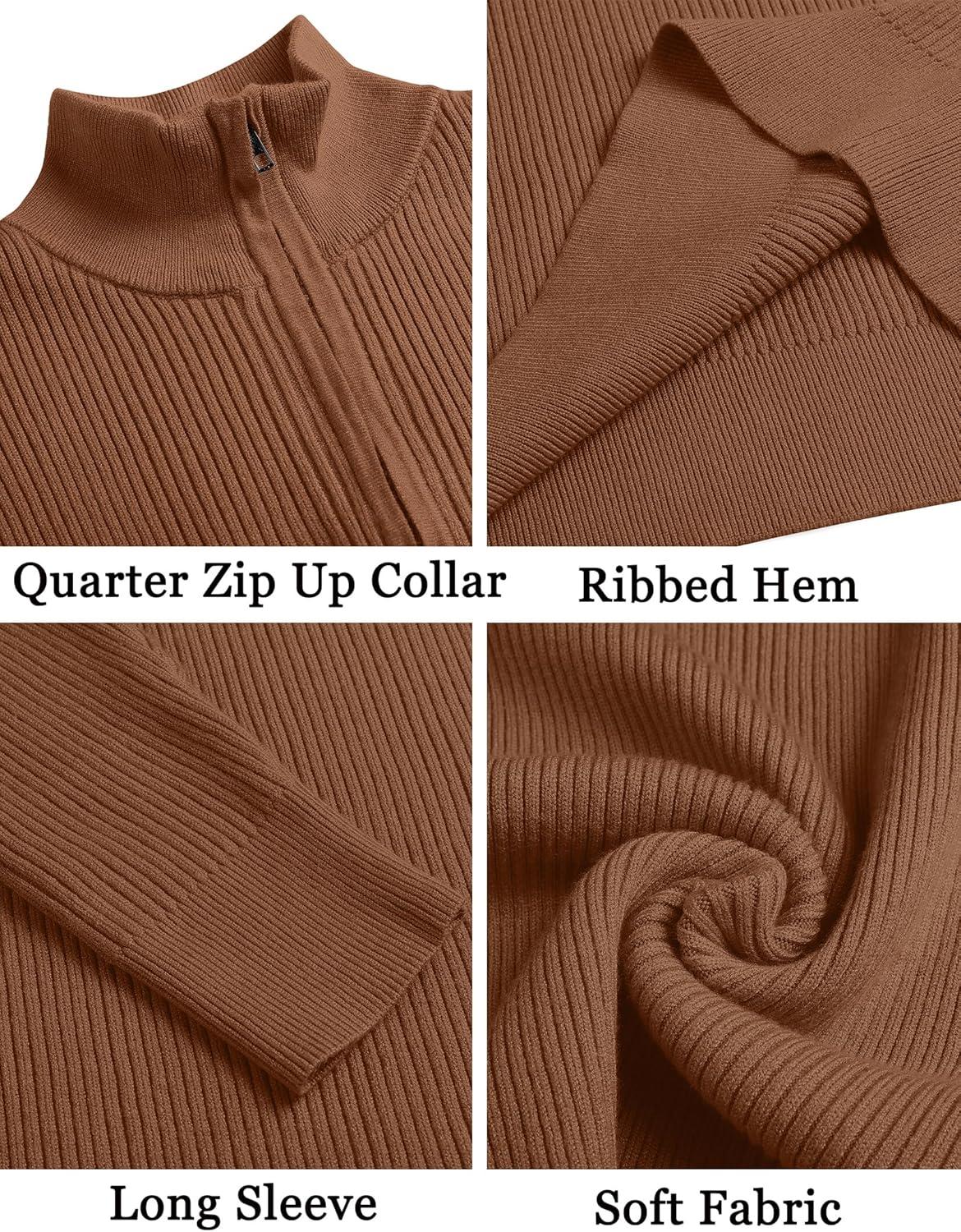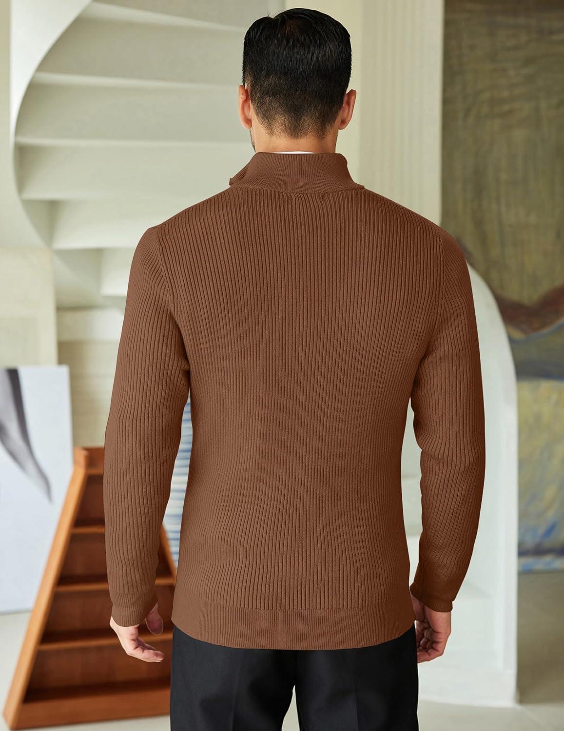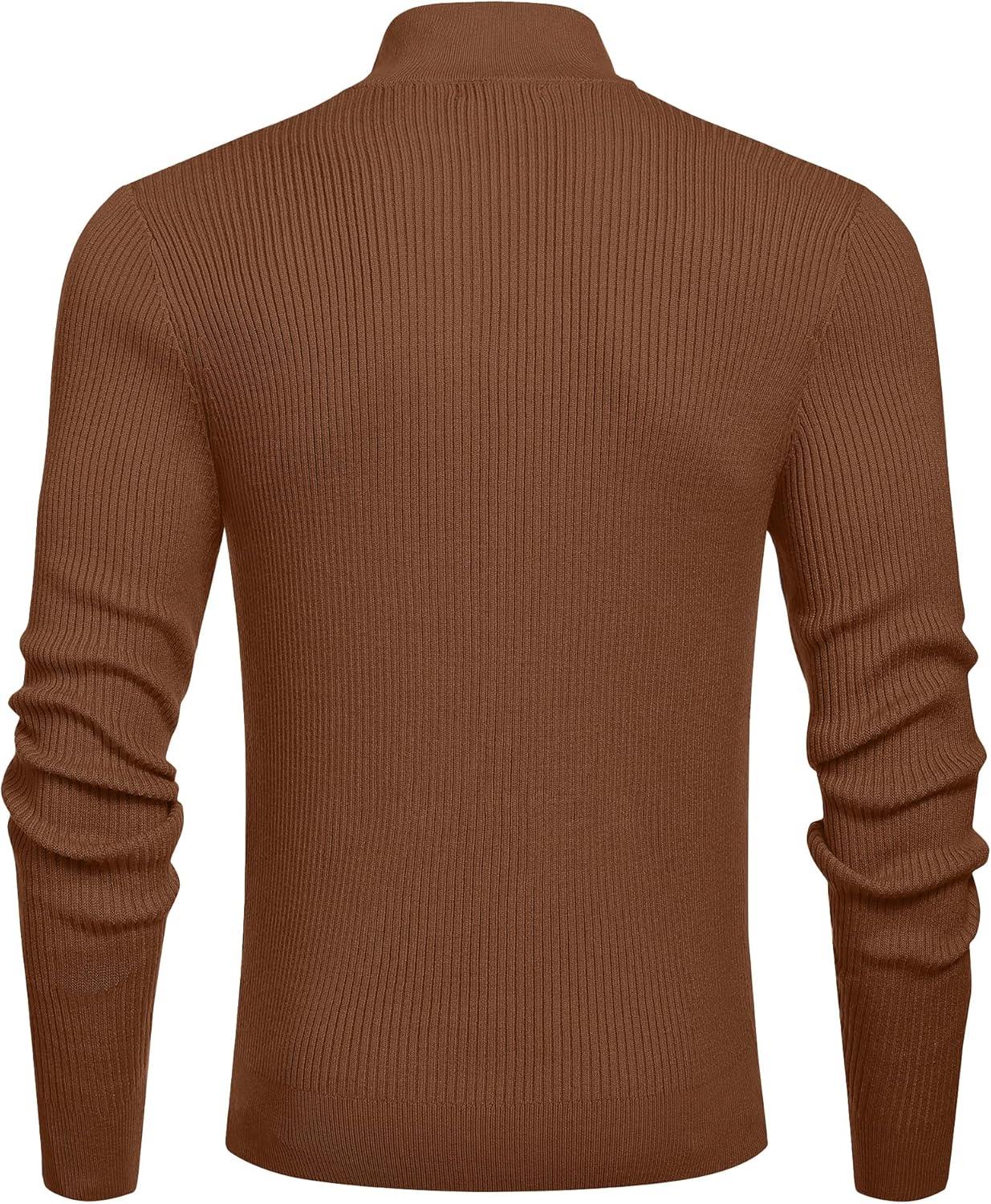 COOFANDY Men's Quarter Zip Sweaters Slim Fit Mock Neck Pullover Sweaters Lightweight Knitted Polo Sweater(Brown)