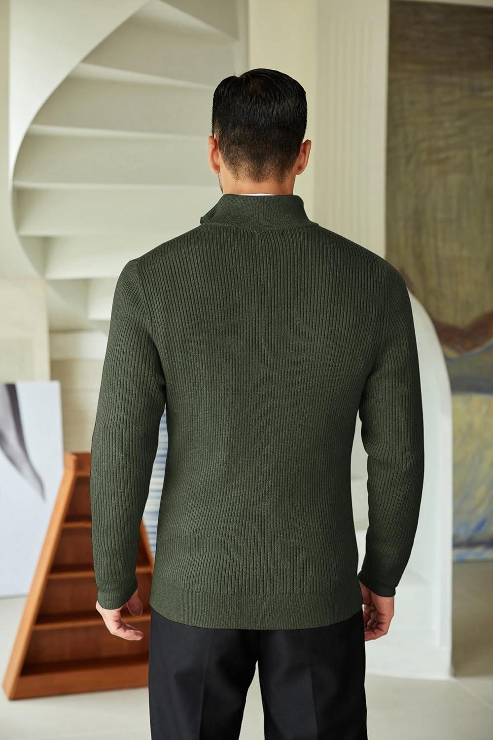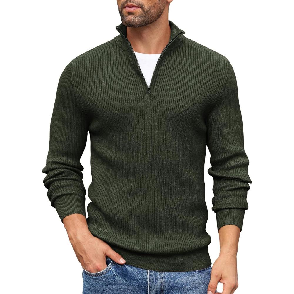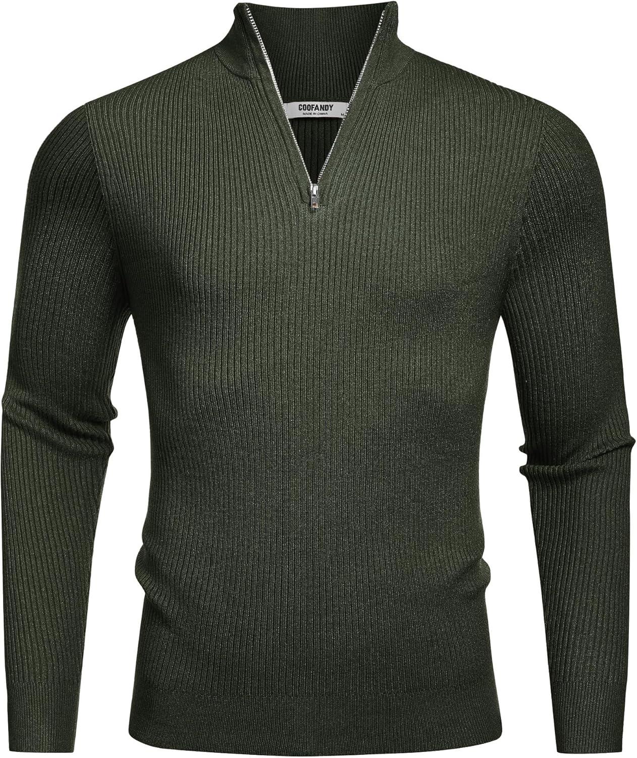 COOFANDY Men’s Quarter Zip Sweaters Slim Fit Mock Neck Pullover Sweaters Lightweight Knitted Polo Sweater(Green)