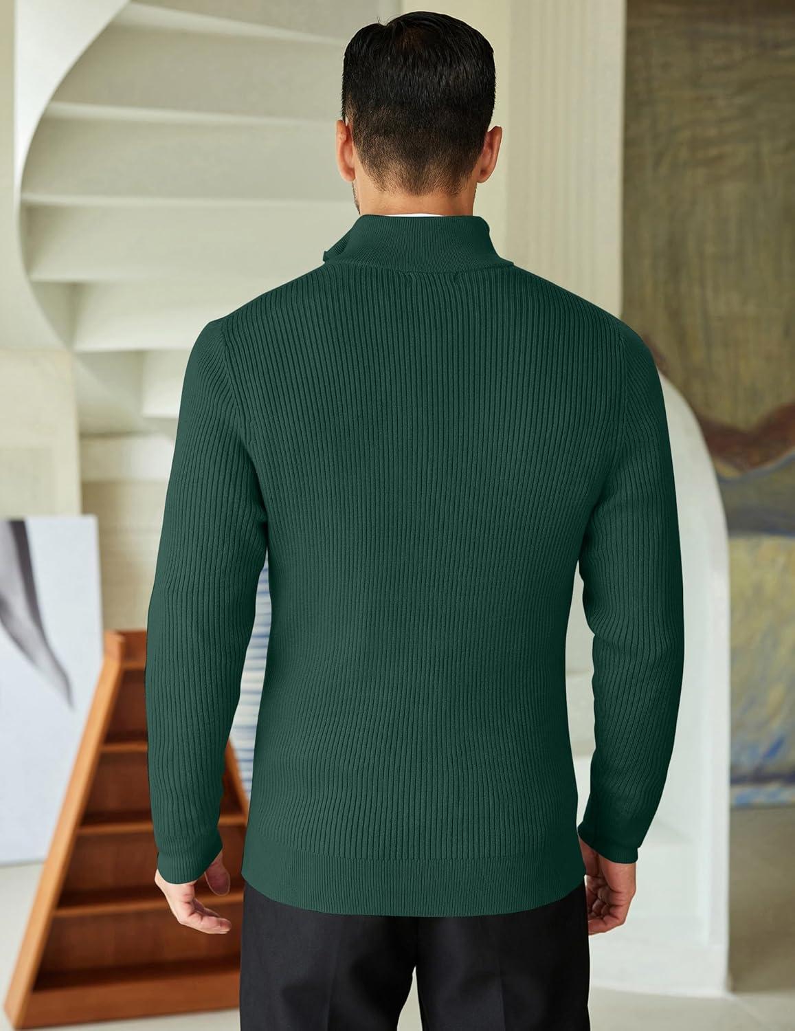 COOFANDY Men's Quarter Zip Sweaters Slim Fit Mock Neck Pullover Sweaters Lightweight Knitted Polo Sweater(Green)