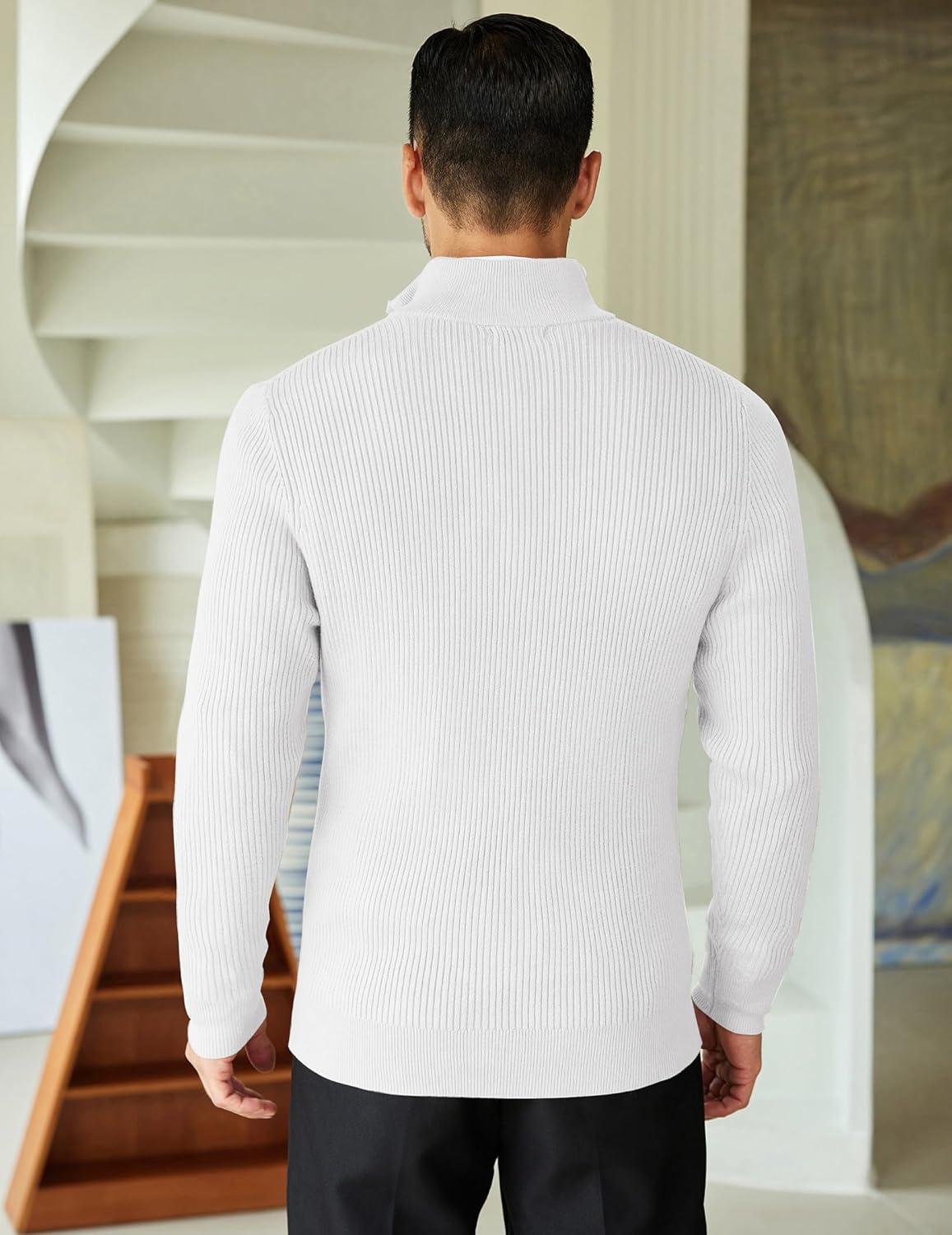 COOFANDY Men's Quarter Zip Sweaters Slim Fit Mock Neck Pullover Sweaters Lightweight Knitted Polo Sweater(White)