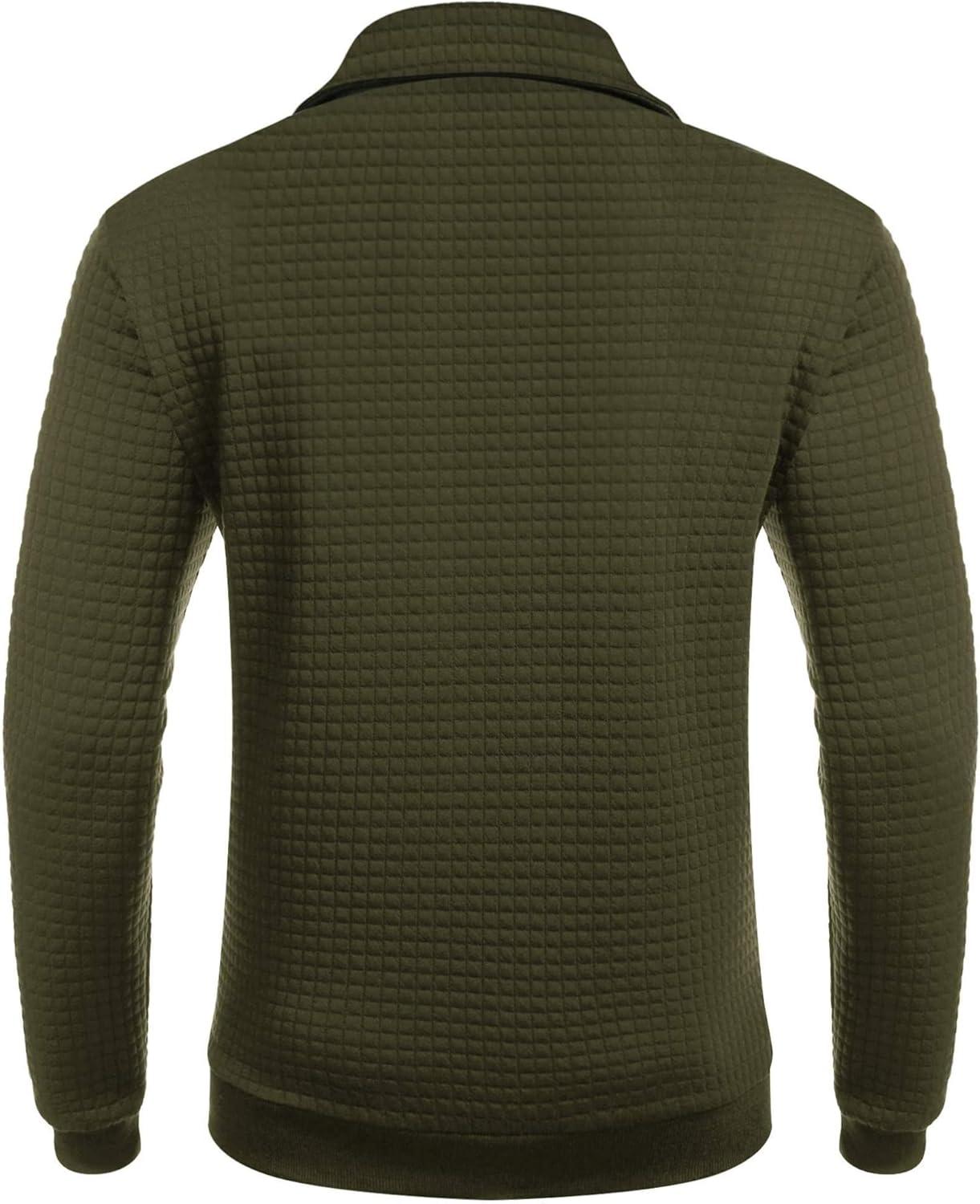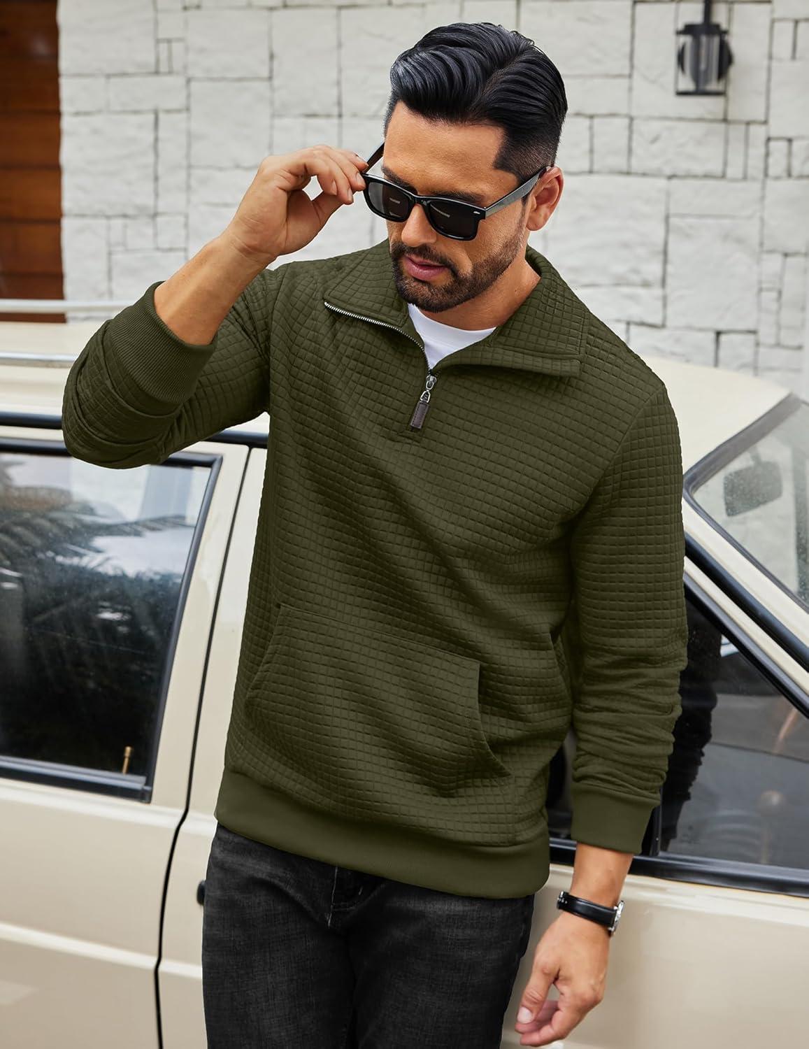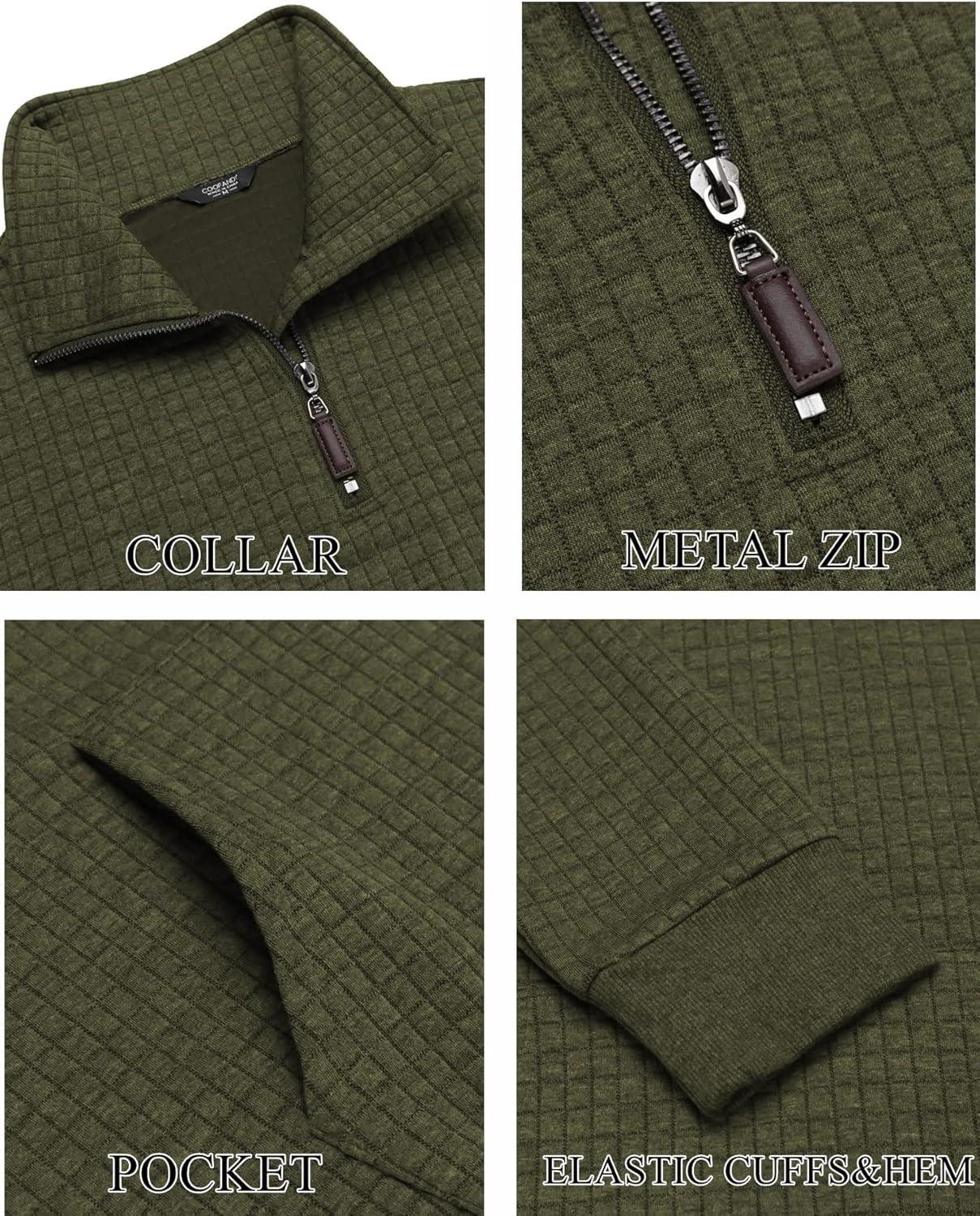 COOFANDY Mens Quarter Zip Sweatshirt Long Sleeve Casual Waffle Pullover Hoodies with Pocket(Army Green)
