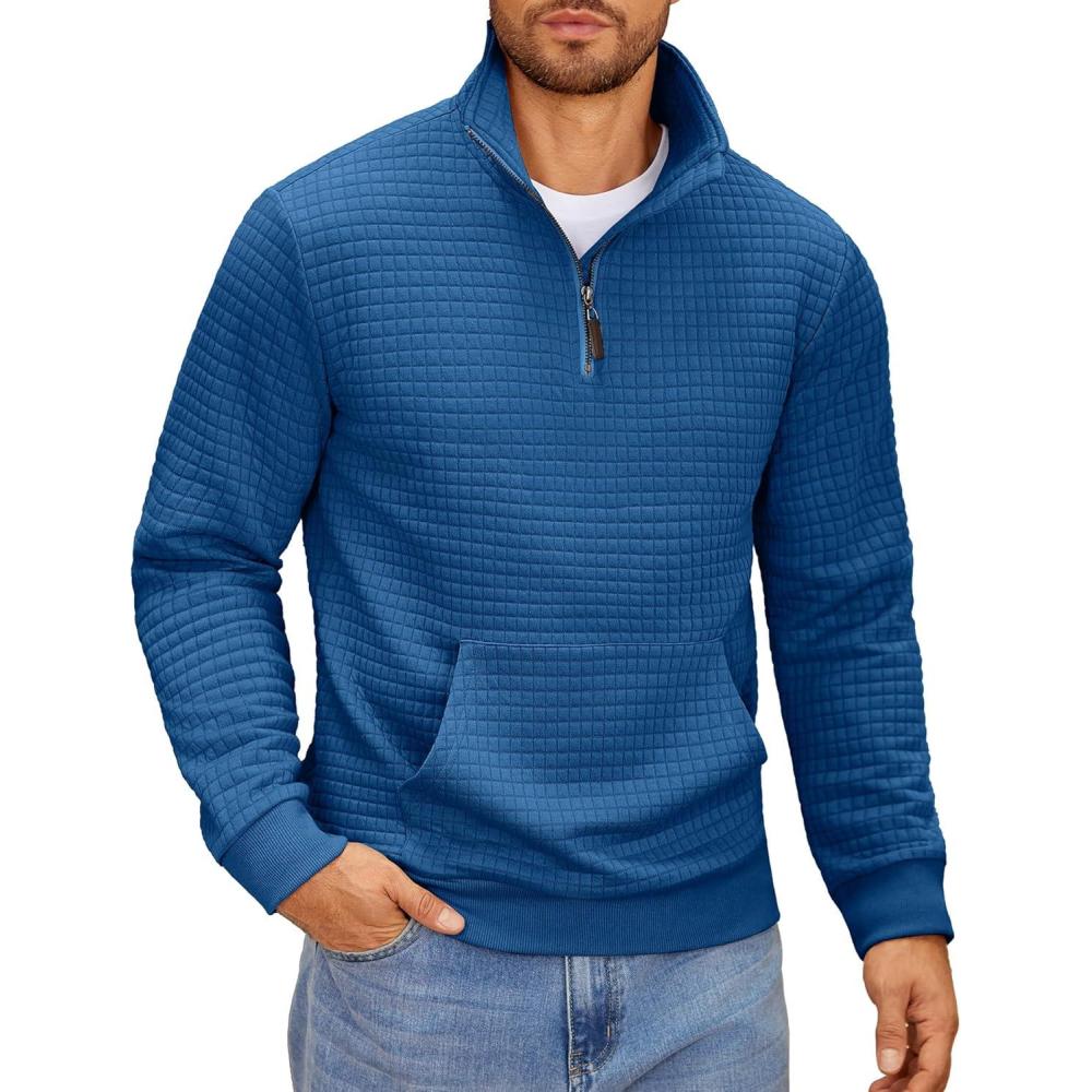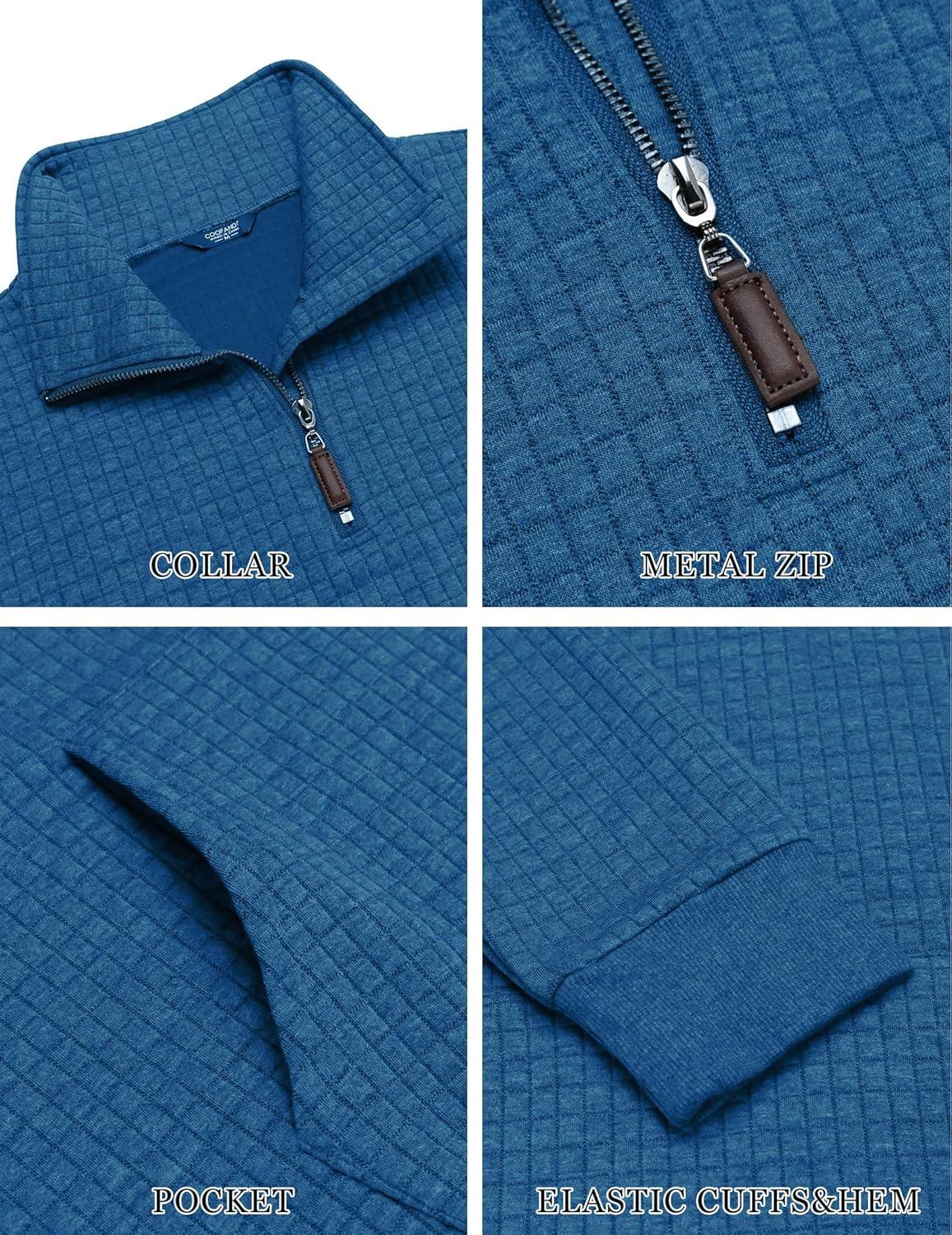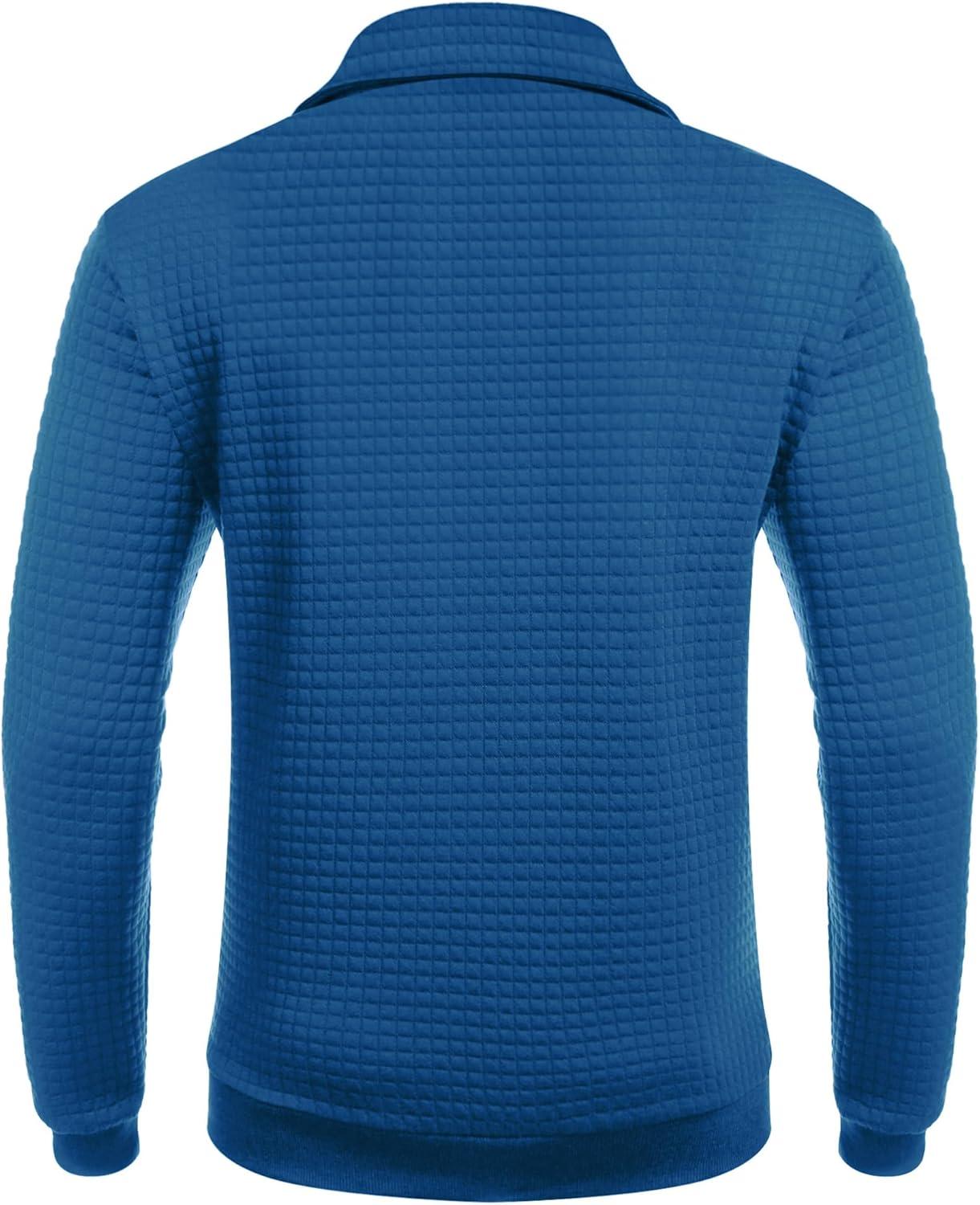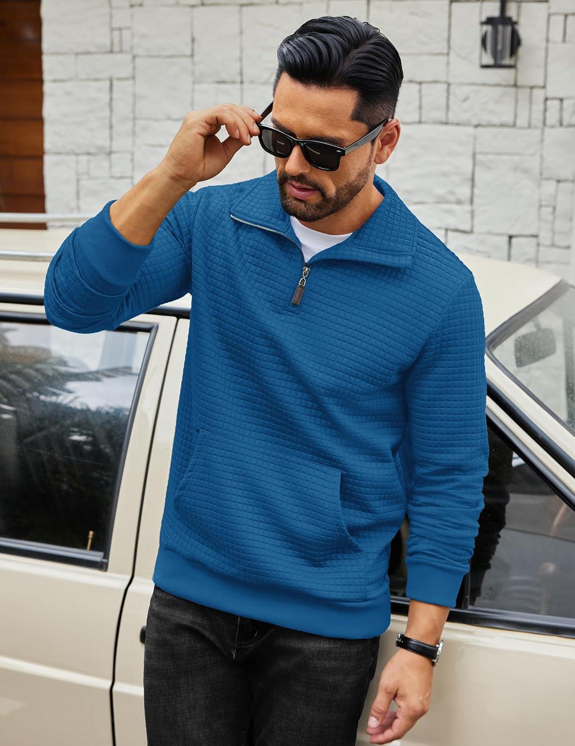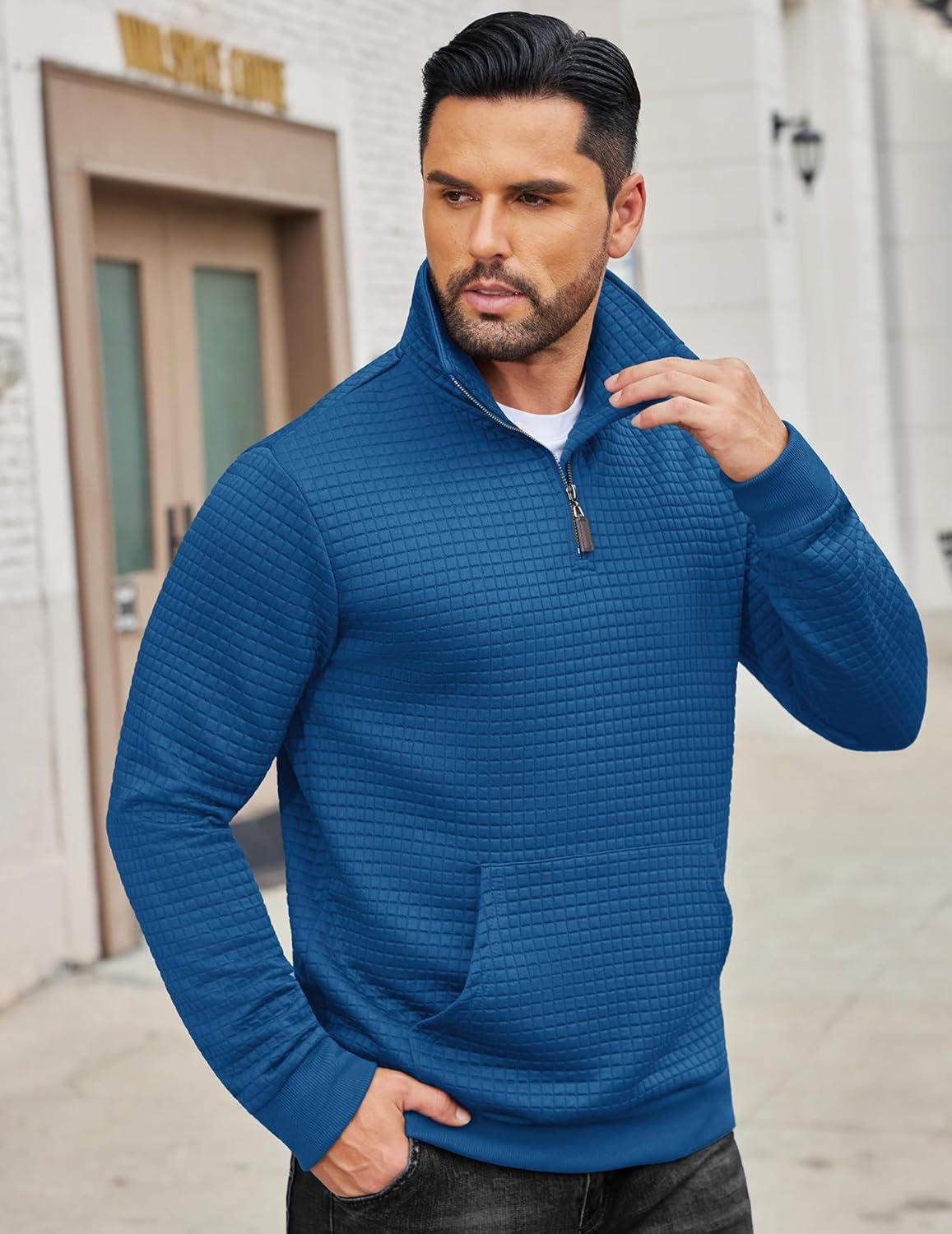 COOFANDY Mens Quarter Zip Sweatshirt Long Sleeve Casual Waffle Pullover Hoodies with Pocket(Royal Blue)