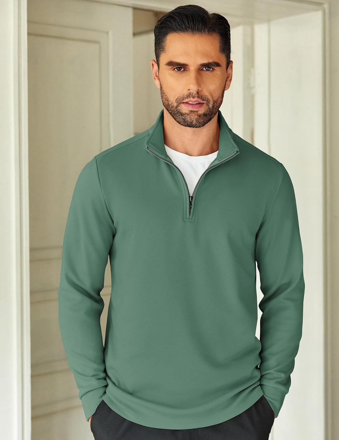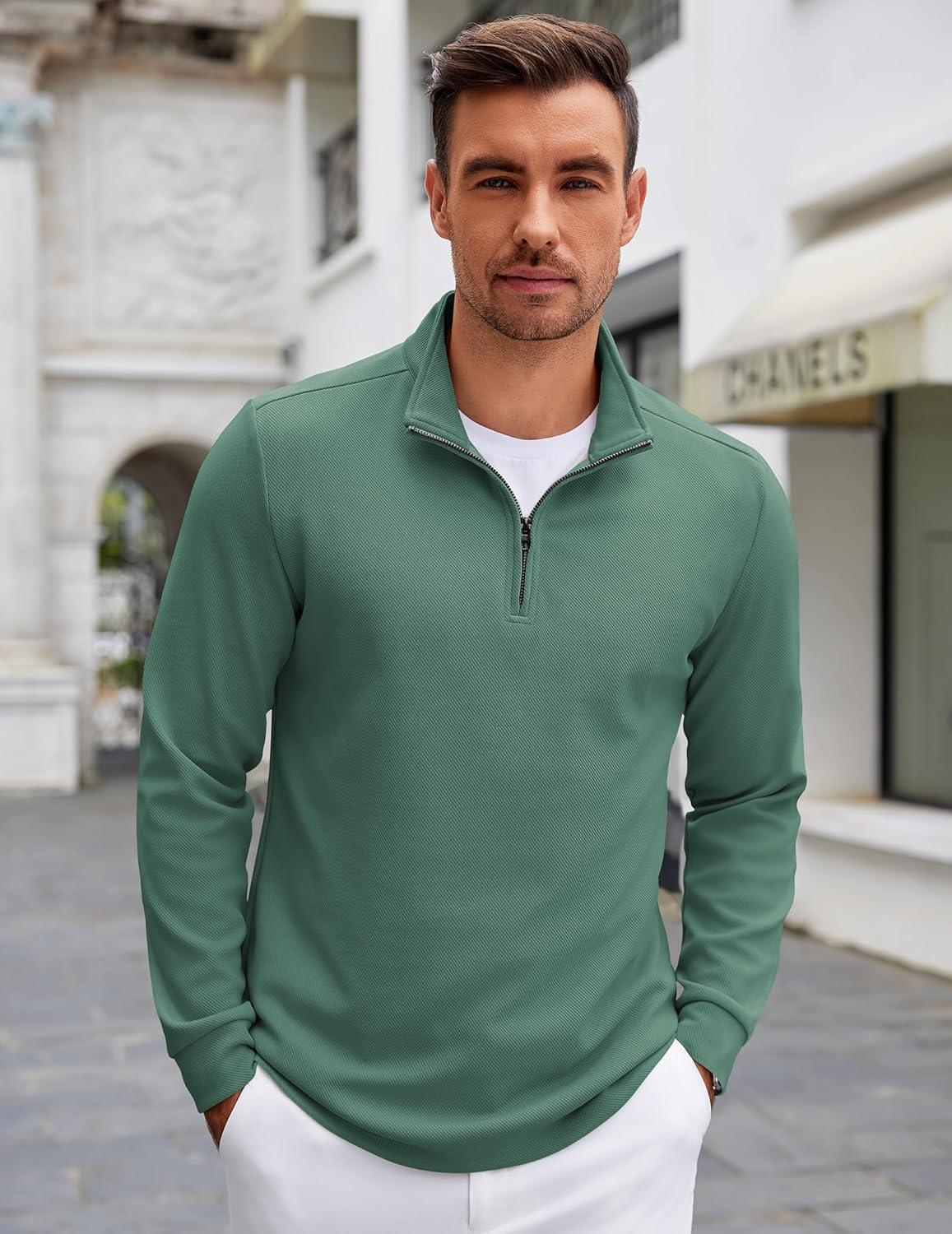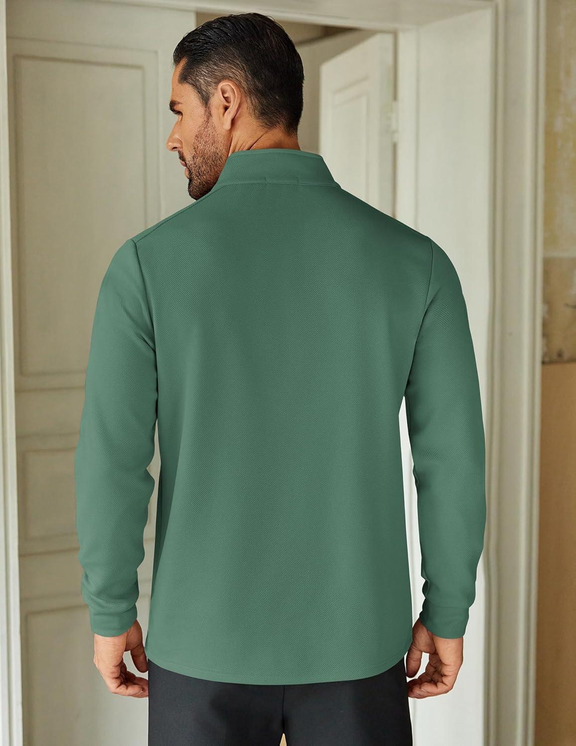 COOFANDY Men's Quarter Zip Up Pullover Lightweight Mock Neck Sweatshirt Casual Long Sleeve Polo Shirt(Green)