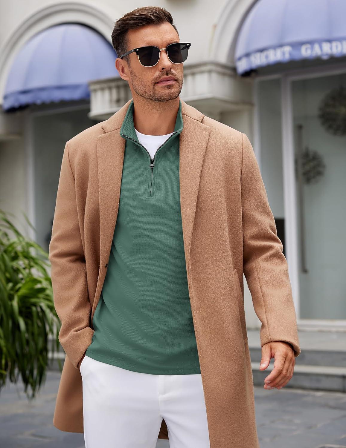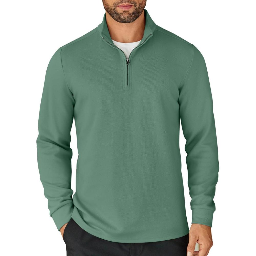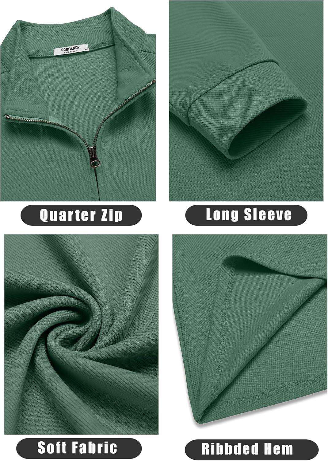 COOFANDY Men's Quarter Zip Up Pullover Lightweight Mock Neck Sweatshirt Casual Long Sleeve Polo Shirt(Green)