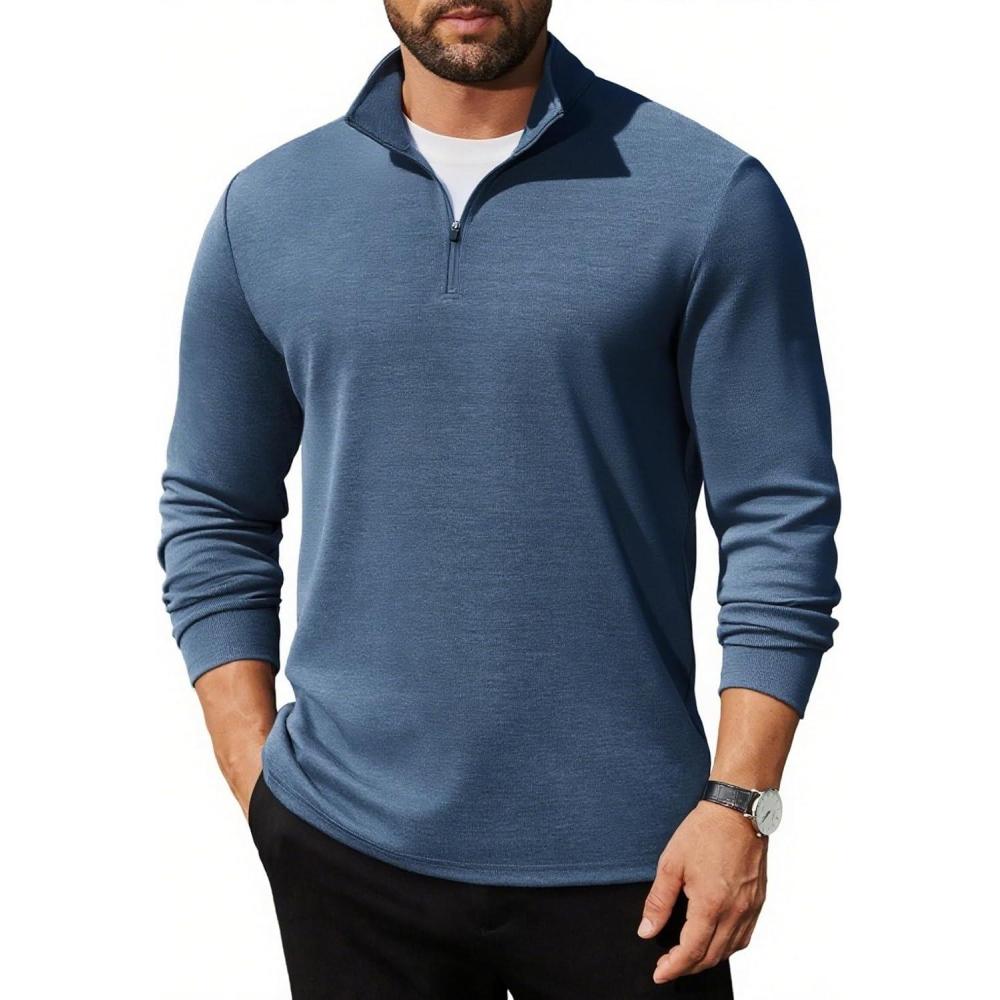 COOFANDY Men's Quarter Zip Up Pullover Long Sleeve Sweatshirt Mock Neck Golf Polo Sweater(Blue)